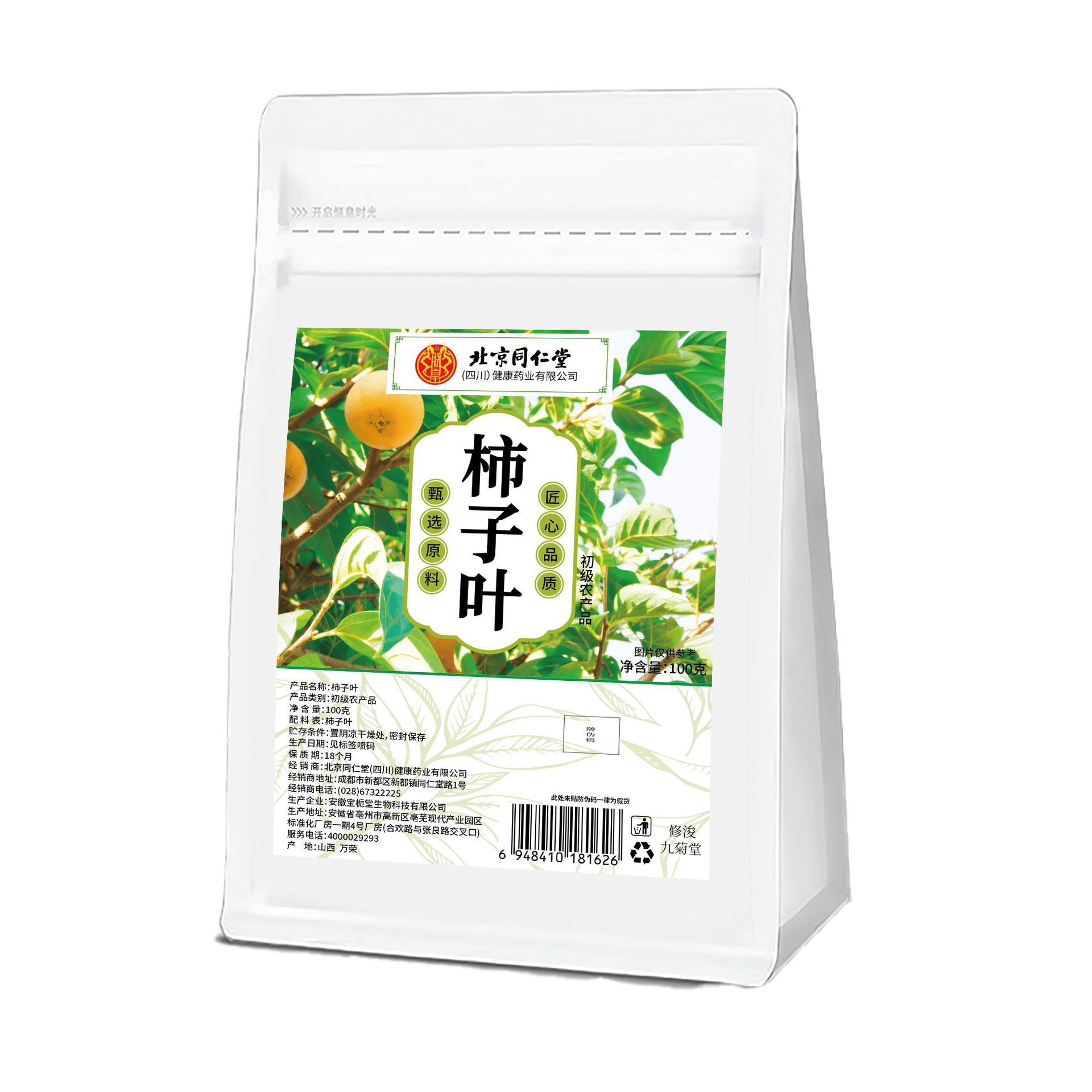 Пакетик с листьями хурмы Beijing Tongrentang, 100 г, отборное сырье, поддержка цельной замены, готовый запас производителя