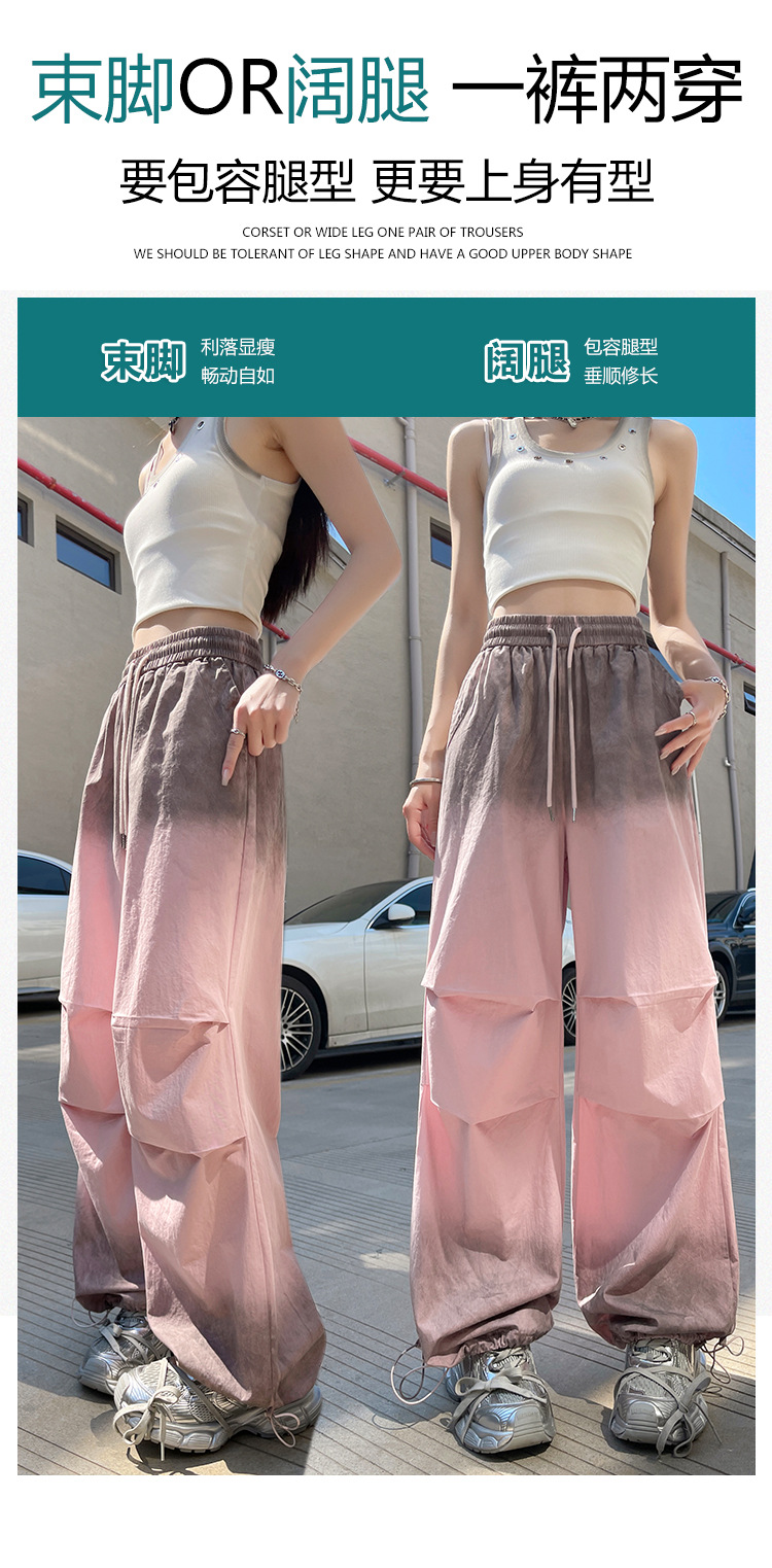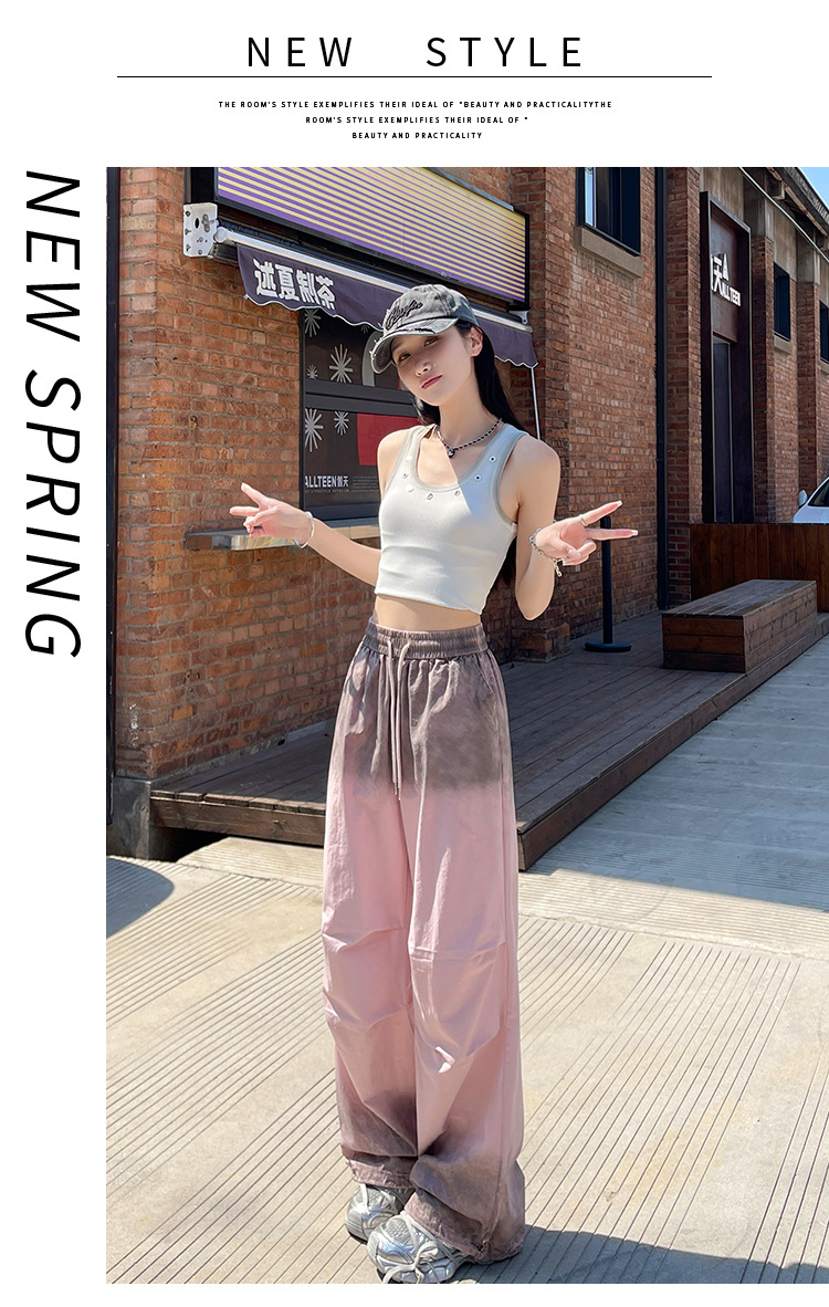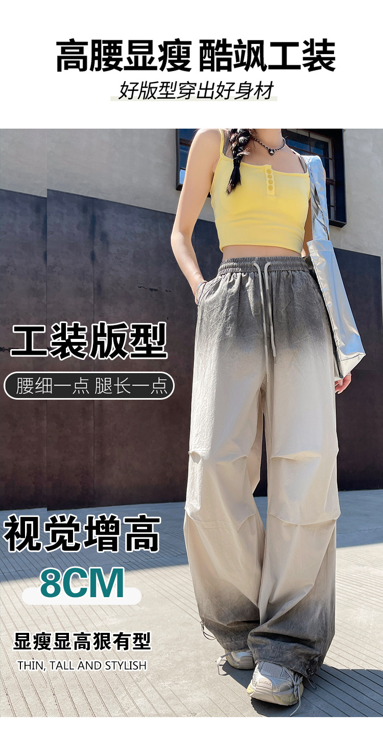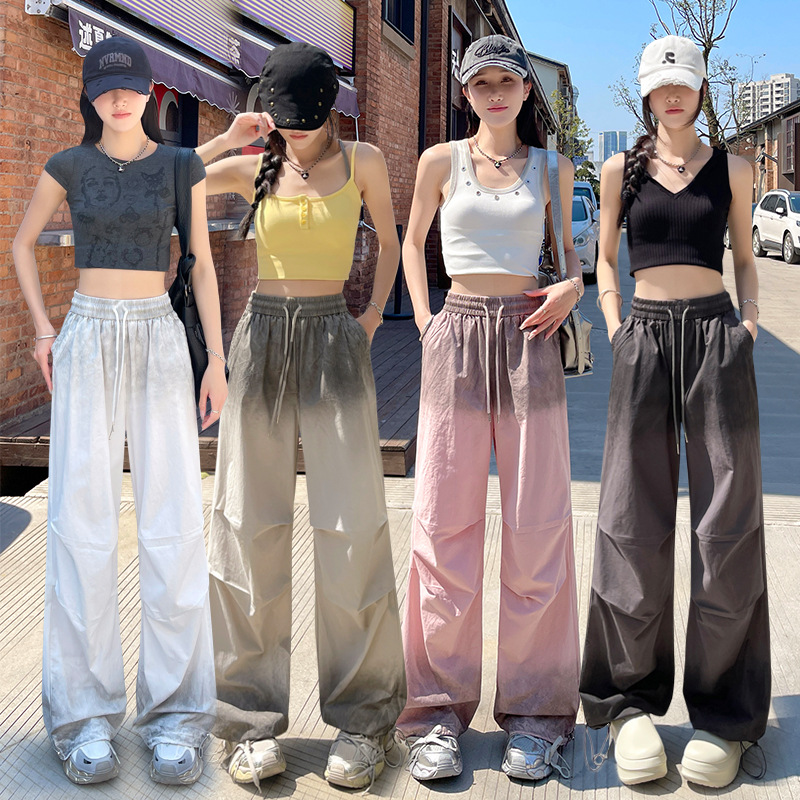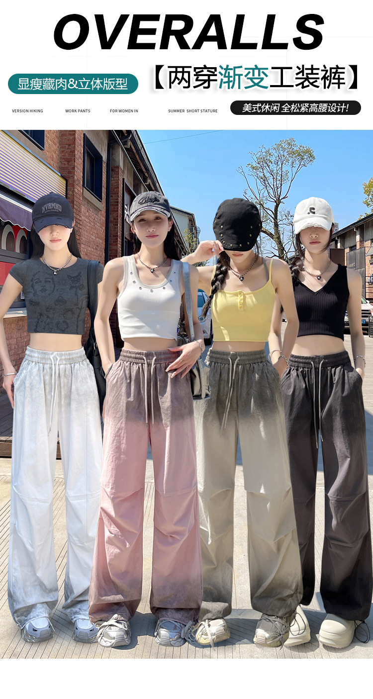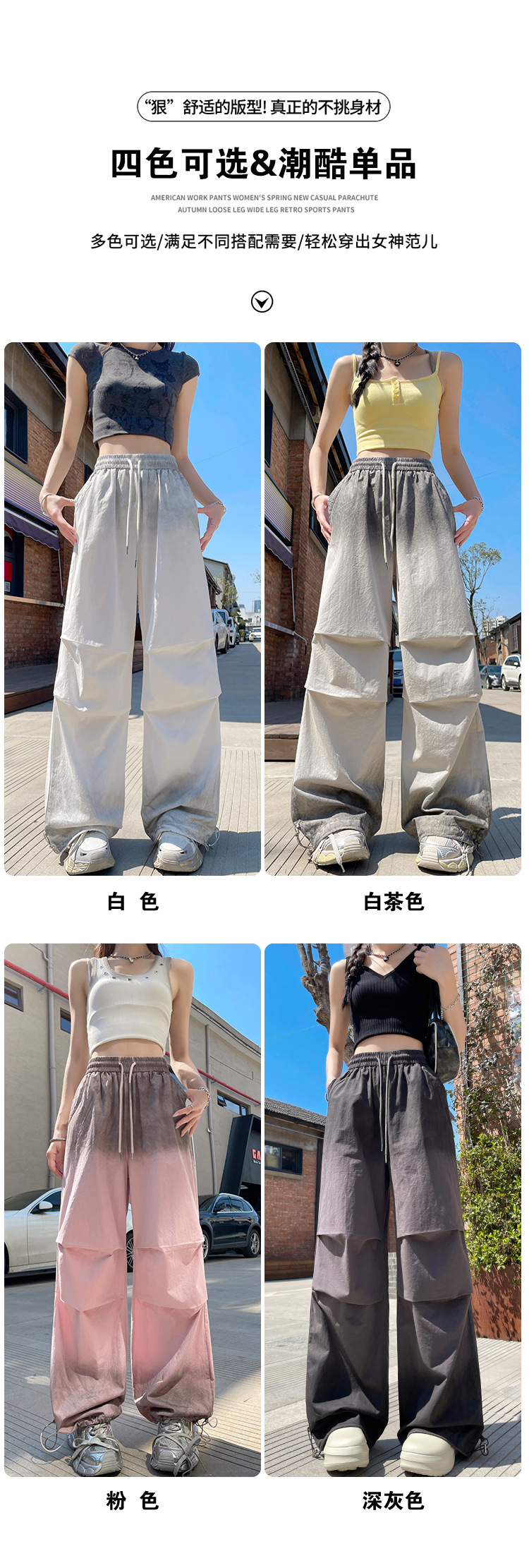 Американские ретро-габардиновые брюки-карго с градиентом, весна-лето 2025, женские универсальные повседневные брюки для бега с высокой талией, широкие брюки-парашюты
