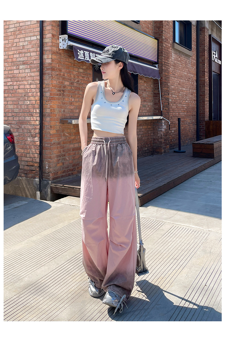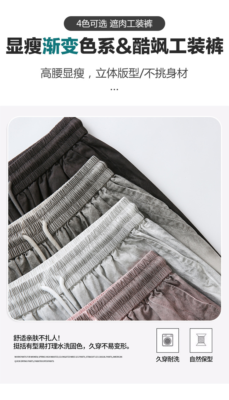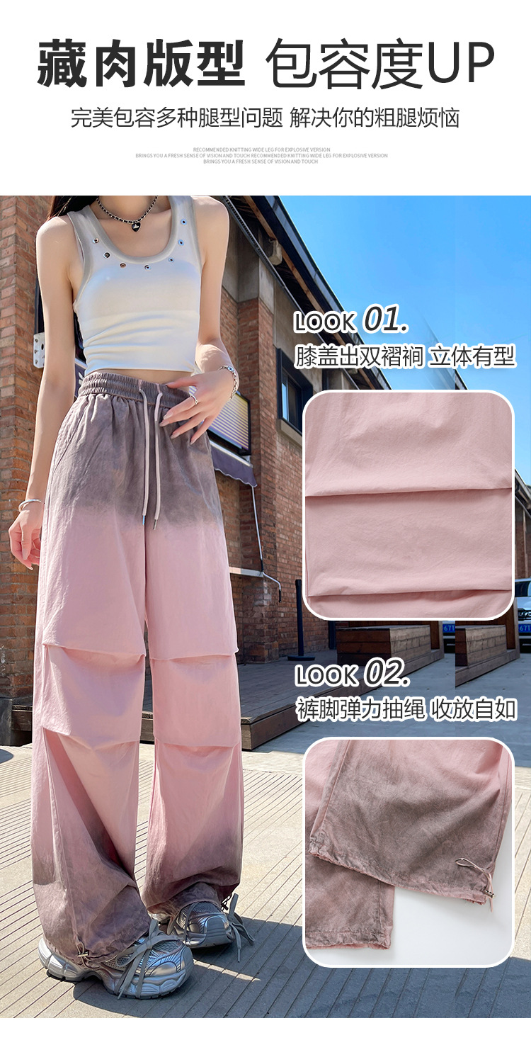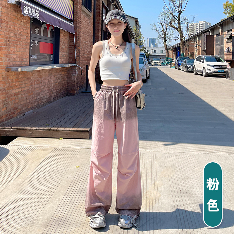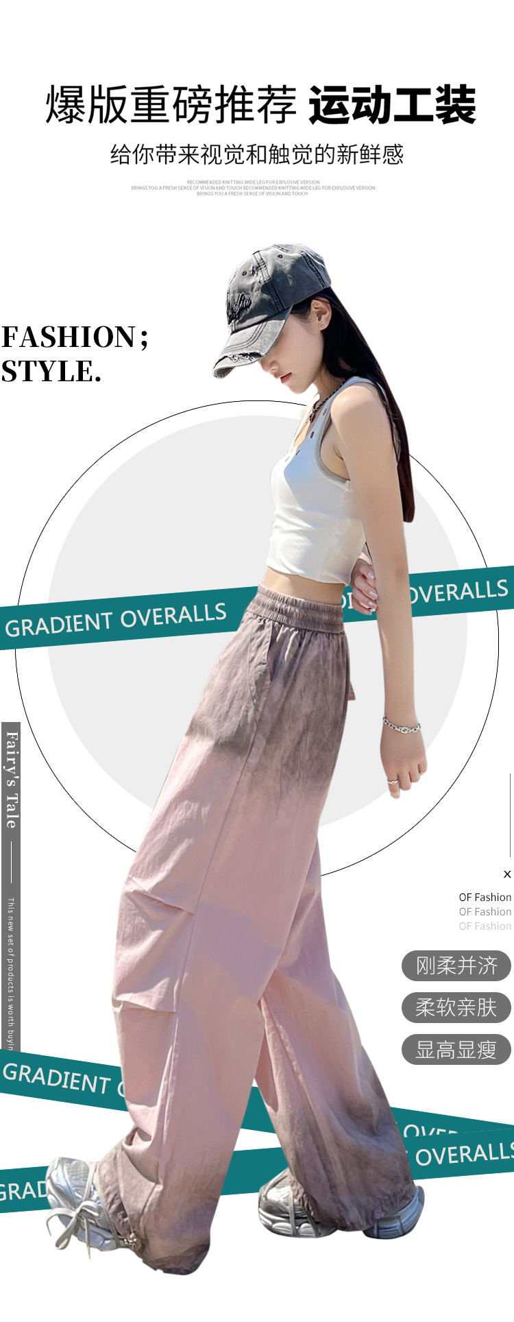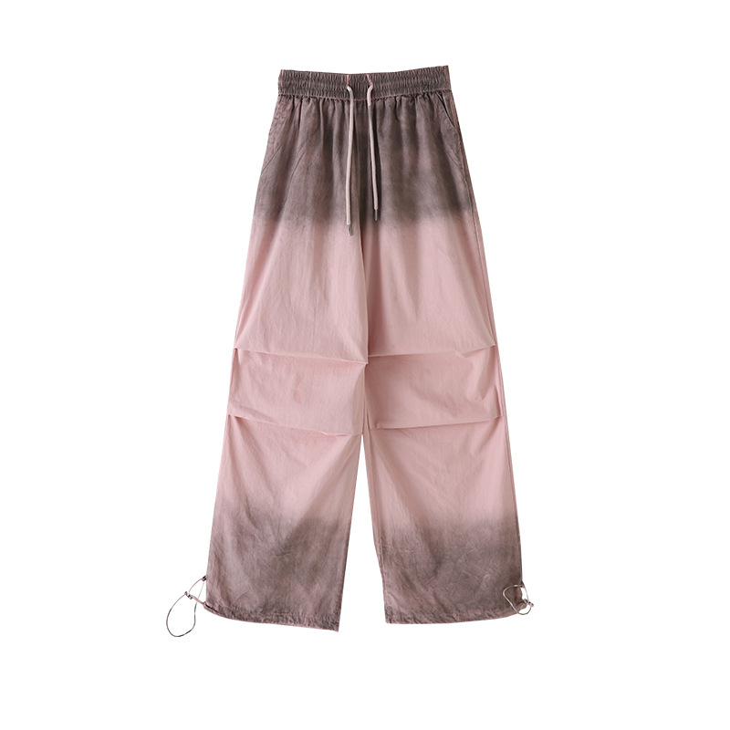 Американские ретро-габардиновые брюки-карго с градиентом, весна-лето 2025, женские универсальные повседневные брюки для бега с высокой талией, широкие брюки-парашюты
