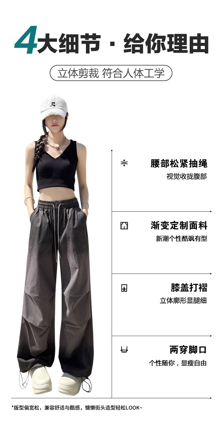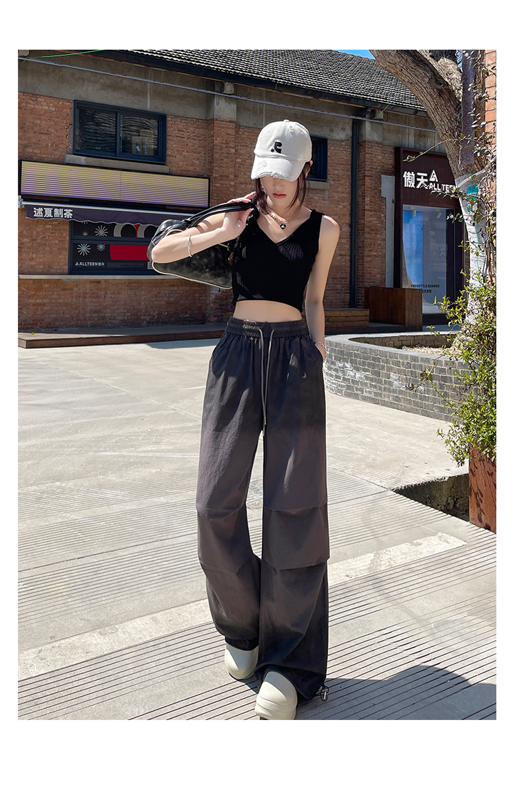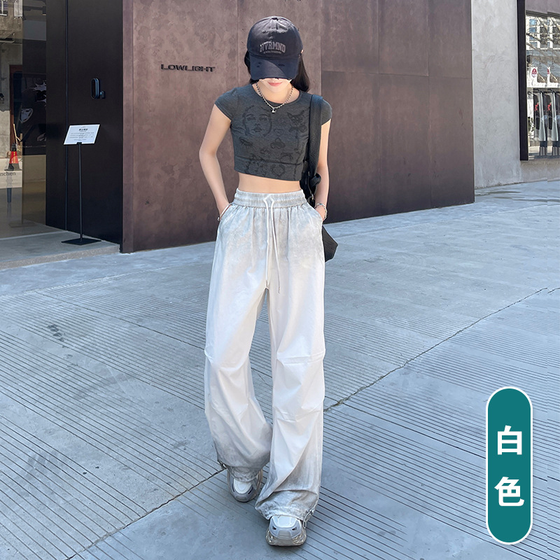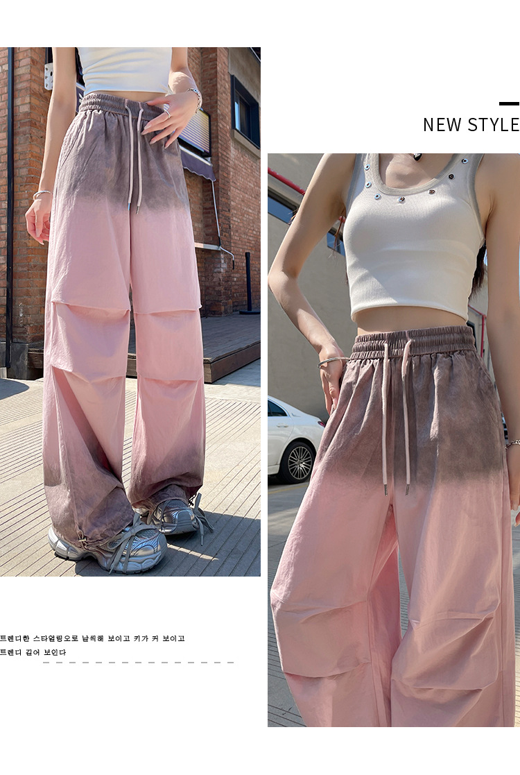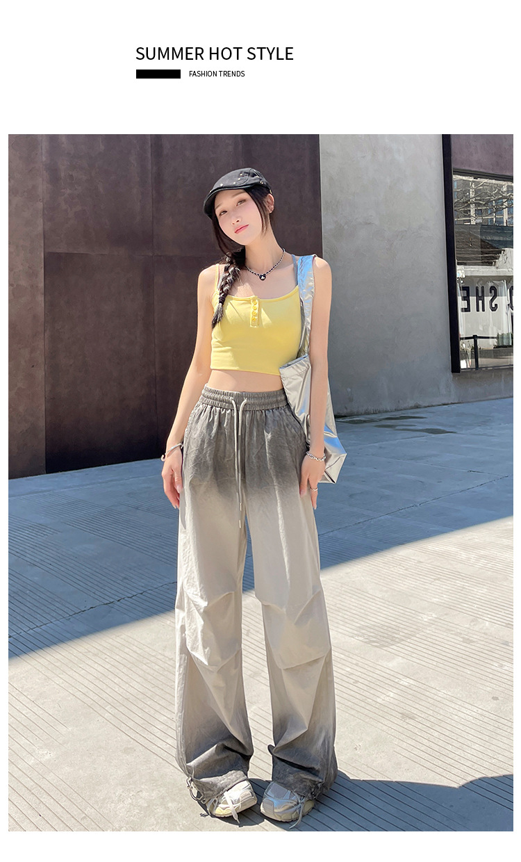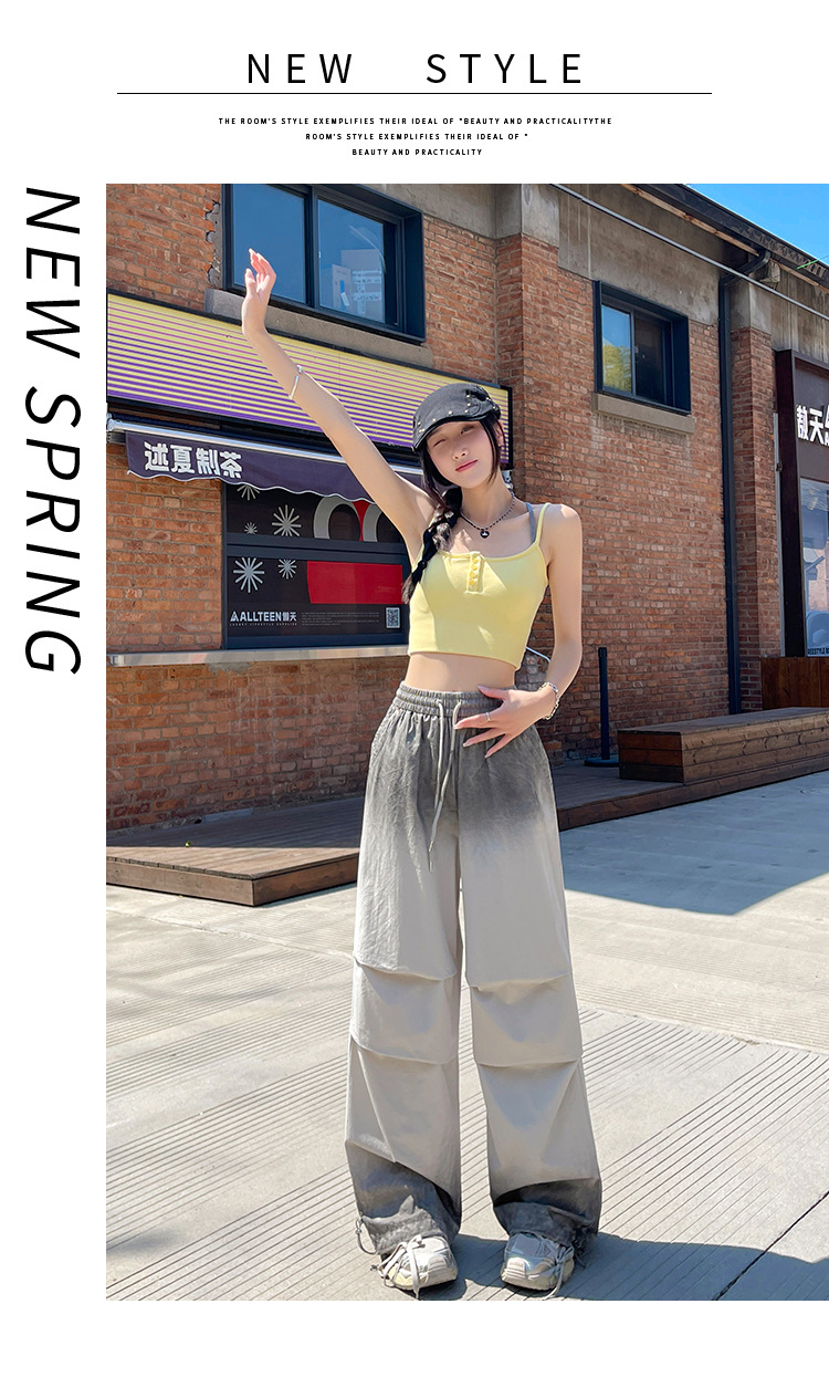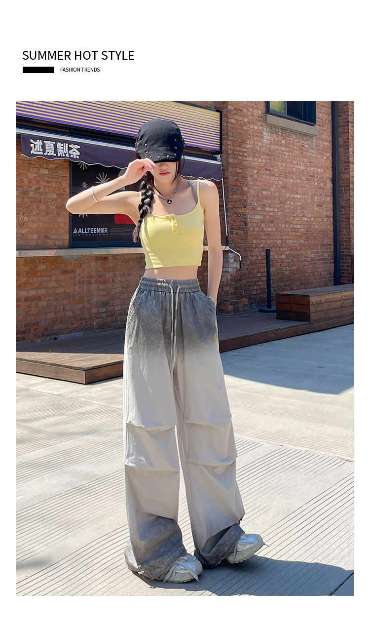 Американские ретро-габардиновые брюки-карго с градиентом, весна-лето 2025, женские универсальные повседневные брюки для бега с высокой талией, широкие брюки-парашюты
