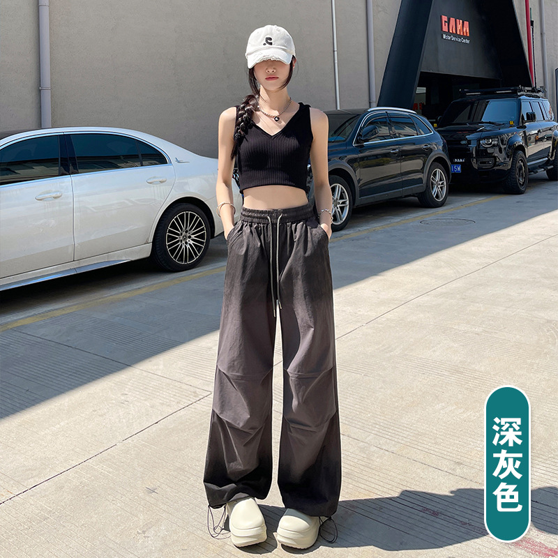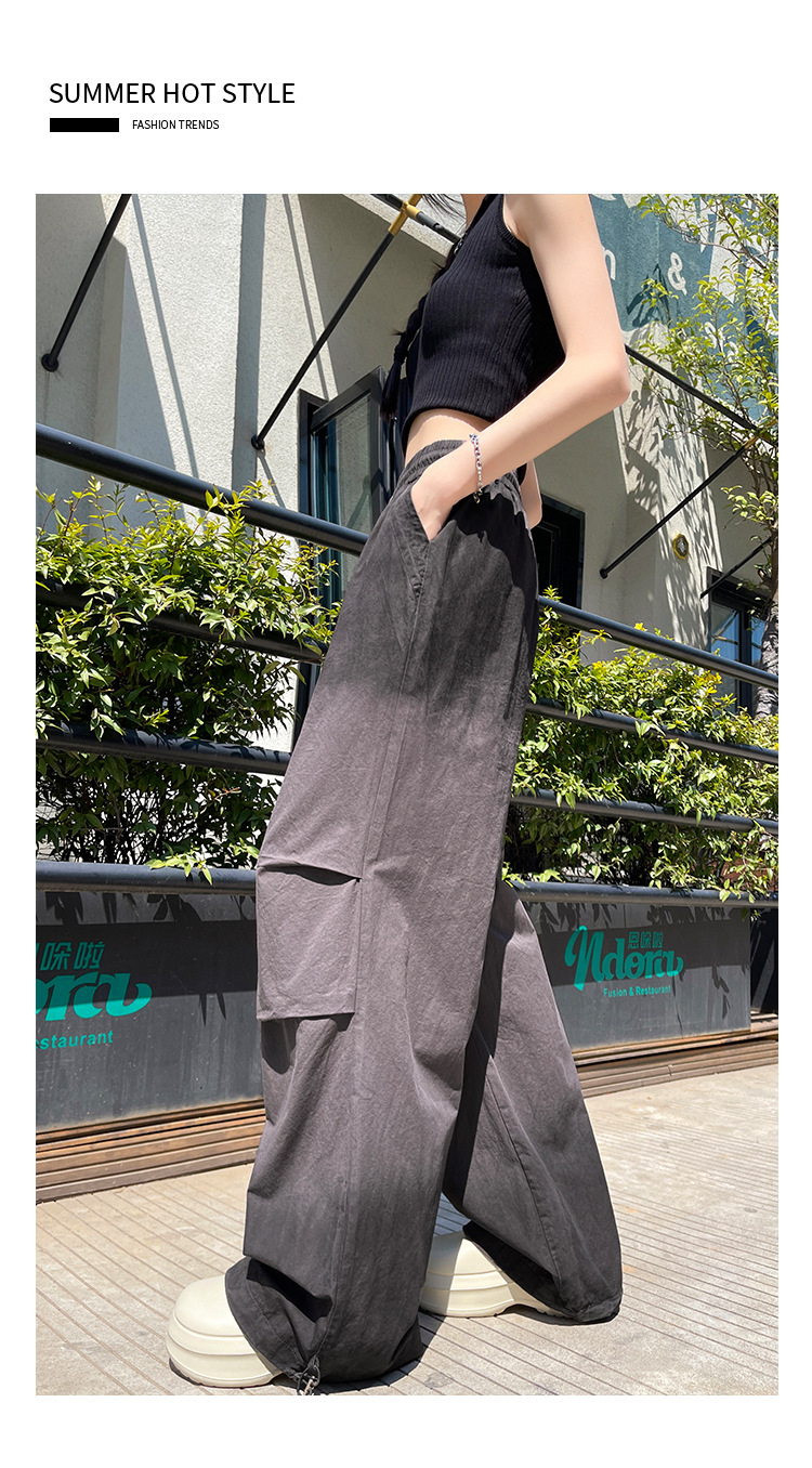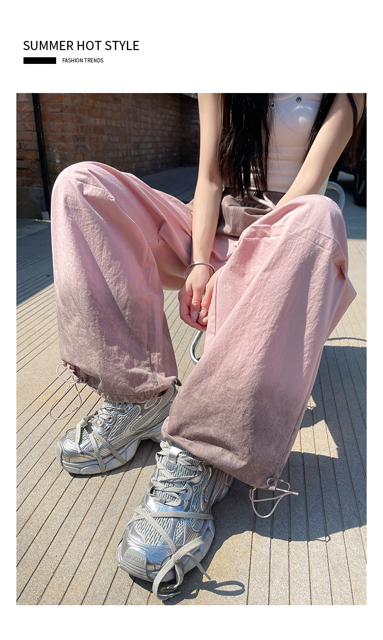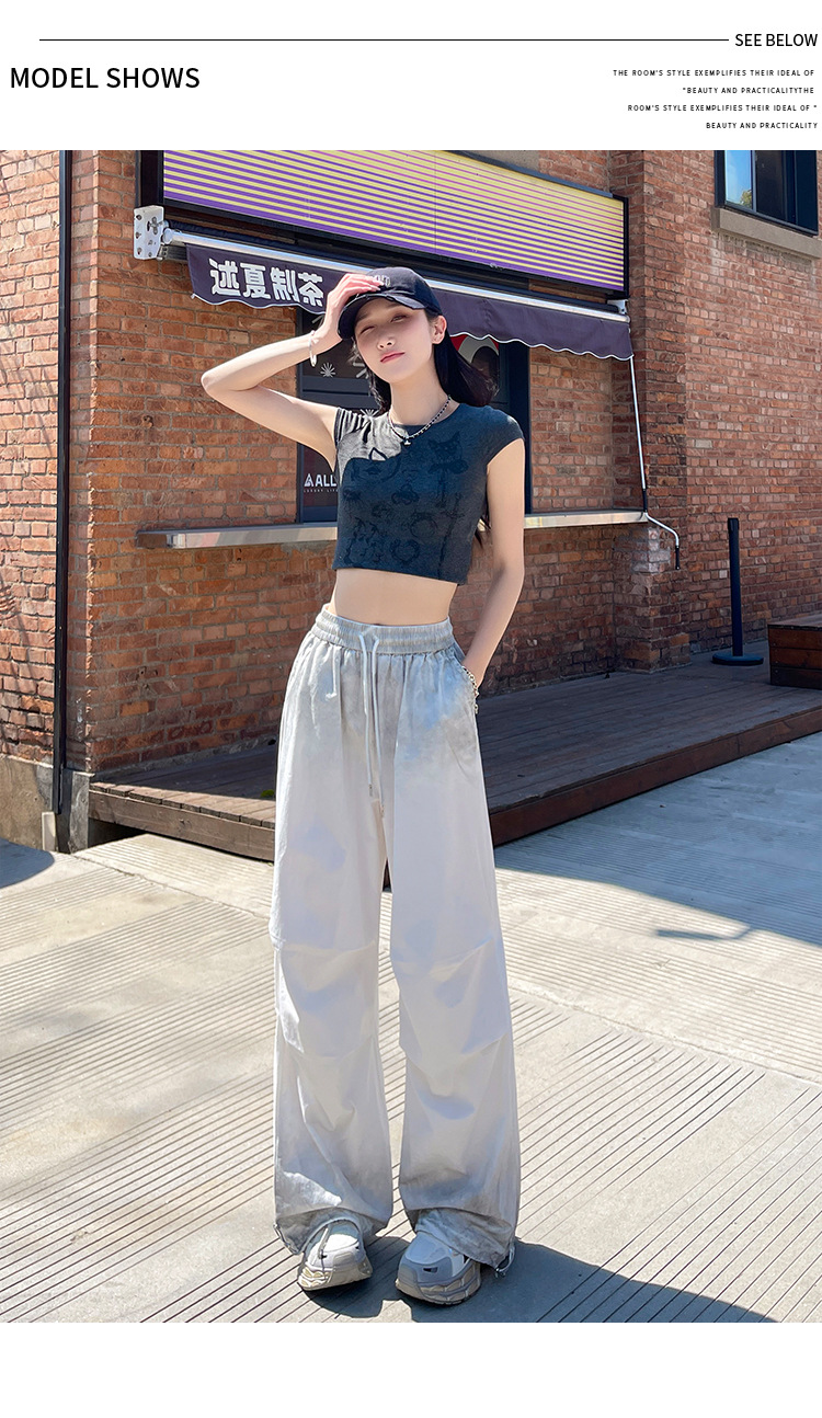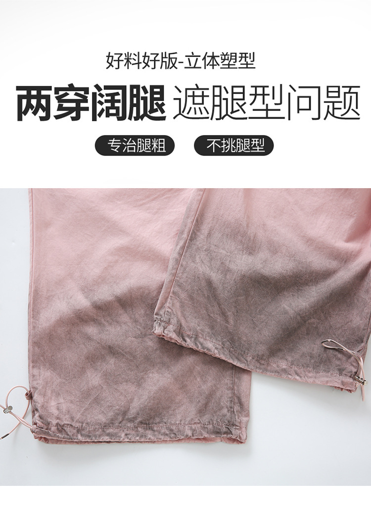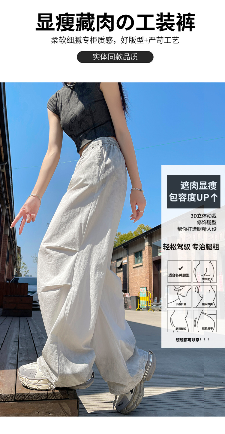 Американские ретро-габардиновые брюки-карго с градиентом, весна-лето 2025, женские универсальные повседневные брюки для бега с высокой талией, широкие брюки-парашюты