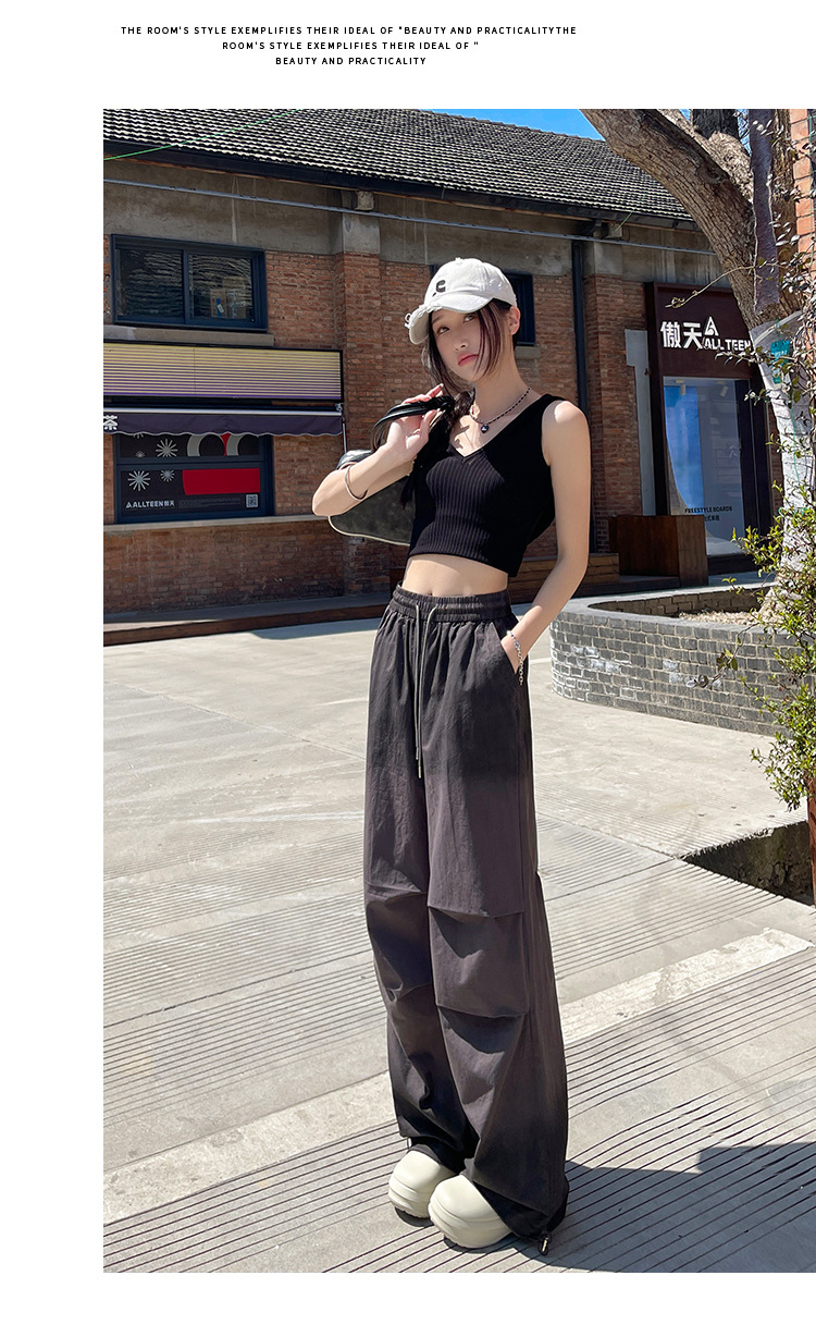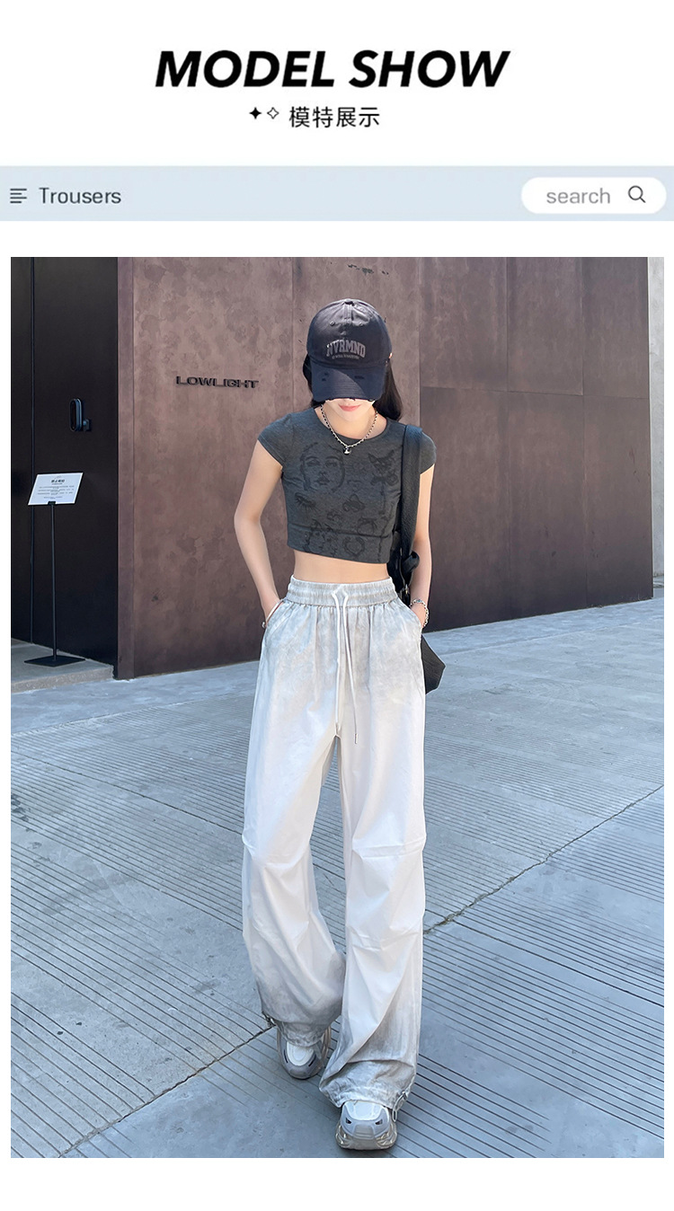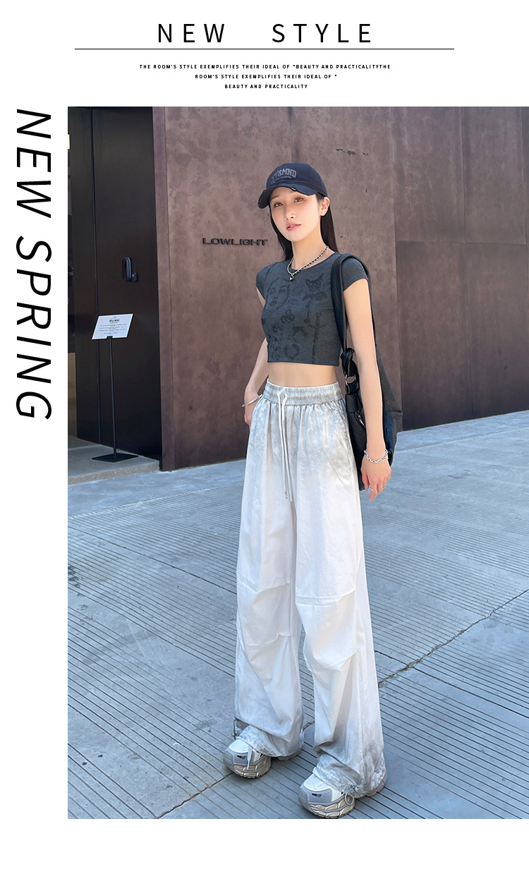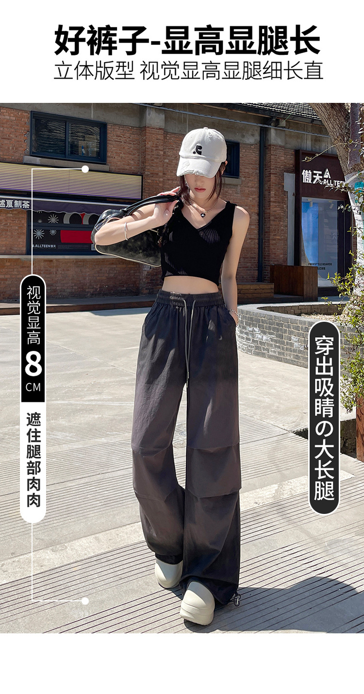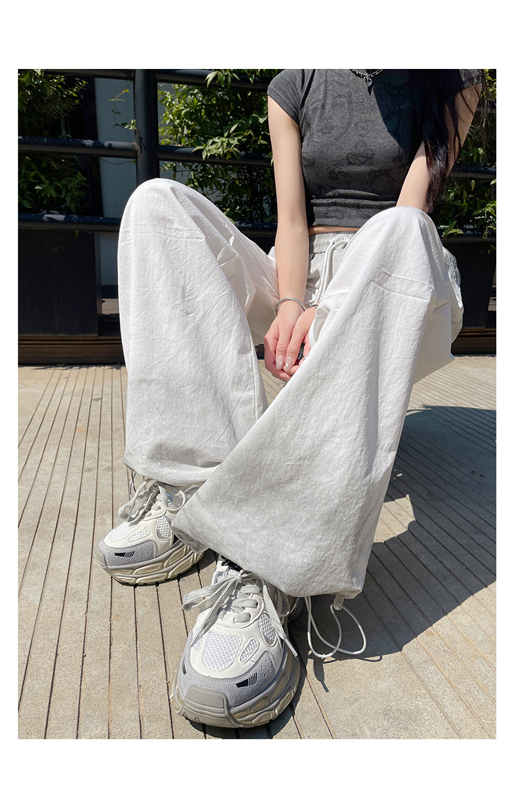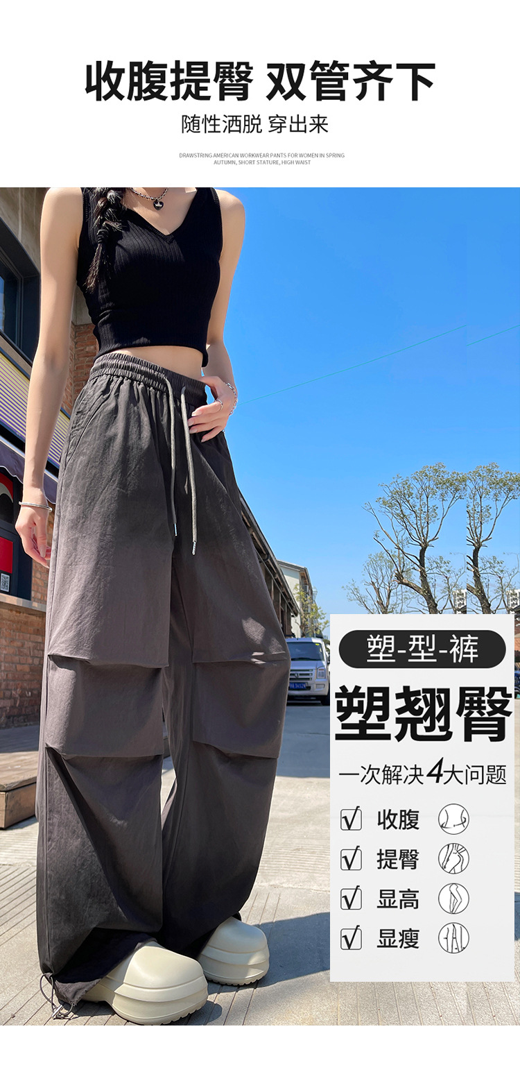 Американские ретро-габардиновые брюки-карго с градиентом, весна-лето 2025, женские универсальные повседневные брюки для бега с высокой талией, широкие брюки-парашюты