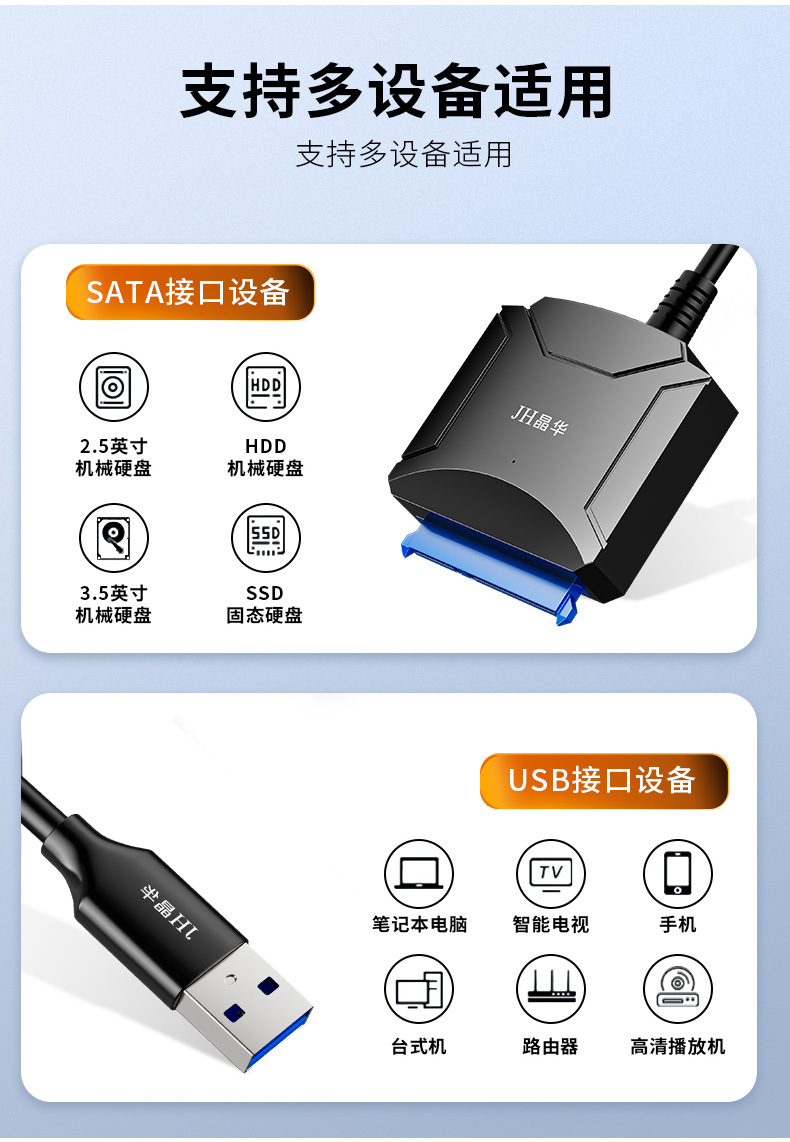 Jinghua sata to usb3.0 кабель-адаптер для жесткого диска, кабель для легкого привода, внешний интерфейс 2,5/ 3.5inch для настольного компьютера
