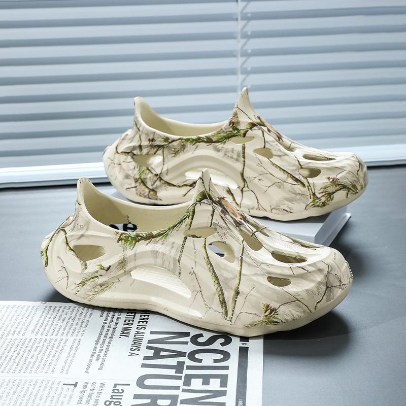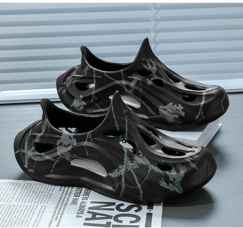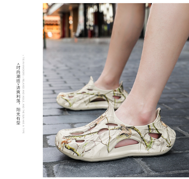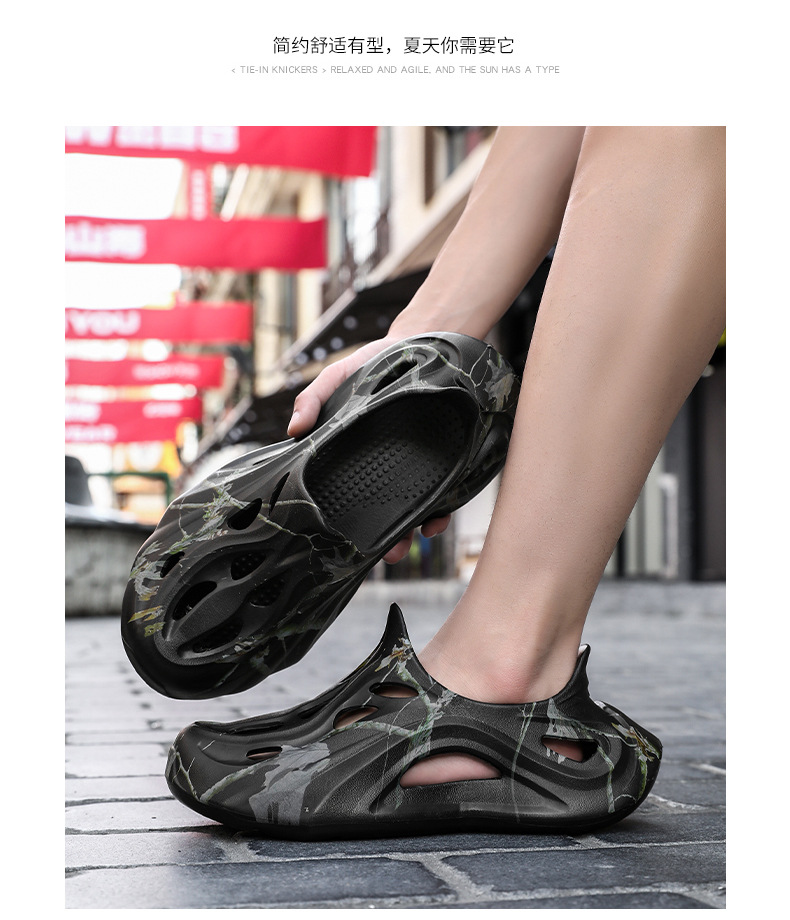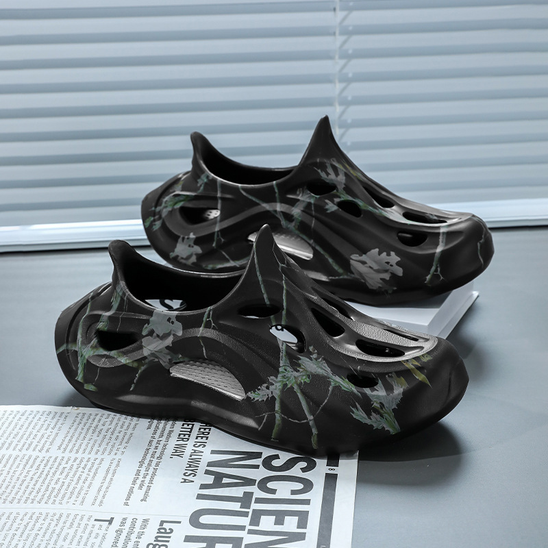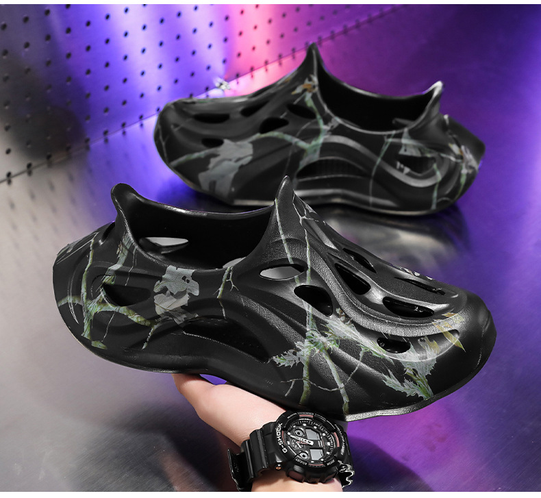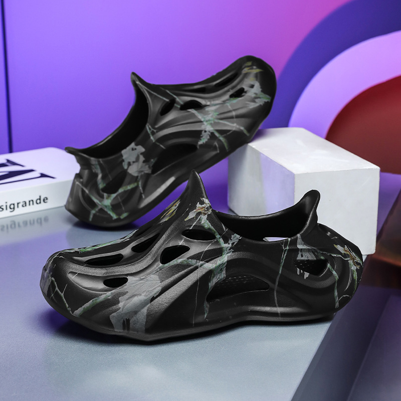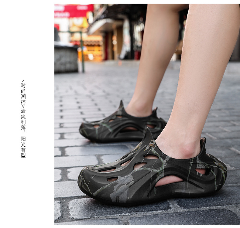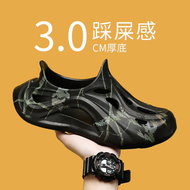 Летние новые стильные мужские туфли с полыми отверстиями, утолщенная мягкая подошва, нескользящая, износостойкая, пляжная обувь для занятий спортом на открытом воздухе.