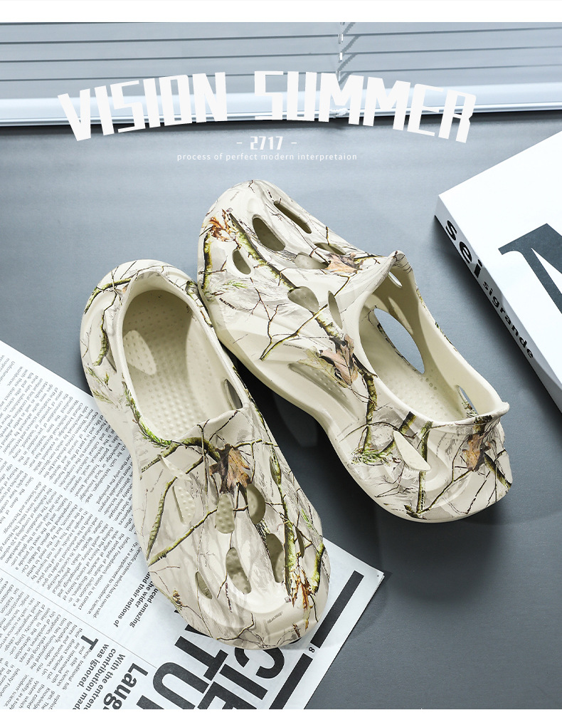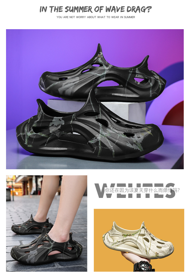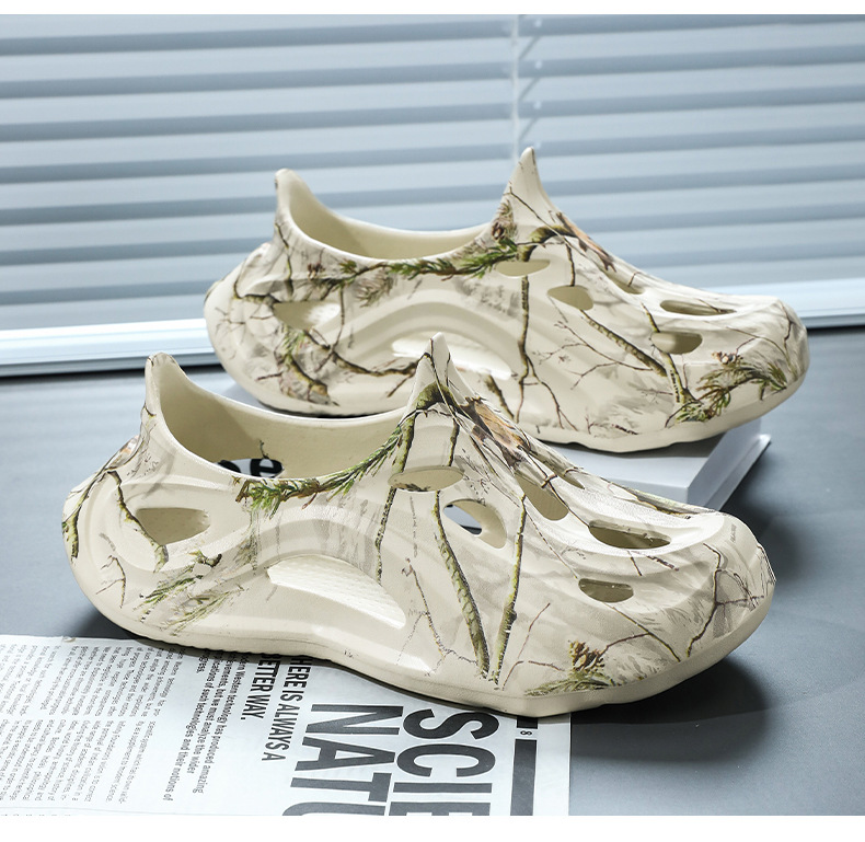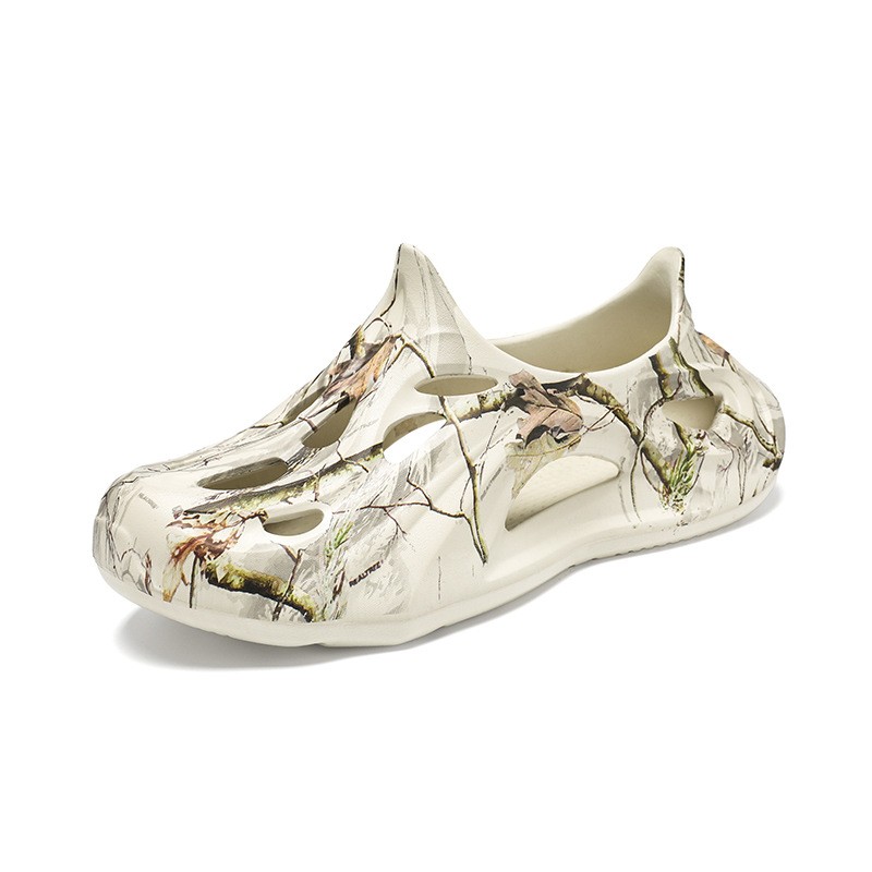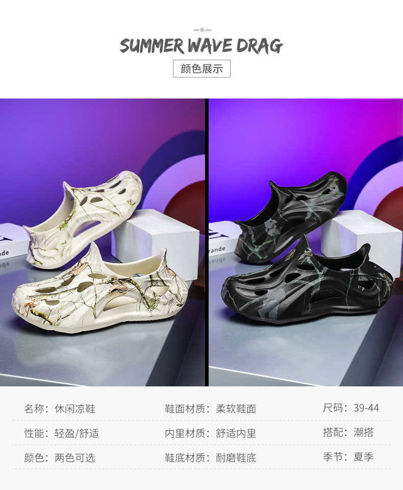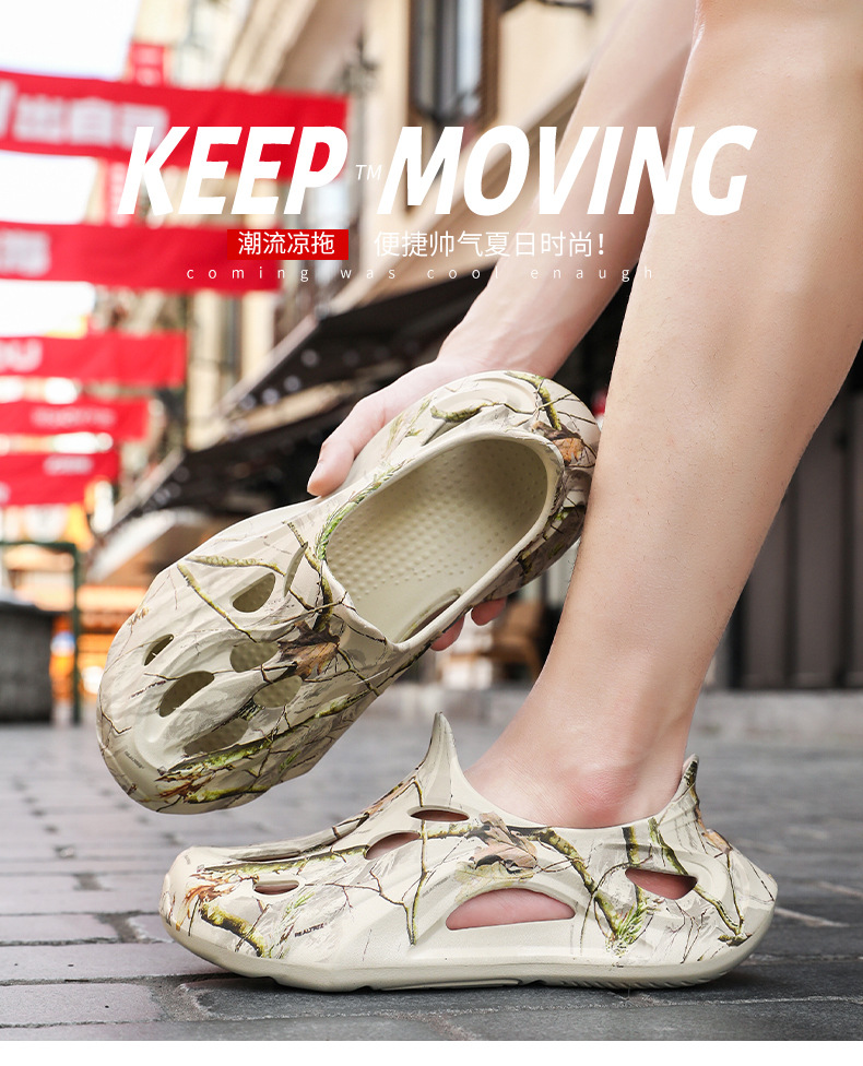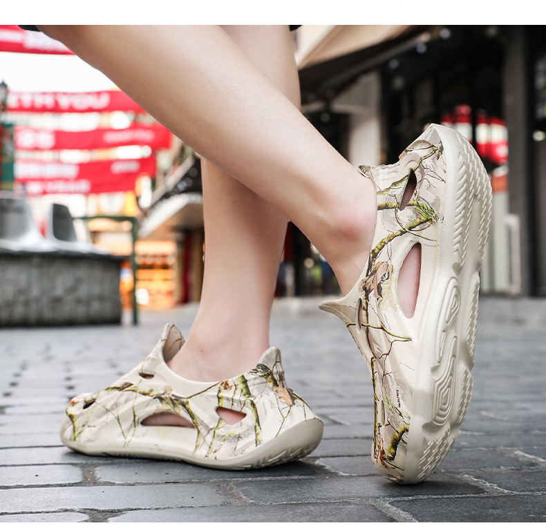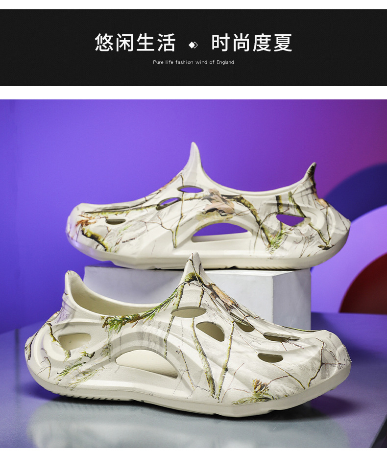 Летние новые стильные мужские туфли с полыми отверстиями, утолщенная мягкая подошва, нескользящая, износостойкая, пляжная обувь для занятий спортом на открытом воздухе.