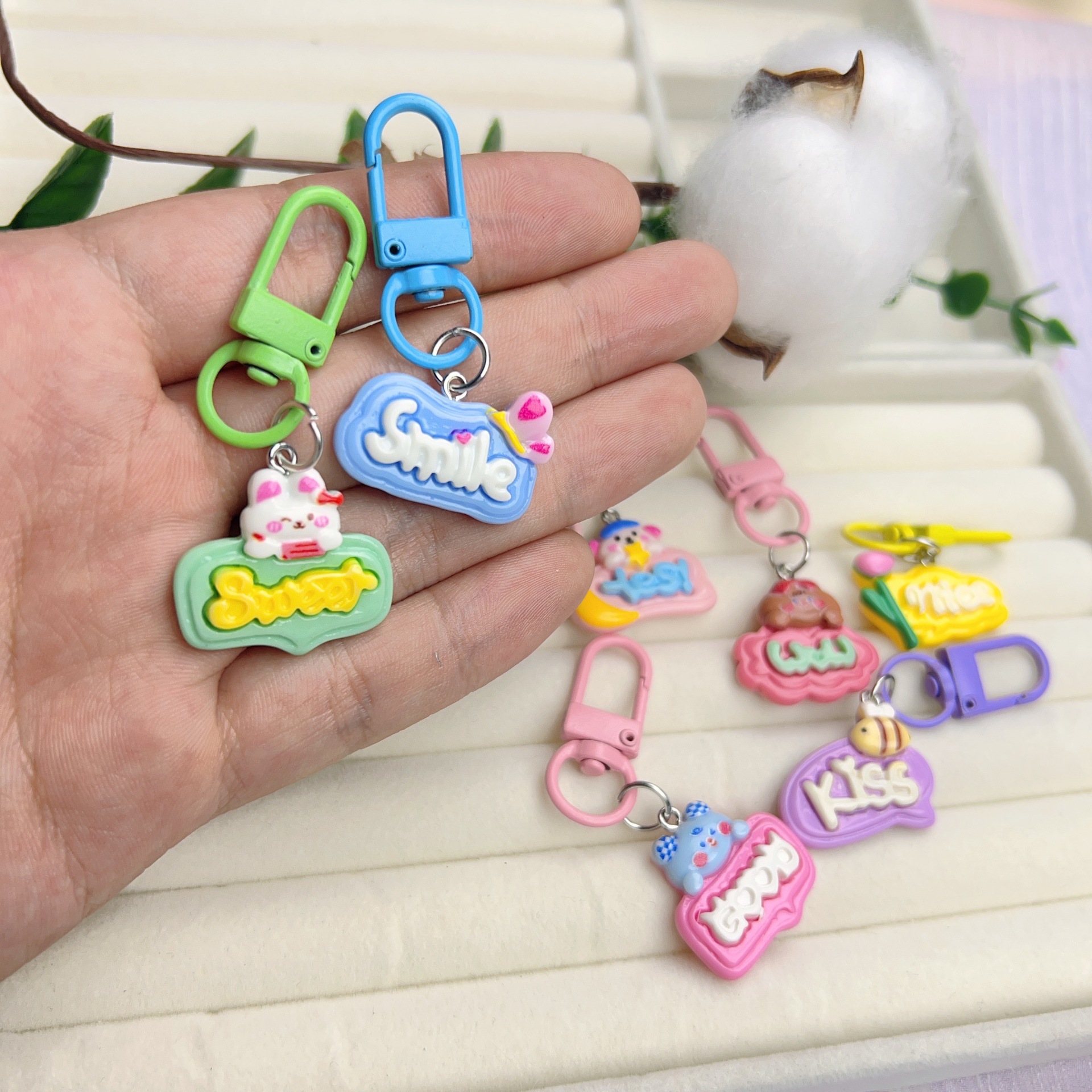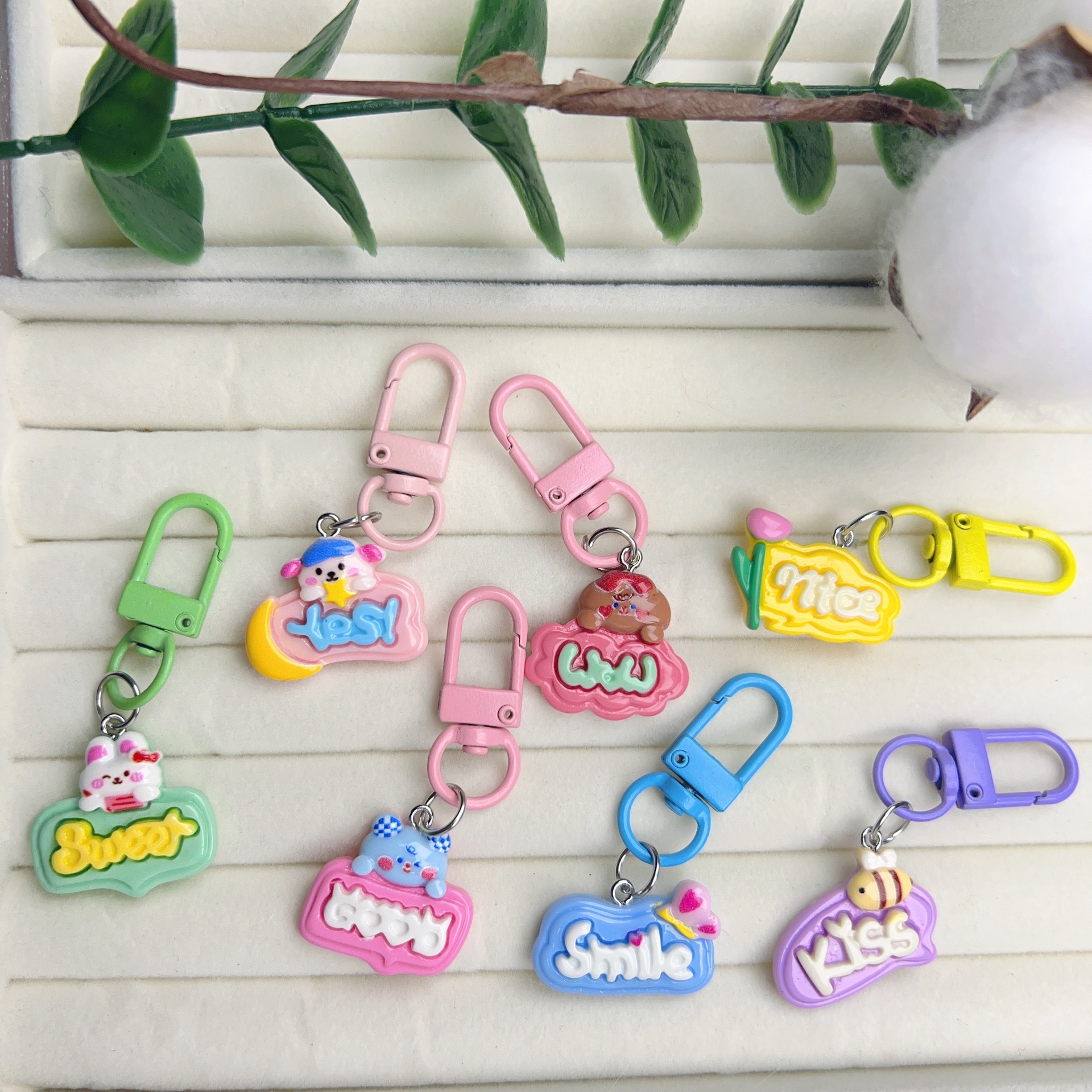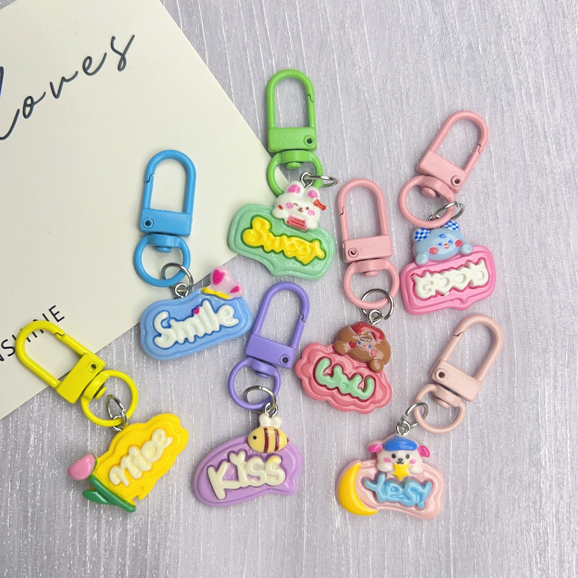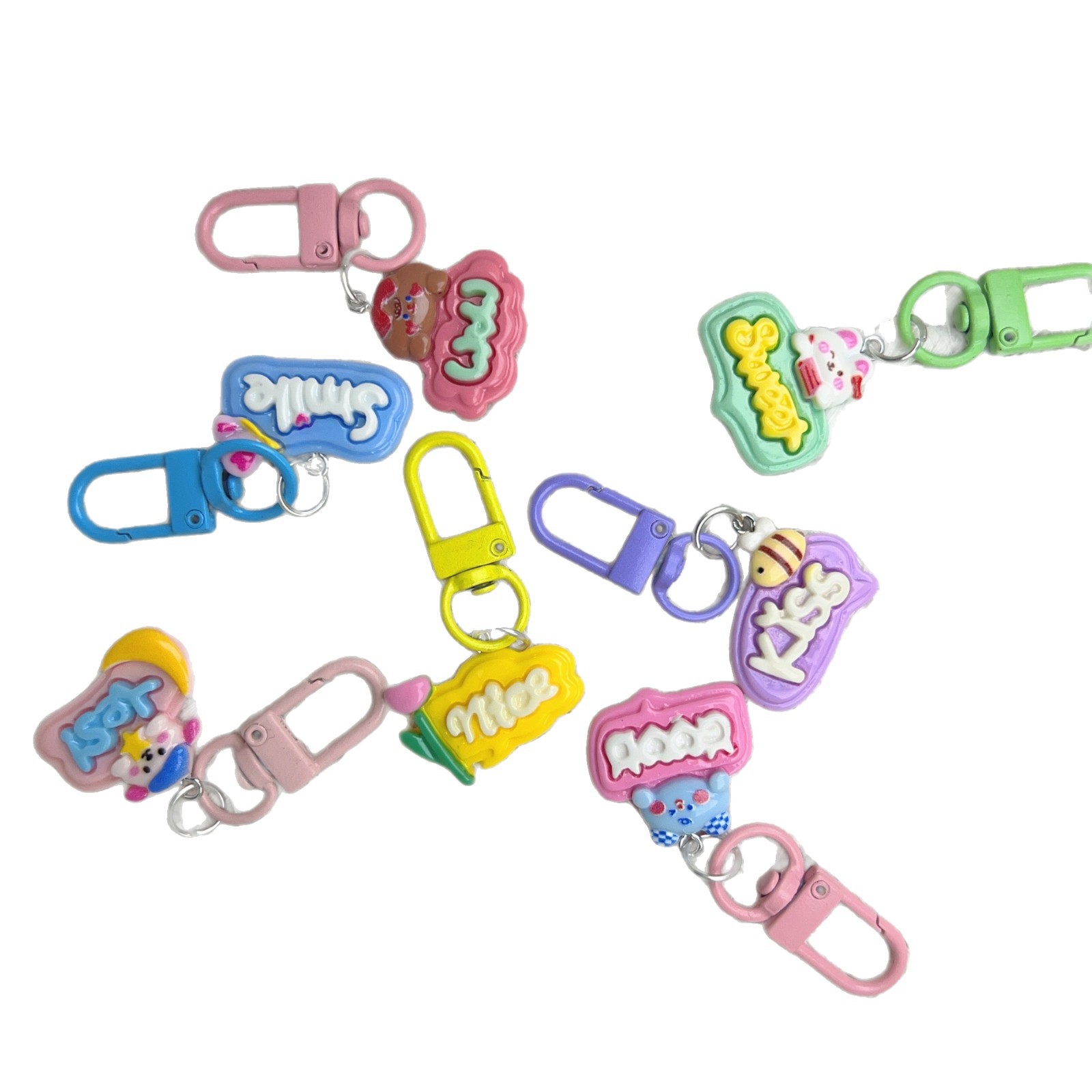 Милый кролик и медведь, сделай сам, английская табличка с словом, брелок для школьной сумки, милый кулон, сумка для девочек, подвесные украшения