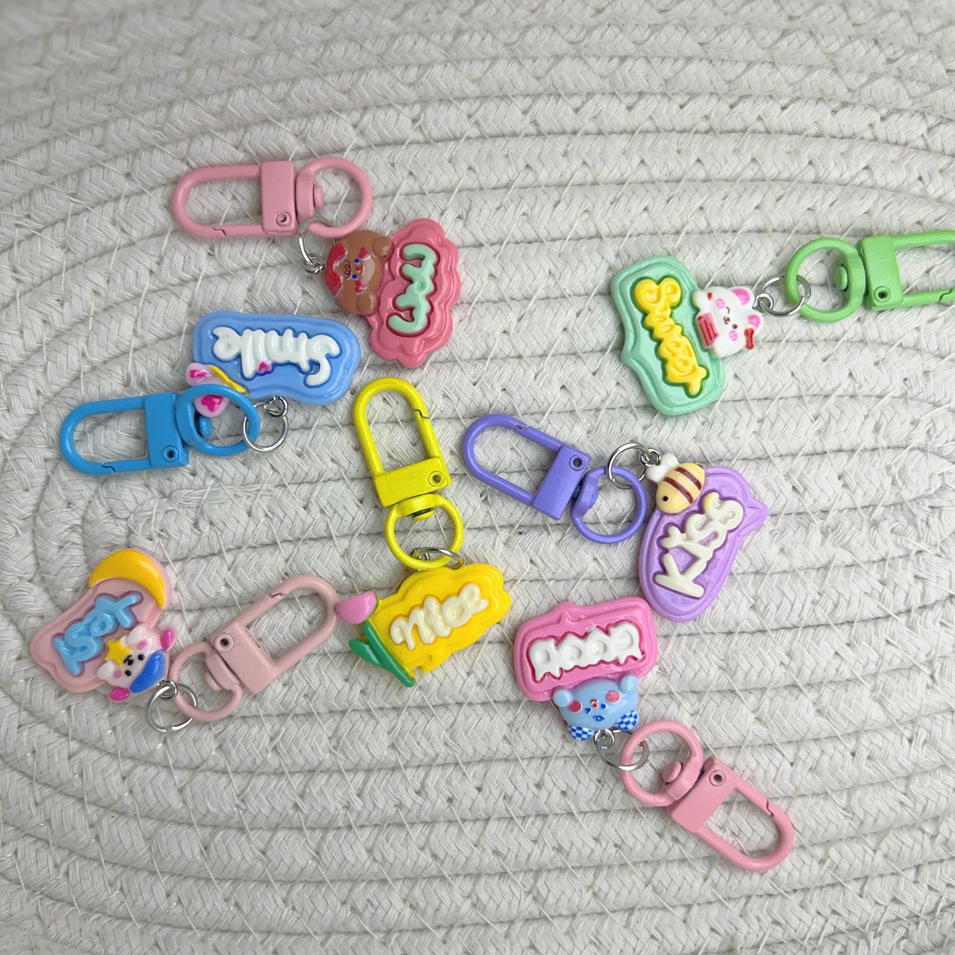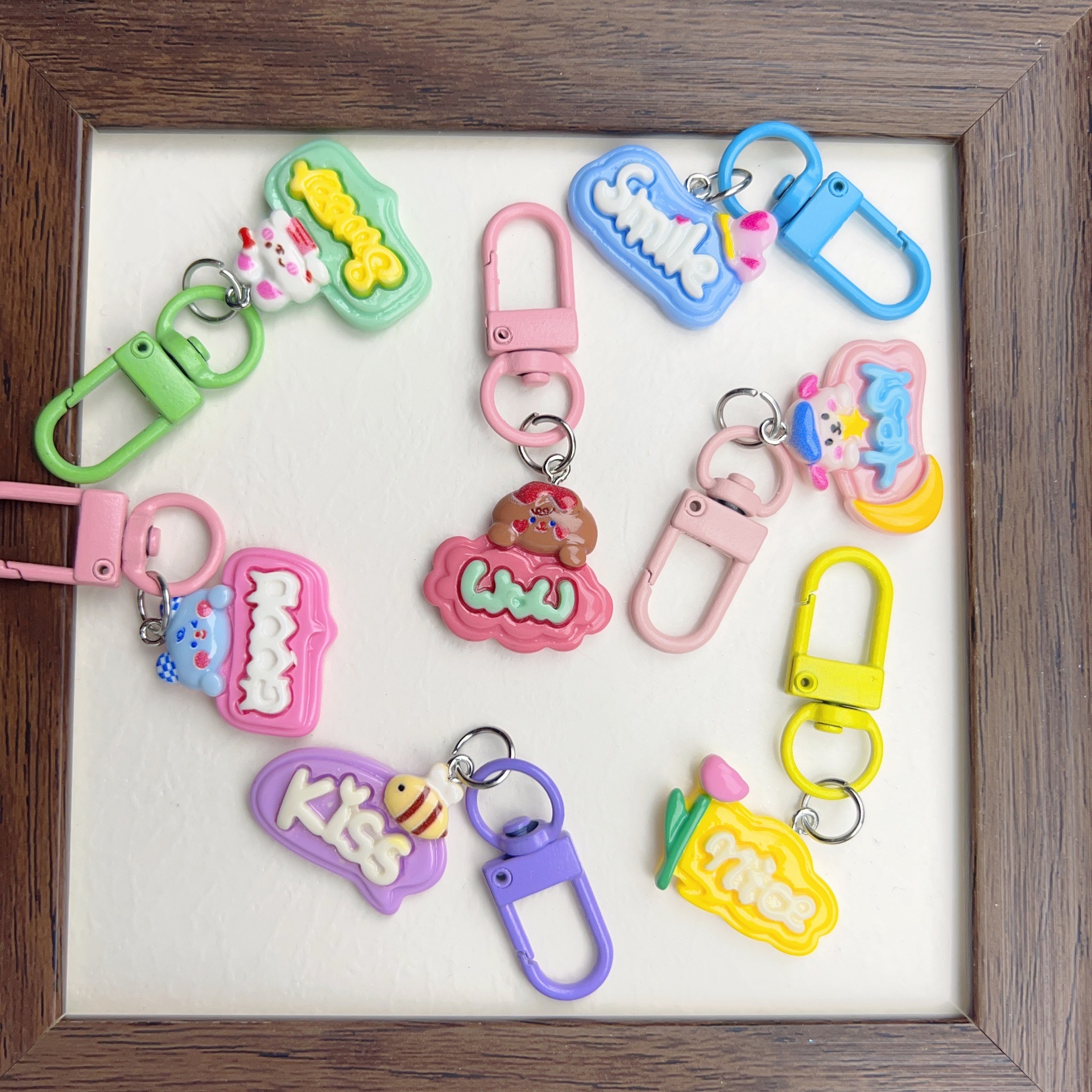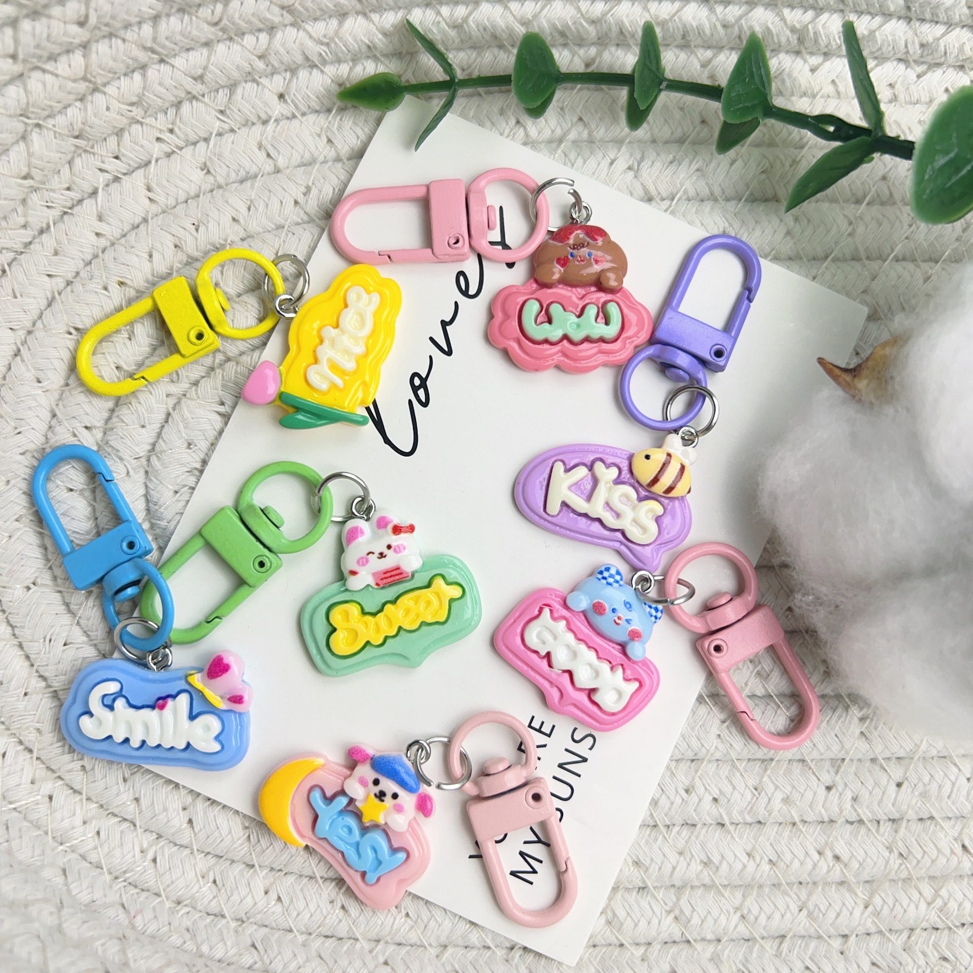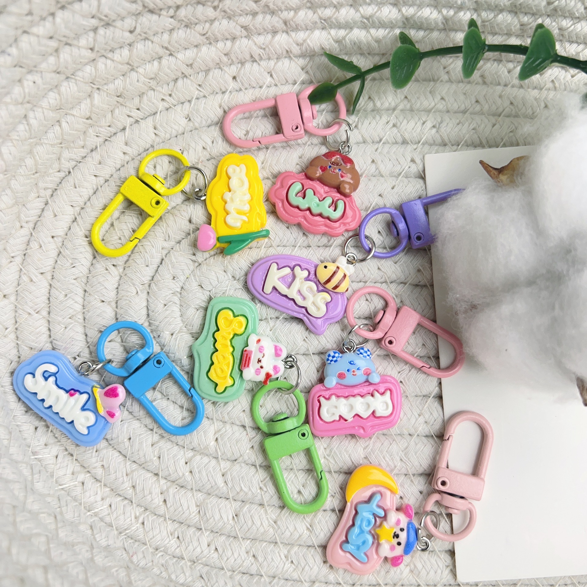 Милый кролик и медведь, сделай сам, английская табличка с словом, брелок для школьной сумки, милый кулон, сумка для девочек, подвесные украшения