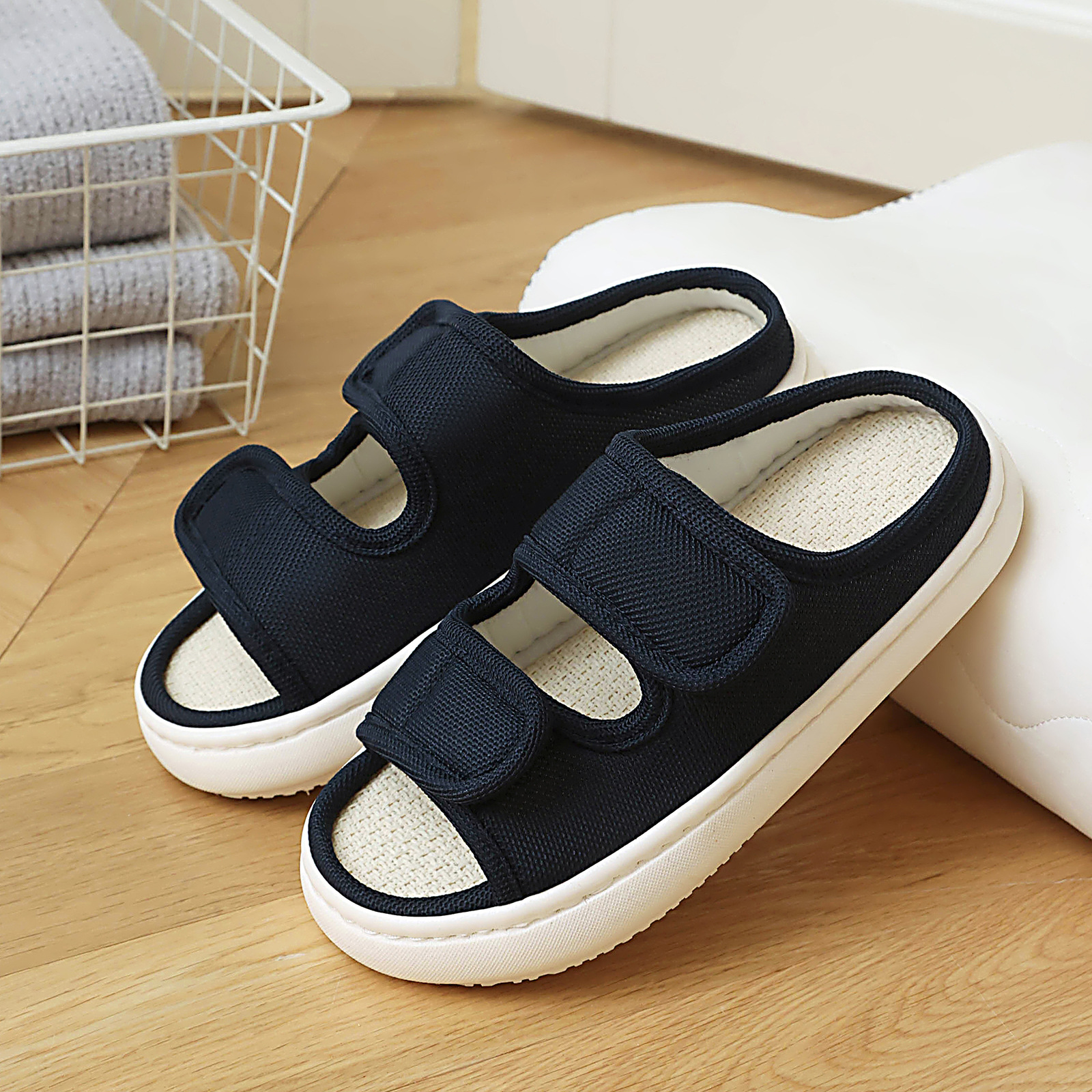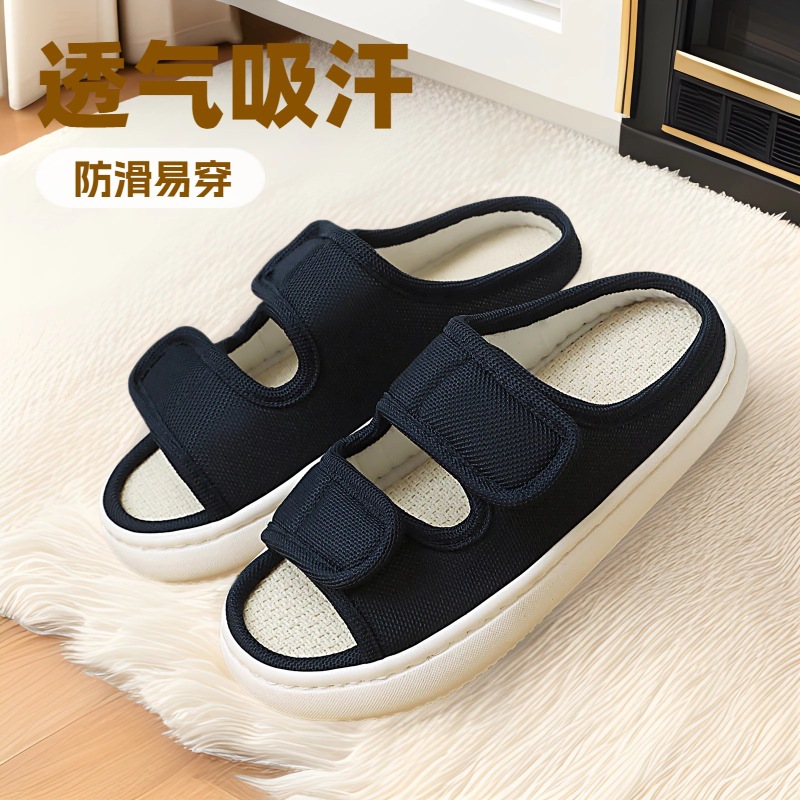 Специальная обувь для опухших ног после сахарной операции на ногах, льняные тапочки с большим отверстием для женщин, впитывающие пот весенне-осенние, нескользящие, четырехсезонные мужские тапочки.