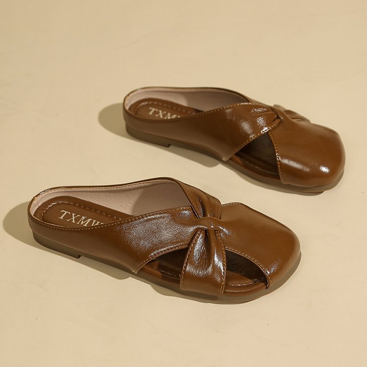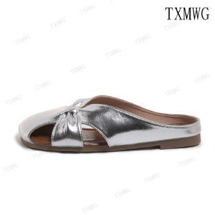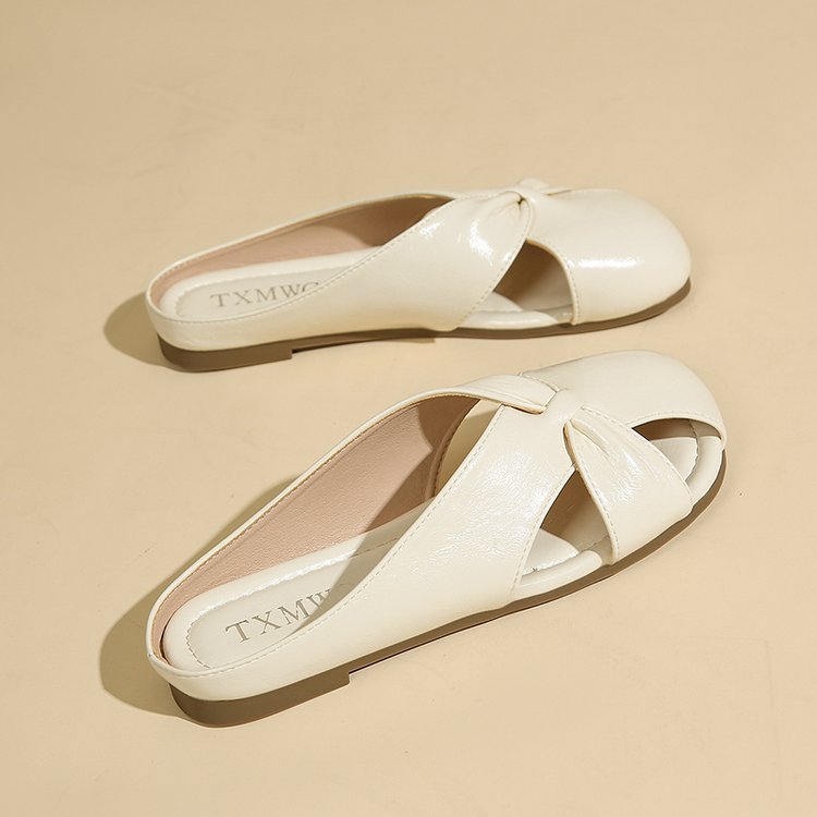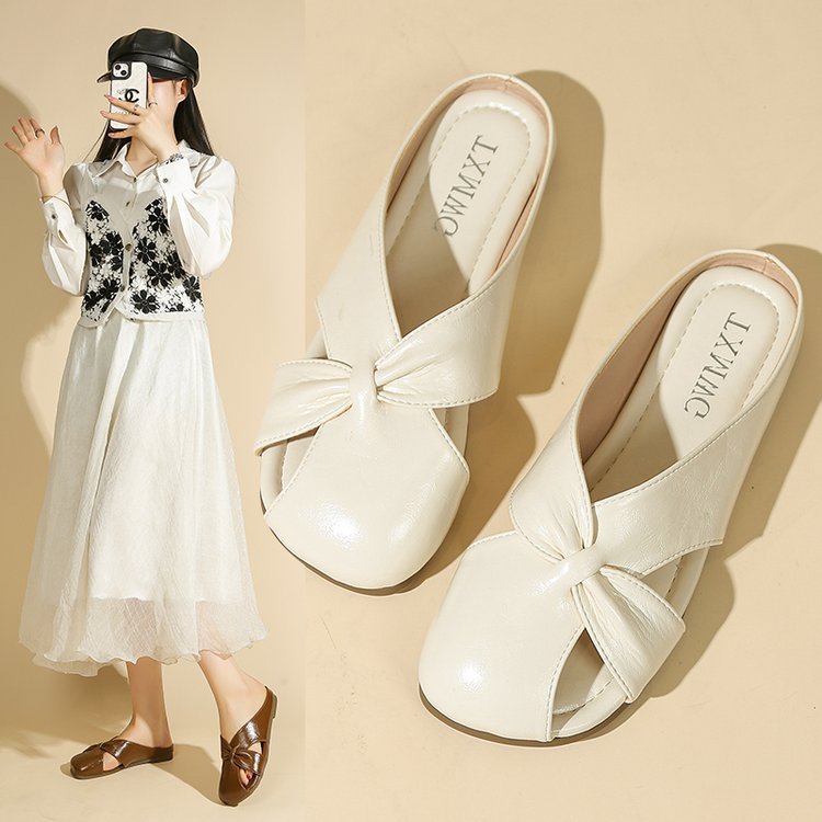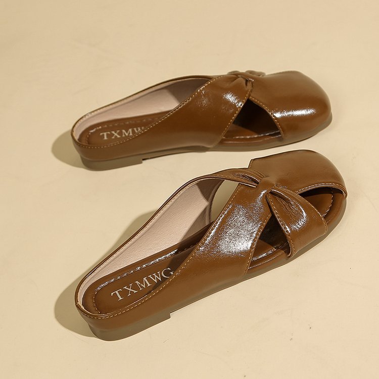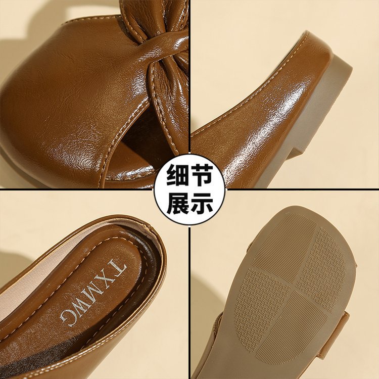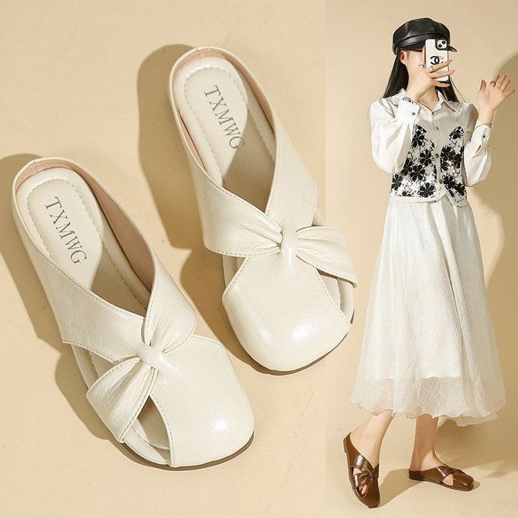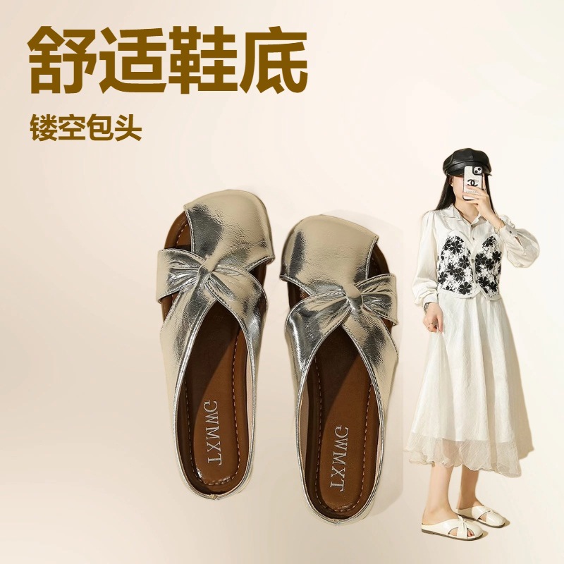 Женские летние шлепанцы с бантом на носке 2025 года, новые универсальные французские балетки на плоской подошве из мягкой кожи, легкие сандалии
