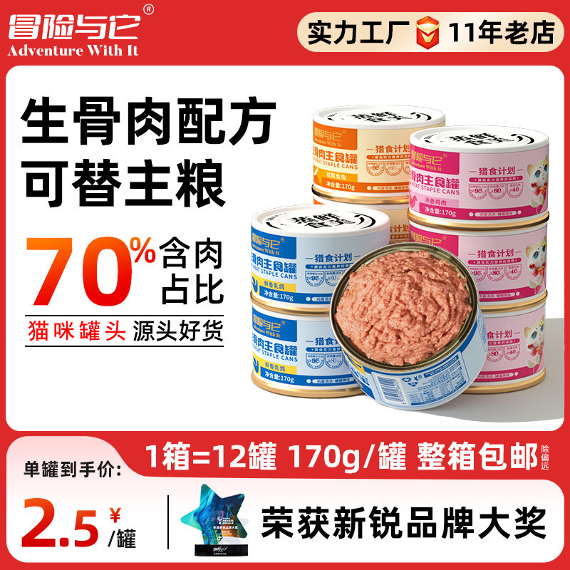 Консервы для кошек «Приключение и сырокое мясо», 170 г, кролик и голубь, влажный корм для кошек, рис для кошек, оптом.