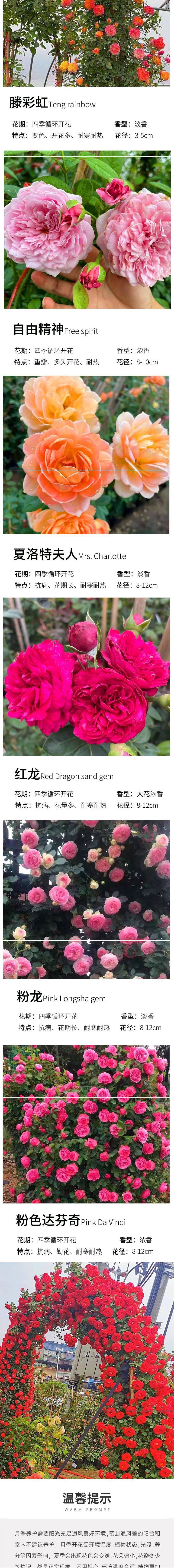 розовый драгоценный камень лонза; драгоценный камень песка красного дракона; золотое торжество; синий дождливый; миссис Шарлотта; парад; медовая карамель; Кнопка Rouge; Айла помпон; Рой; принцесса; бусины из белого дерева; маленькая девочка; лавандовый венок; сладких снов; аромат палисандра; свободный дух; Флорентина; Лу Шухонг; Анжела; розовый да Винчи; Тэн Цайхун