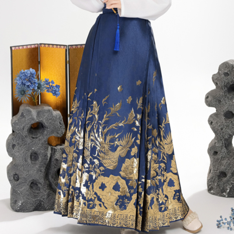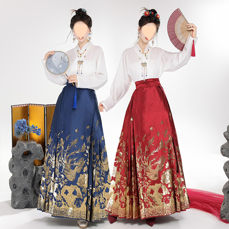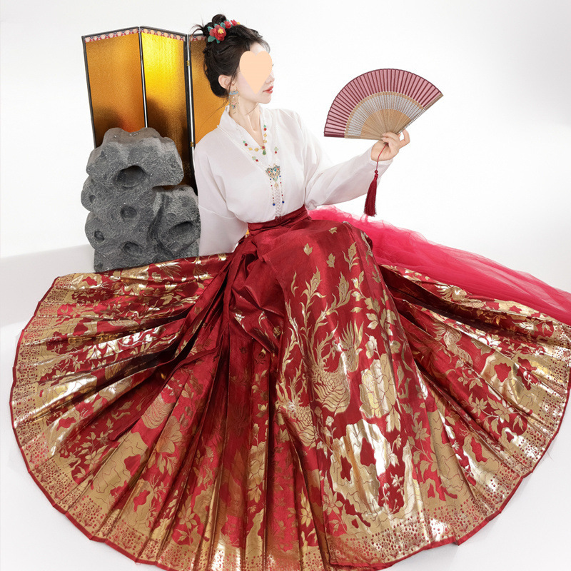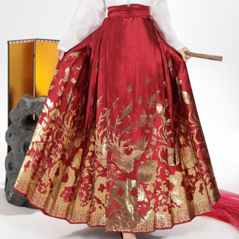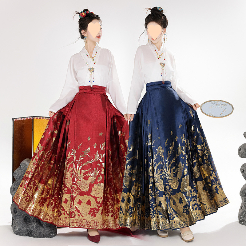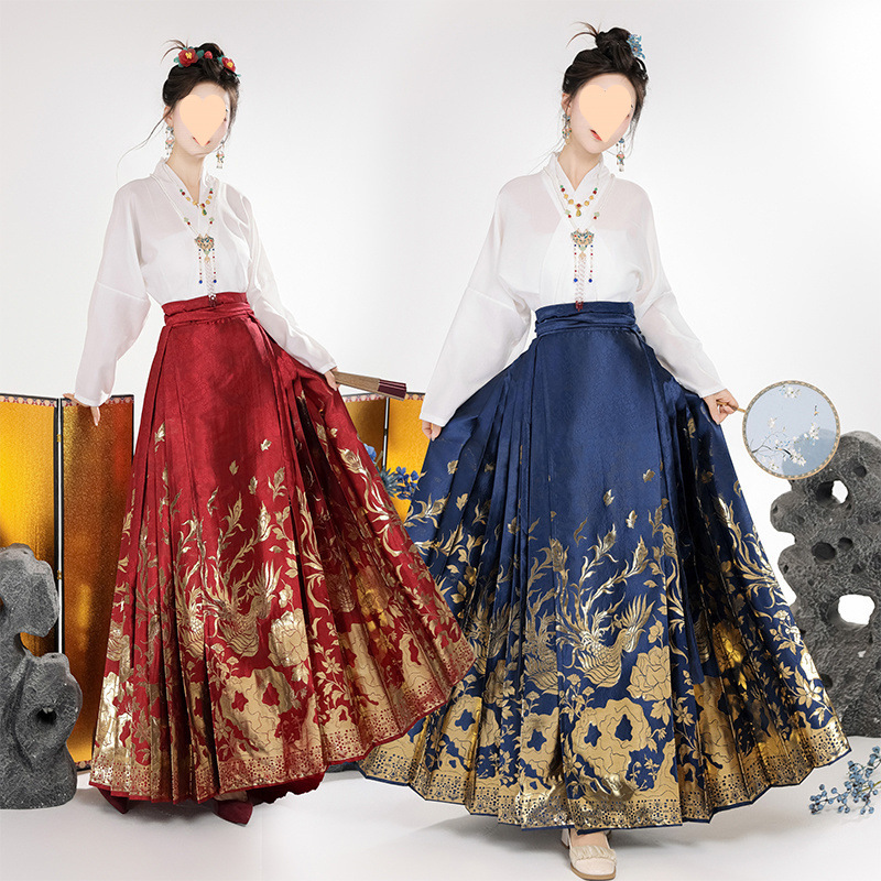 Новый комплект юбки с узором «Лошадиная морда» из перьев феникса для повседневной носки, новая полуюбка в китайском стиле, новогодний наряд ханьфу династии Мин, весенне-осенний стиль.
