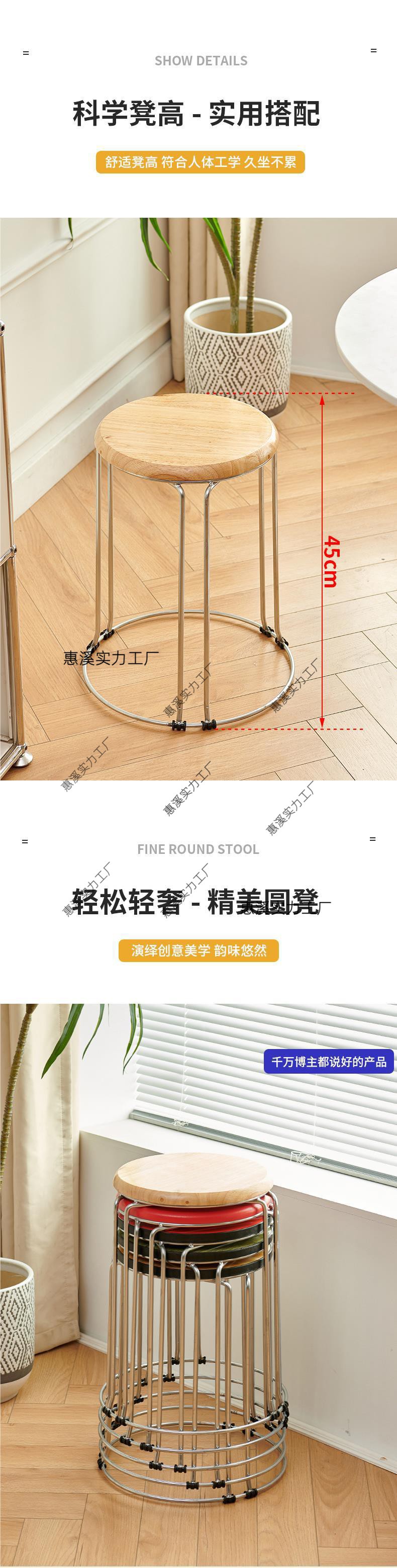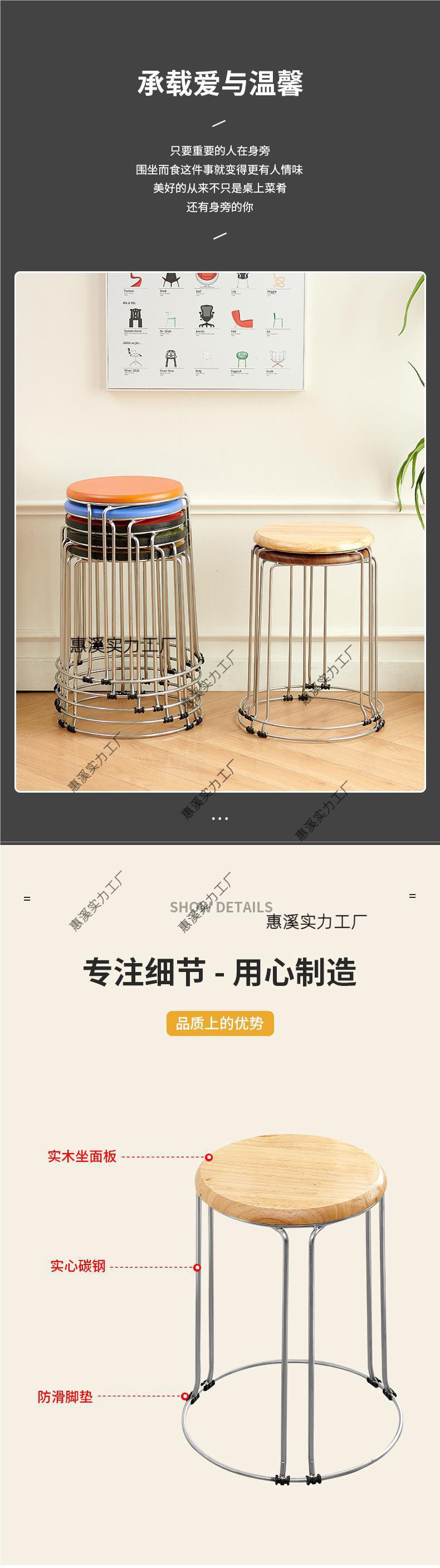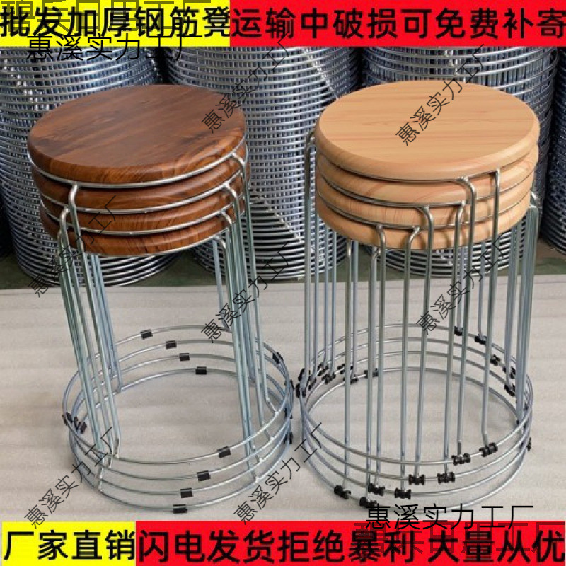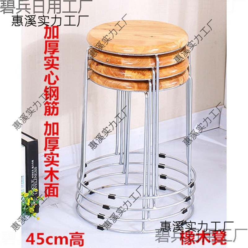 Круглый табурет из цельного дерева, табурет из нержавеющей стали, бытовой штабелируемый стальной табурет, набор табуретов, железный табурет для общежития, ресторана, маленькая скамейка для взрослых