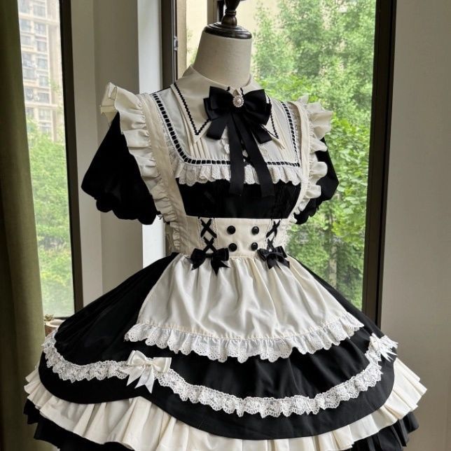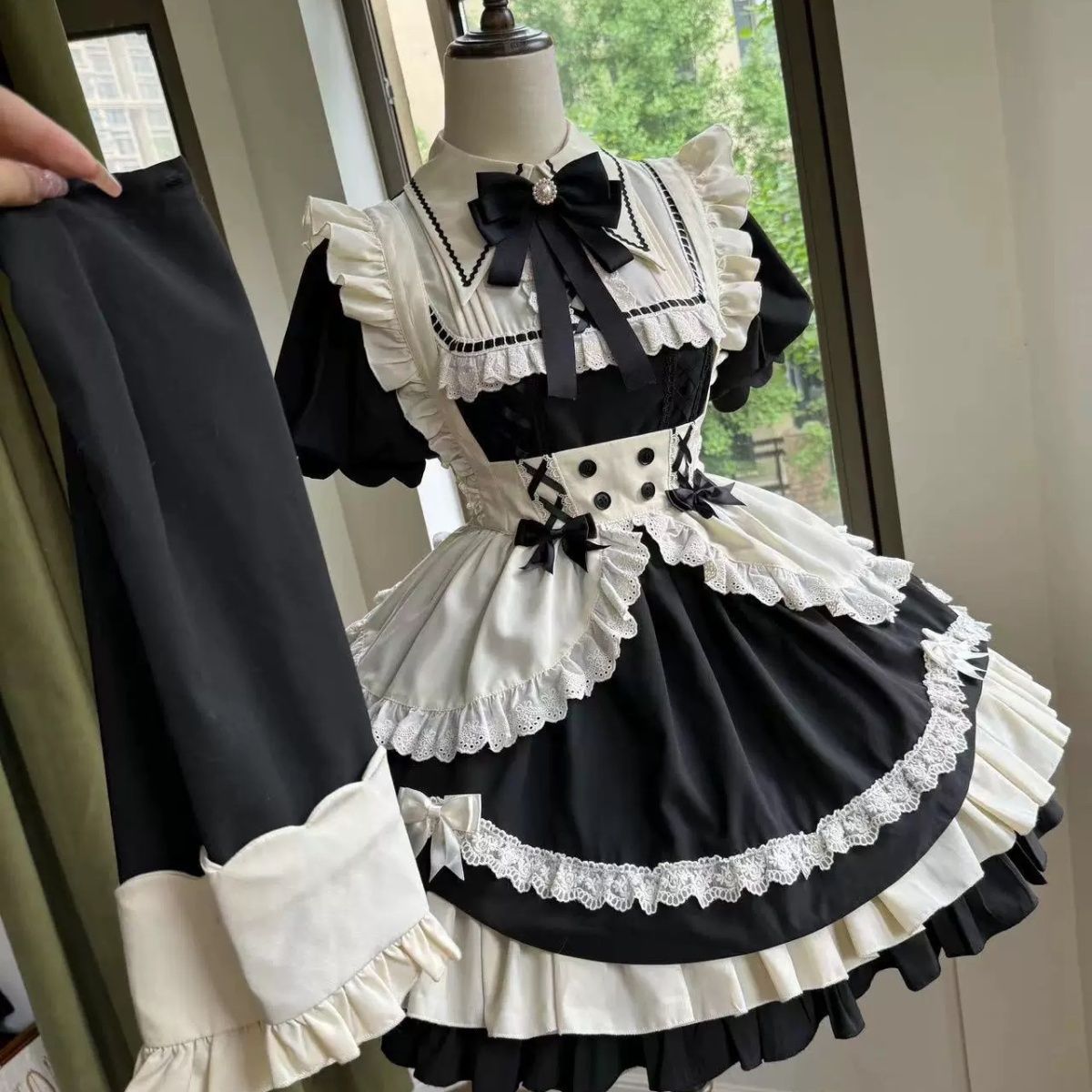 Новое платье, идеальный костюм горничной COS, костюм горничной со съемными рукавами, костюм для выступлений в стиле Лолиты, костюм для прямой трансляции интернет-знаменитостей.