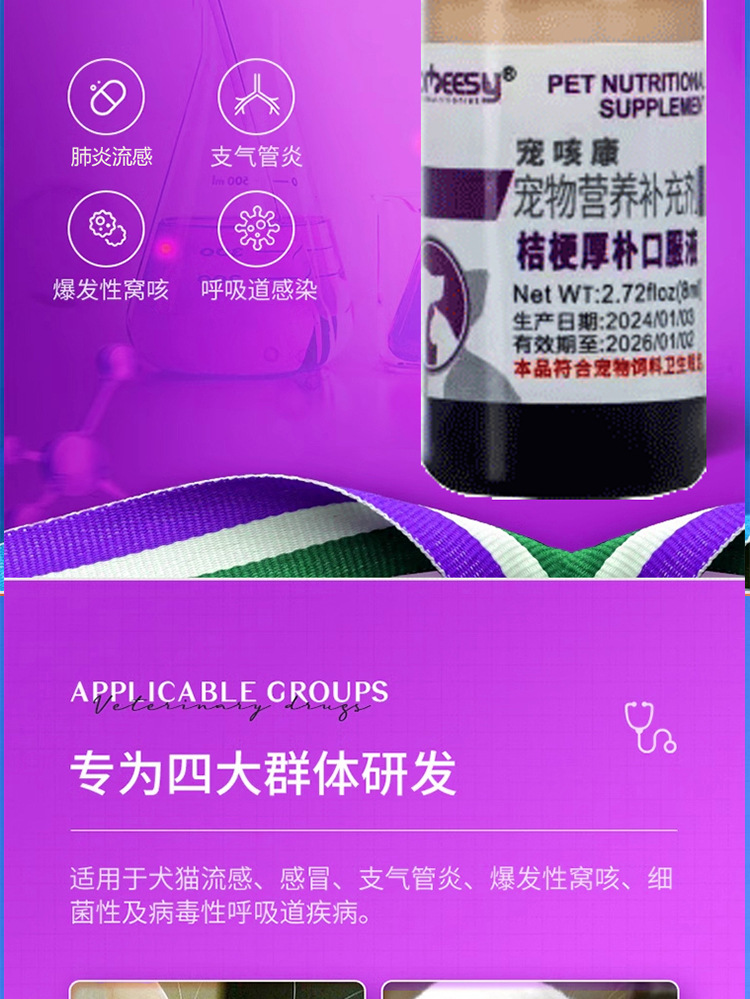 Лекарство от кашля для домашних животных для собак с кашлем и астмой, жидкая жидкость для приема внутрь для кошек и собак с простудой, трахеитом у кошек, непослушным кашлем у собак, целая коробка