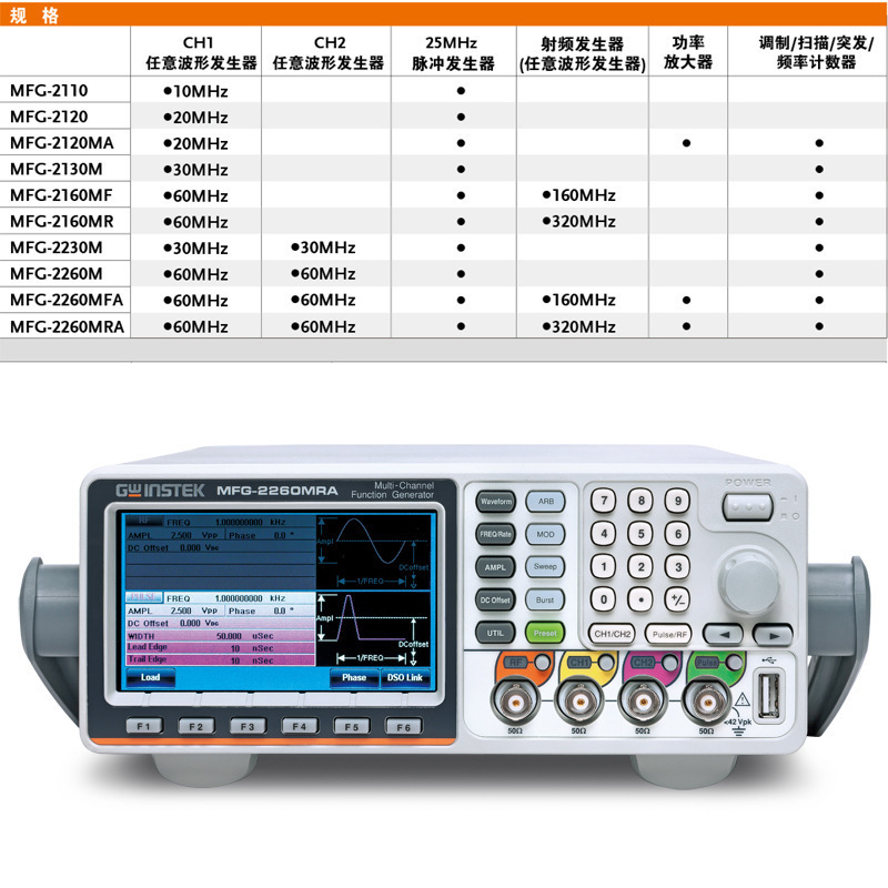 MFG-211010MHz одноканальный; MFG-212020MHz одноканальный; MFG-2120MA20MHz одноканальный; MFG-2130M30MHz одноканальный