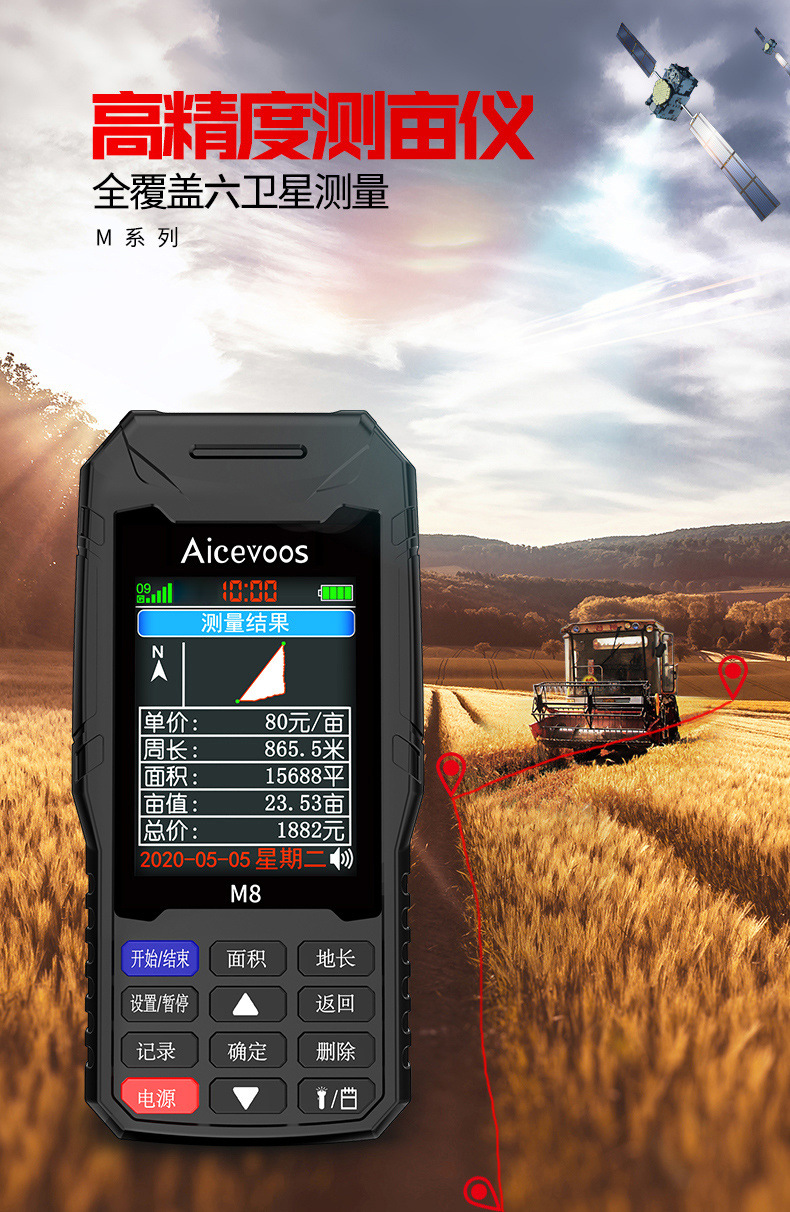 Aiwo высокоточный портативный GPS-прибор для измерения площади земли, прибор для измерения площади земли, измеритель площади поля, устанавливаемый на транспортном средстве комбайн