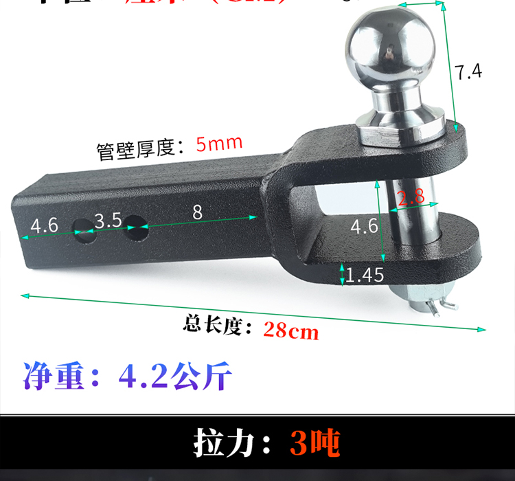 Универсальный внедорожный крюк для прицепа, крюк для буксировки автофургона, длинный стержень, шаровая головка, прочная U-образная скоба, спасательный прицеп, модифицированная углеродистая сталь
