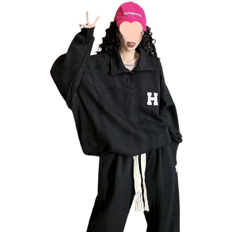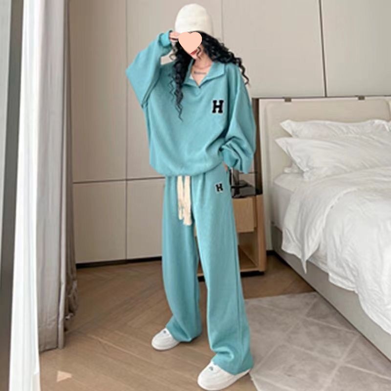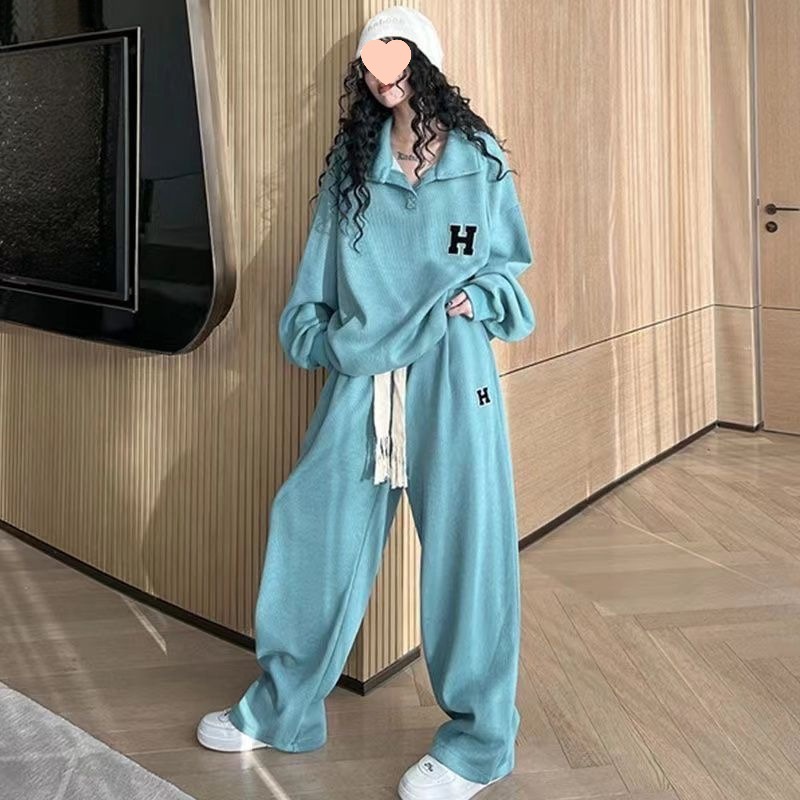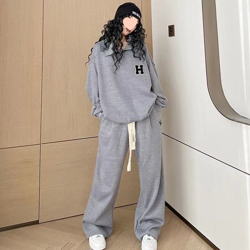 Повседневный спортивный костюм Fat-Jin для женщин ранней весны, тонкий, свободный, толстовка большого размера + широкие брюки, комплект из двух предметов, модный и бесплатная доставка