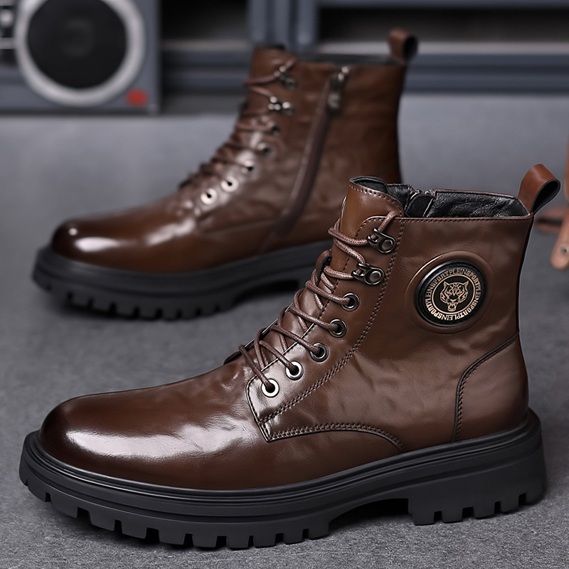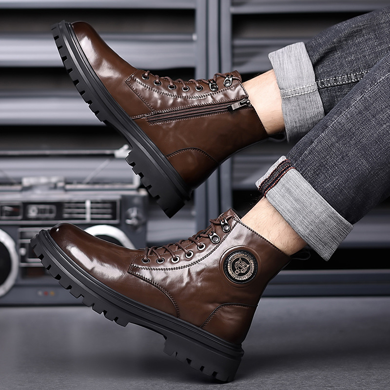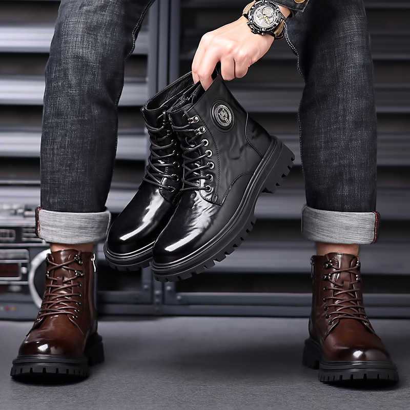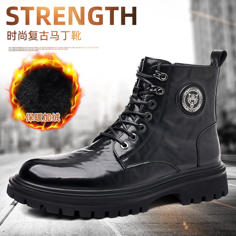Модные осенне-зимние мужские ботинки в стиле кэжуал, высокие, на хлопковой подкладке для тепла.
