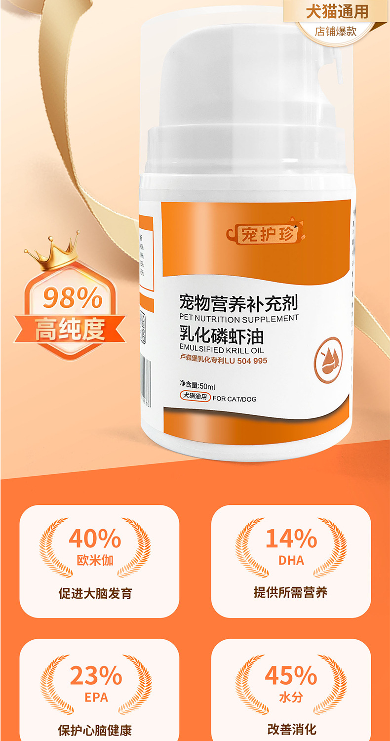 Масло криля для собак и кошек, красота и защита волос, против выпадения волос, астаксантин, лецитин, эмульгированная крильная рыба для домашних животных.