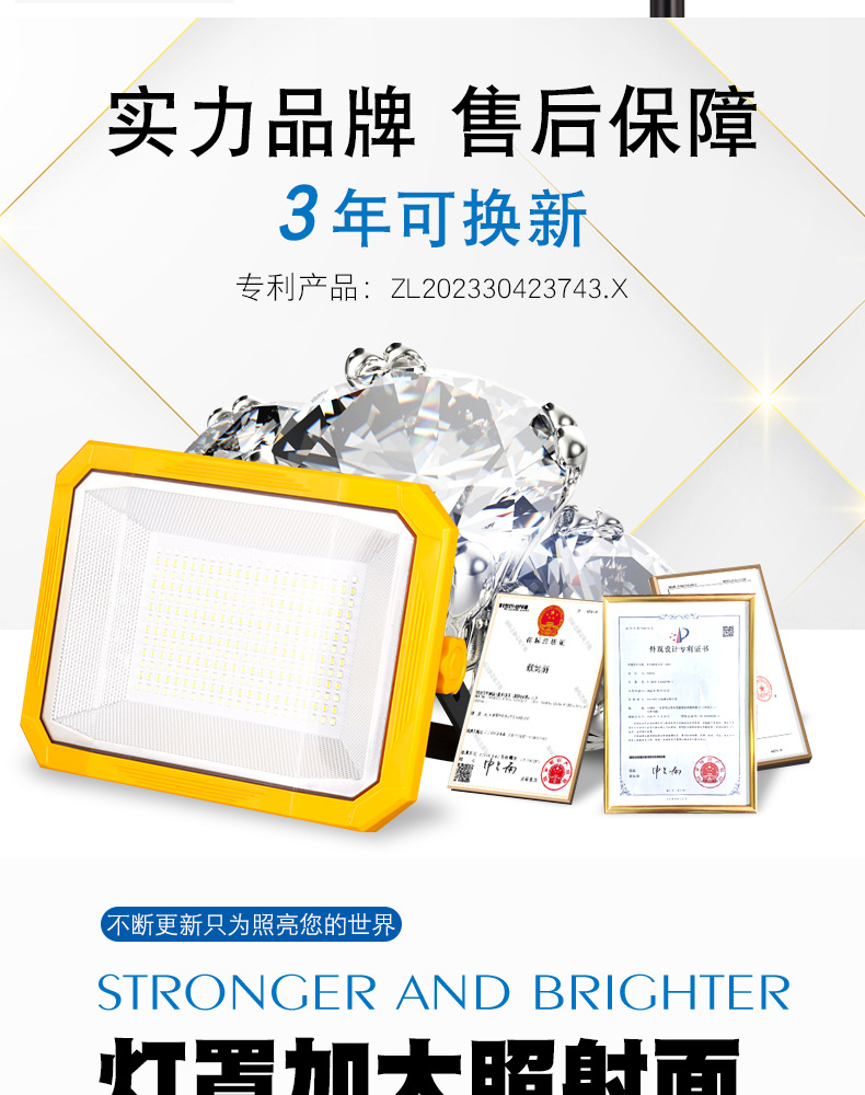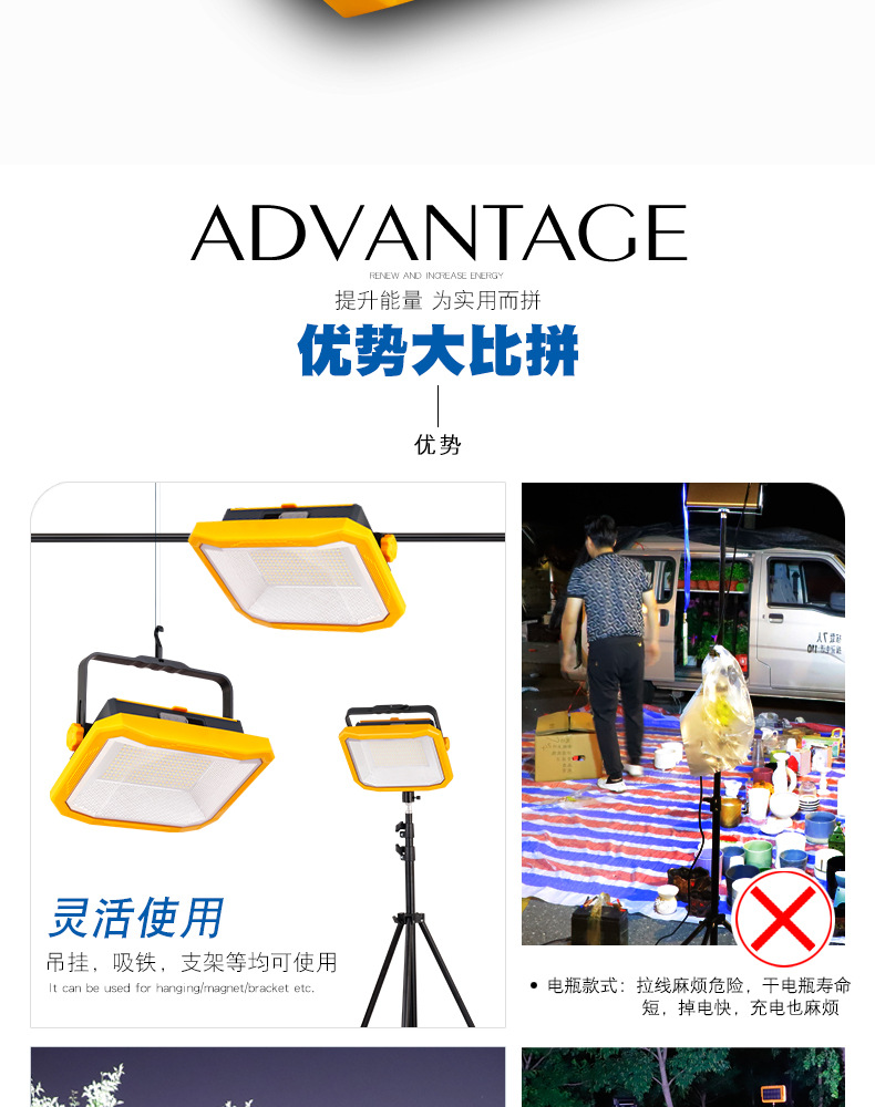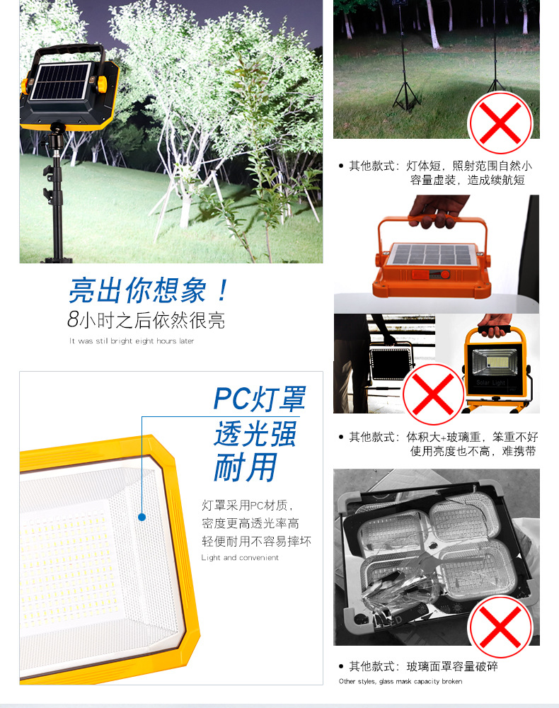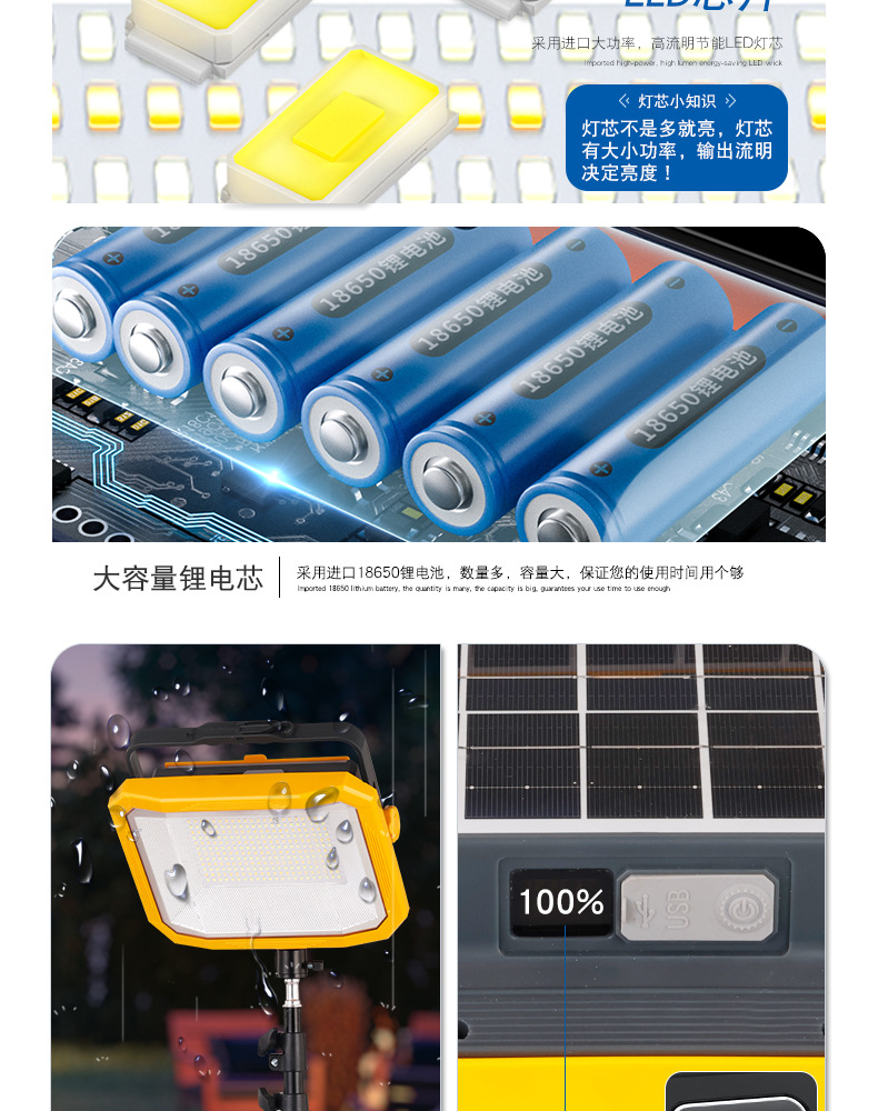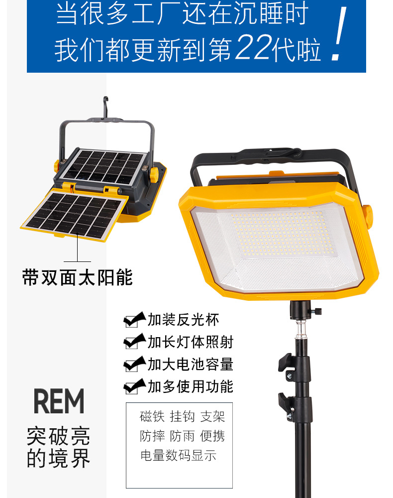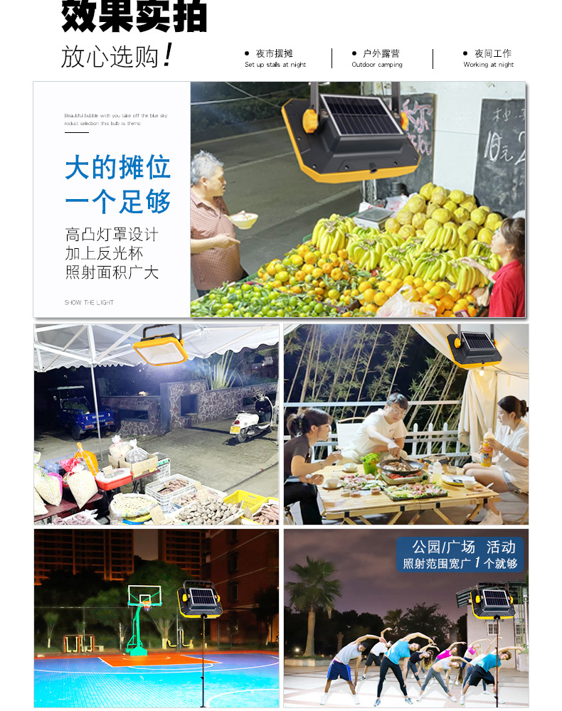 Перезаряжаемая лампа для освещения, лампа для ночного рынка, солнечная уличная лампа для кемпинга, сверхдлительное время автономной работы, съемная лампа большой емкости