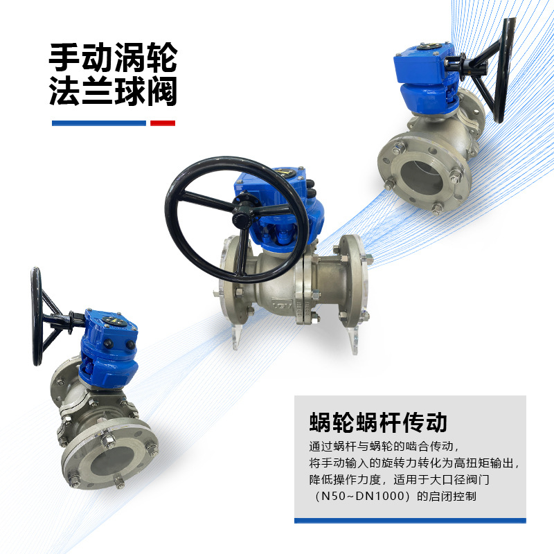 Ручной шаровой клапан с червячной передачей и фланцем, маховик WCB 304, привод турбины, низкий крутящий момент, устойчивость к температуре и давлению