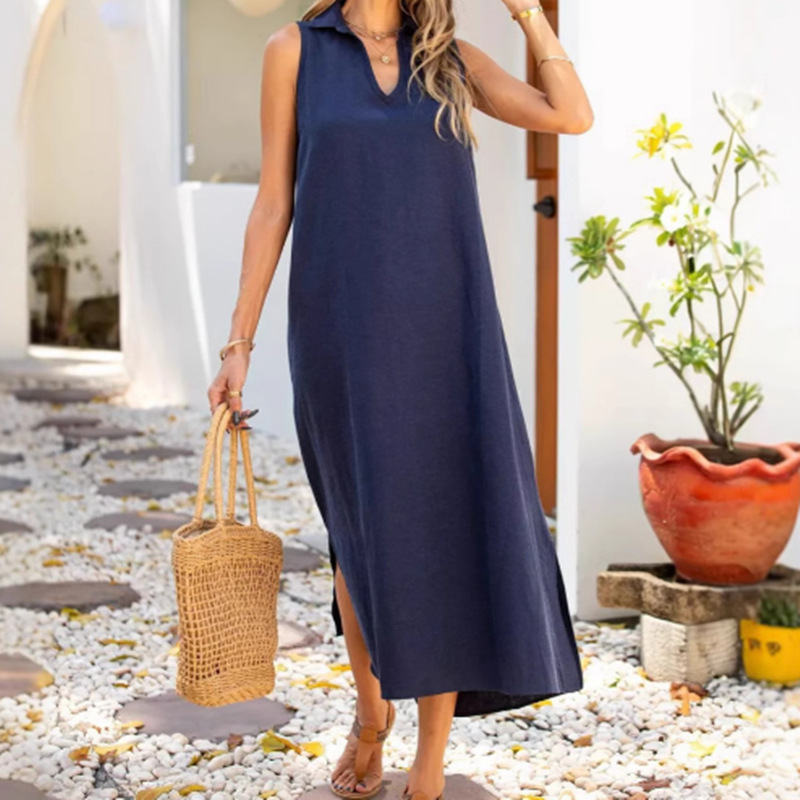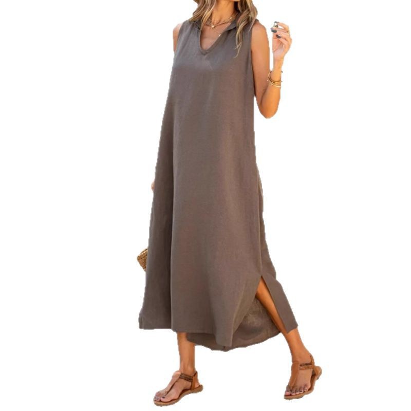 2025 новое весенне-летнее европейское и американское женское платье с v-образным вырезом, свободное повседневное женское платье без рукавов, независимая станция Amazon
