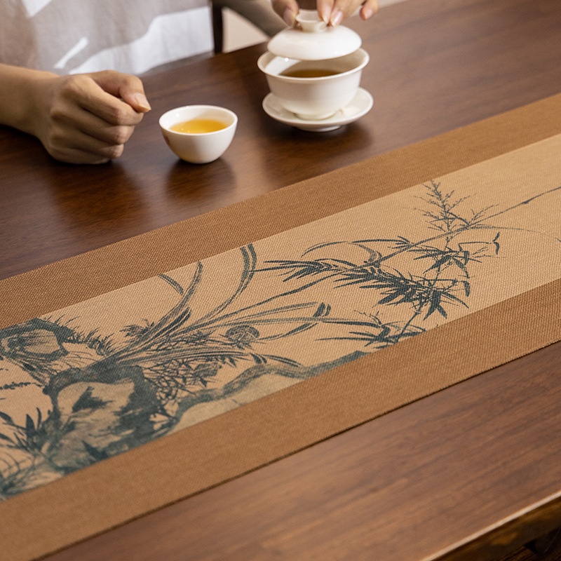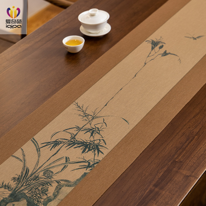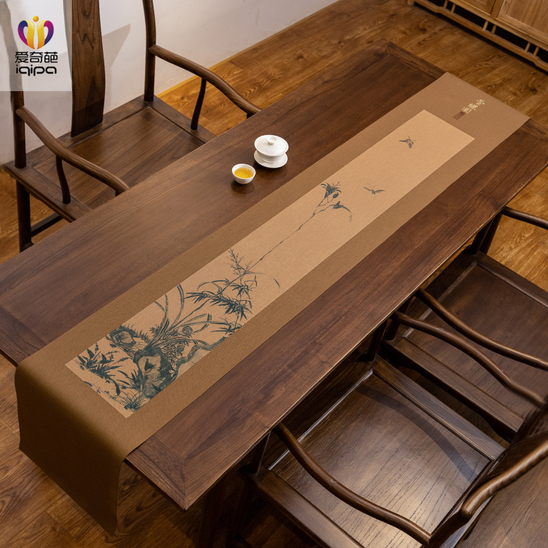 Новый настольный флаг в китайском стиле дзен с пейзажной живописью, водонепроницаемая легкая роскошная скатерть, чайный коврик