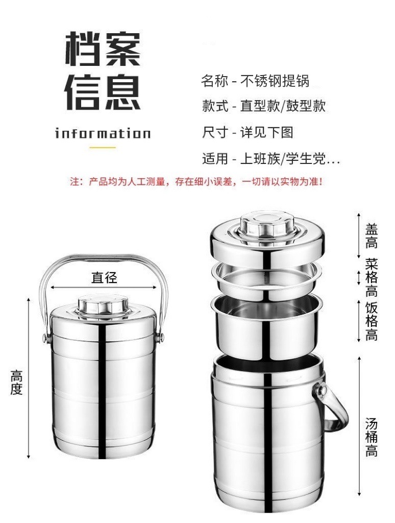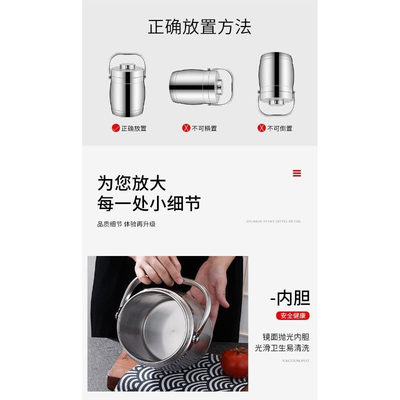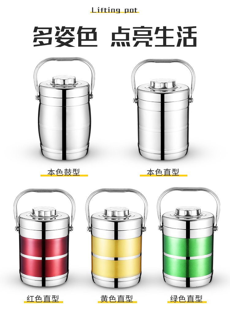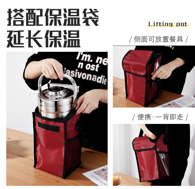 Изолированный ланч-бокс из нержавеющей стали, изолированный ведро для ресторана, отеля, большой вместительный ланч-бокс для взрослых, 3-слойный вакуумный горшок, ведро для риса