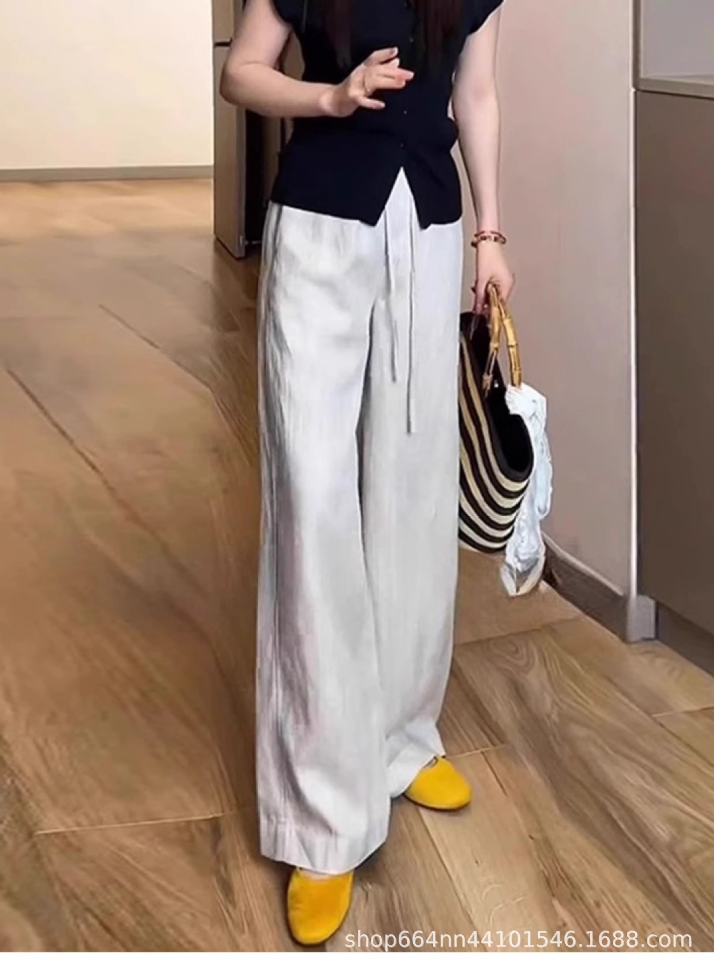 Новый стильный и повседневный женский костюм на лето 2025 года, с завышенной талией, стройнящий, универсальный комплект из двух предметов, модный и увеличивающий рост для женщин небольшого роста.