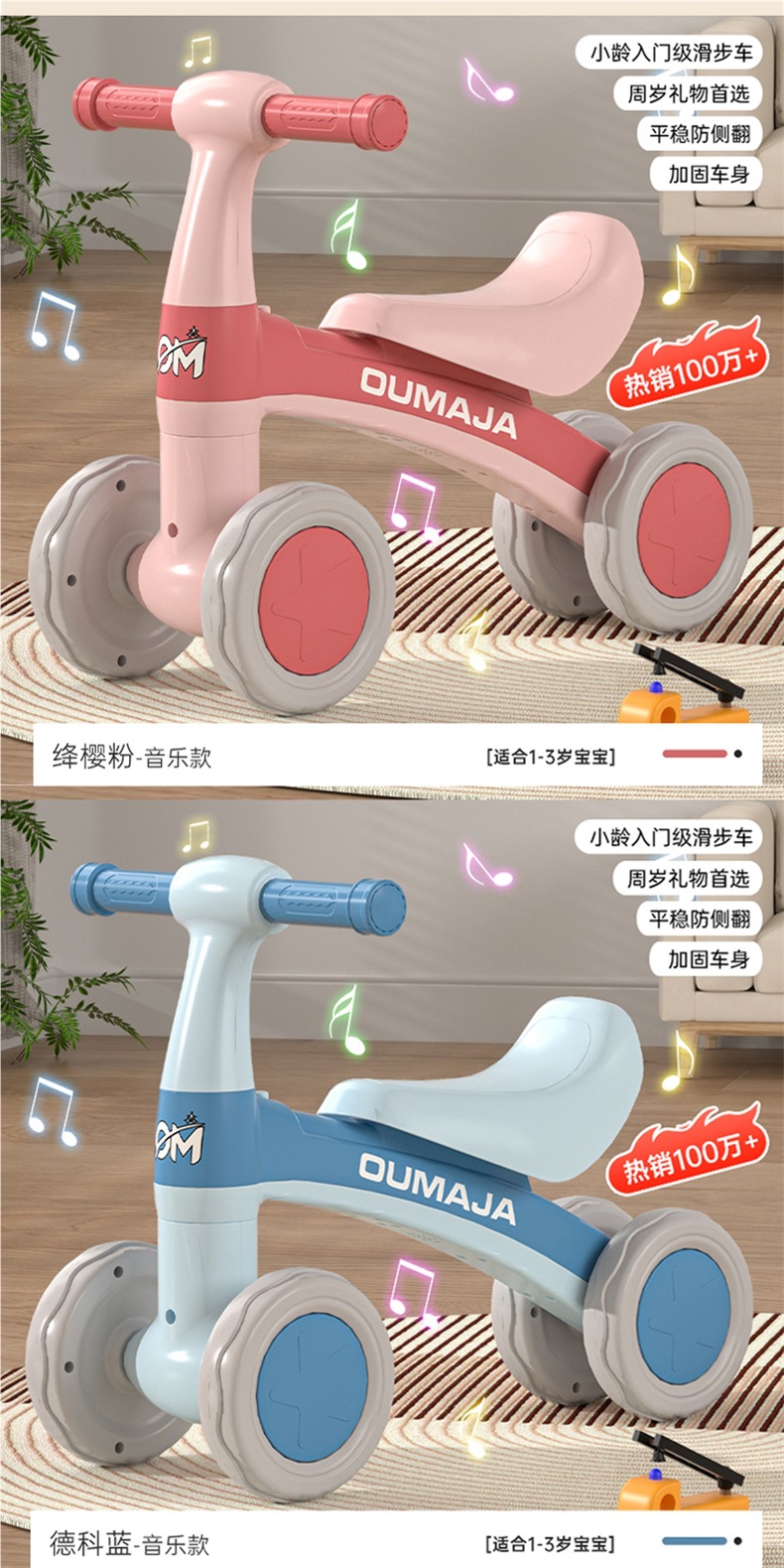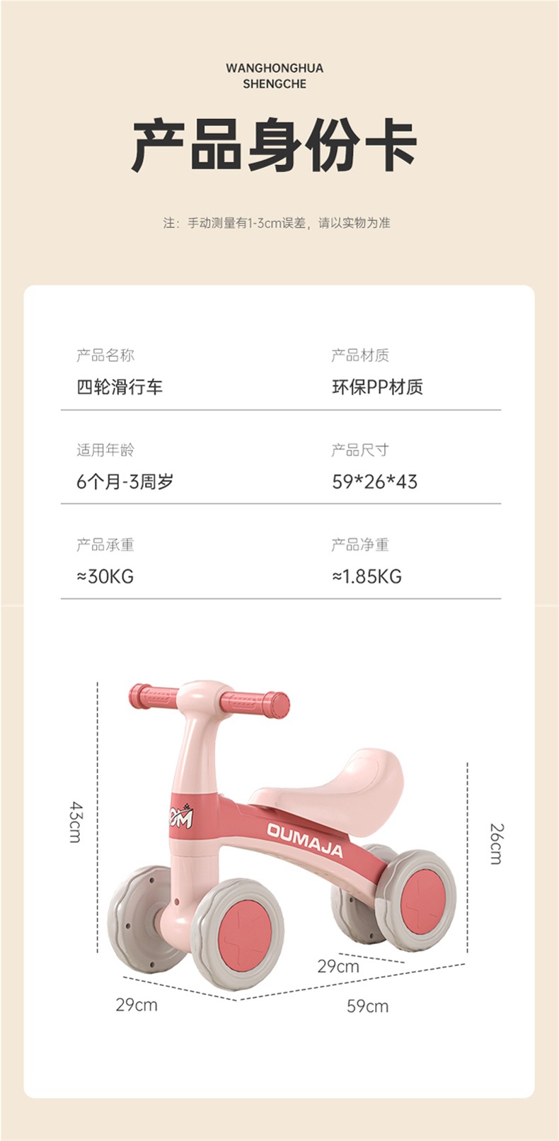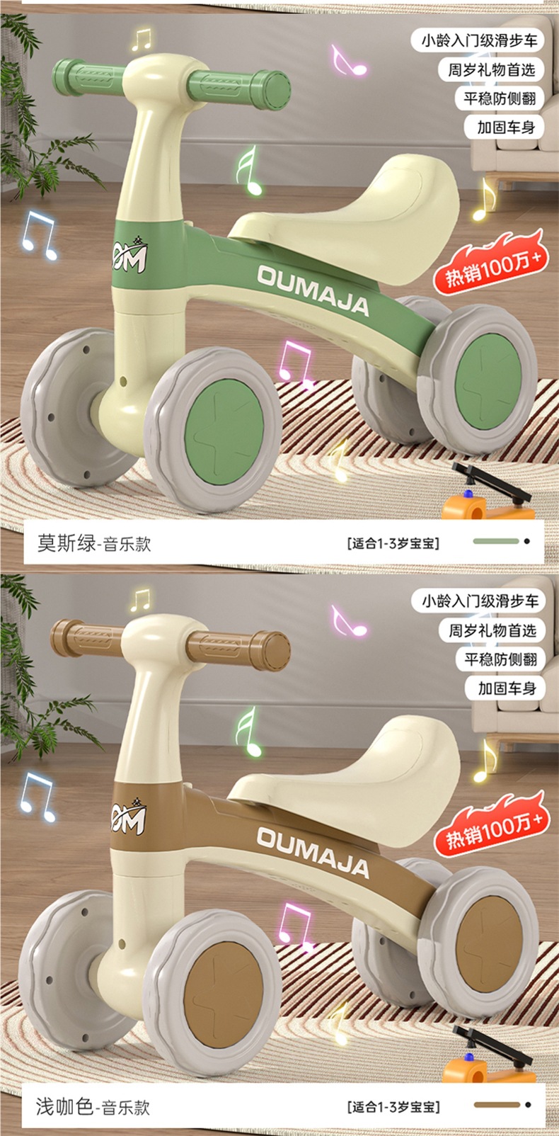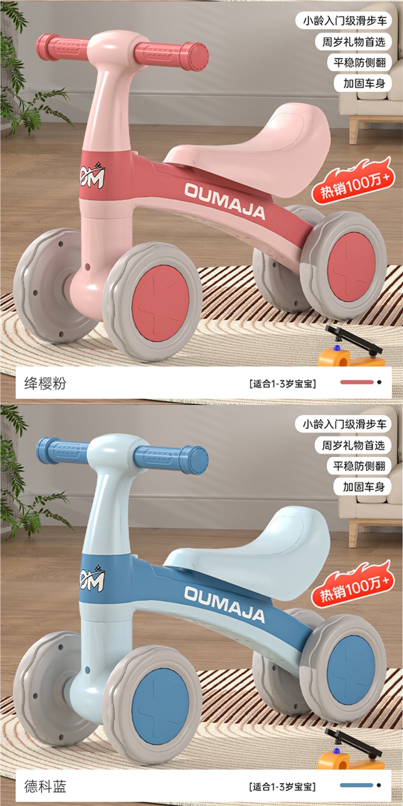 Детский балансировочный велосипед для детей 1-3 лет без педалей, ходунки-самокат, четырехколесная игрушечная машинка, можно сидеть на коляске