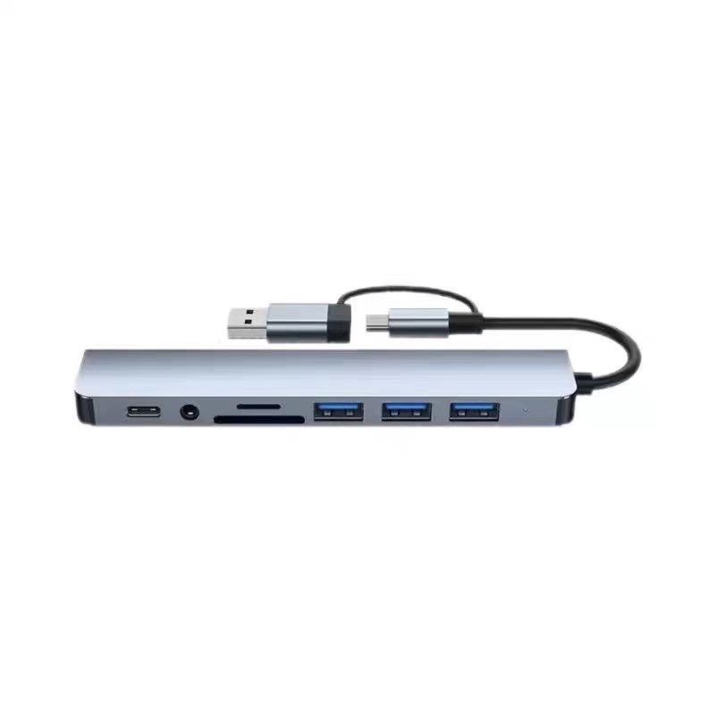 Док-станция-хаб с разветвителем, USB 3.0 HUB, двусторонний, 8-в-1, многофункциональный кардридер