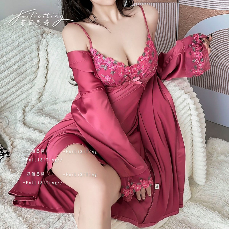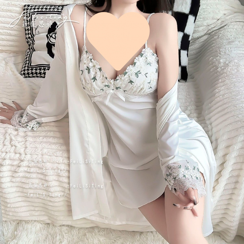Новая летняя сексуальная тонкая ночная рубашка из ледяного шелка с нагрудной подушечкой, домашняя одежда, кружевной комплект одежды для сна, стиль чистого желания.
