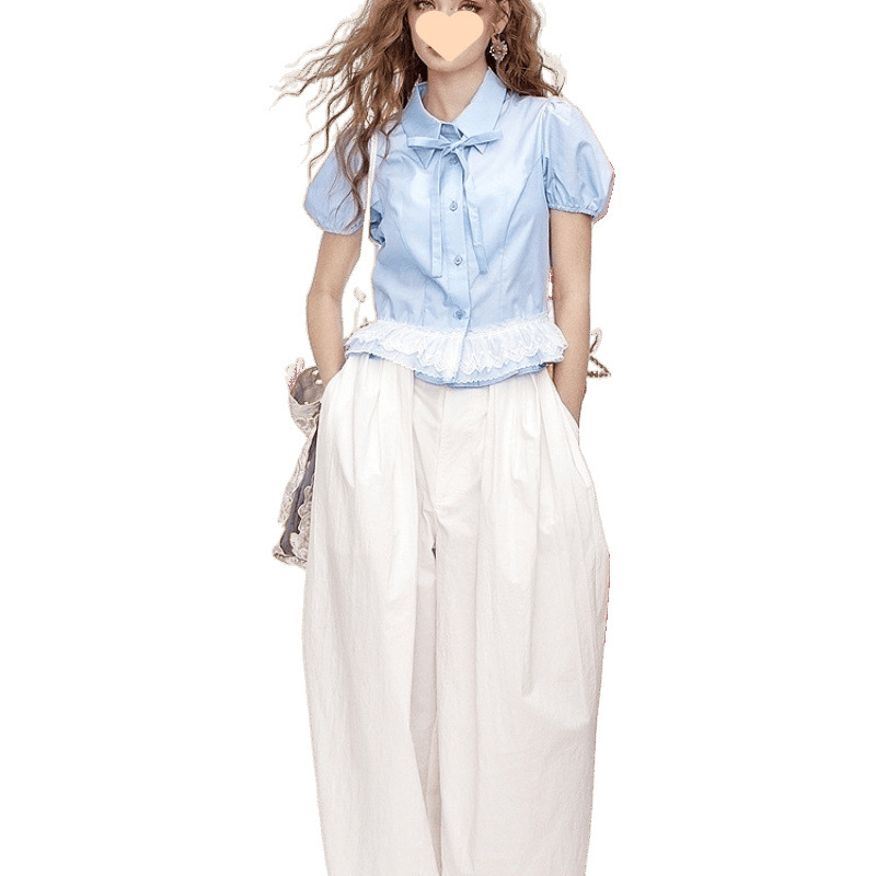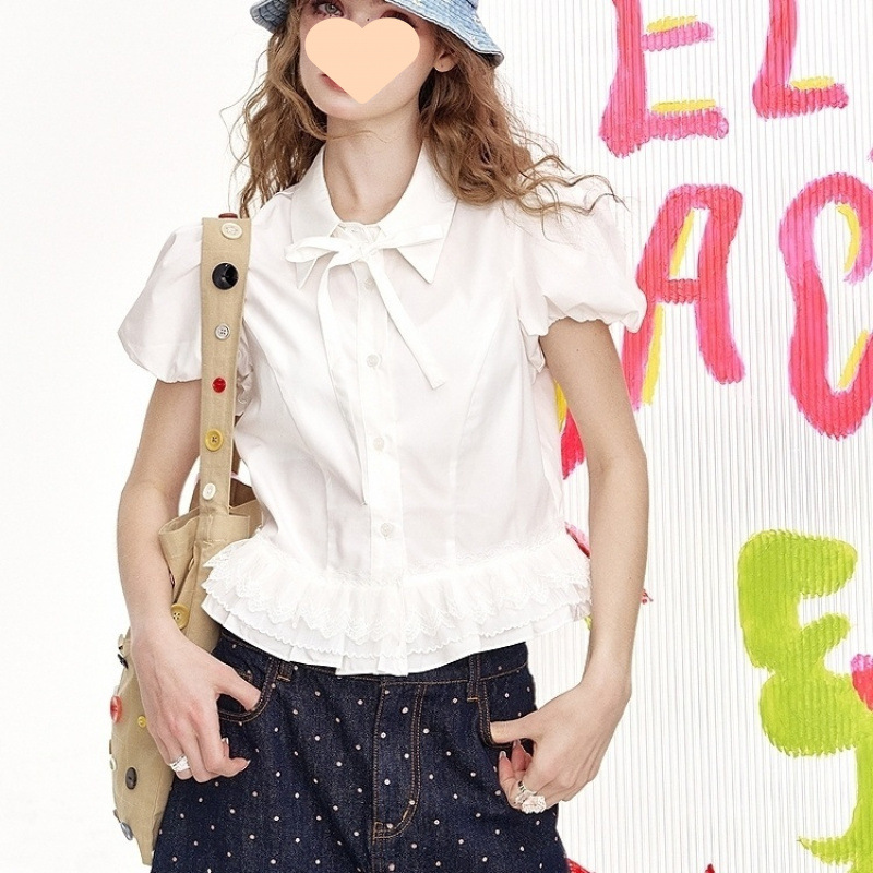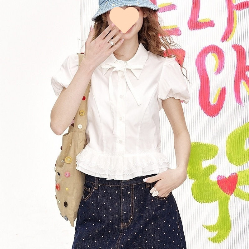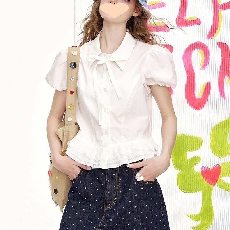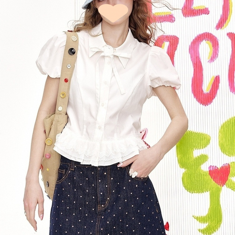 Популярная женская рубашка с короткими рукавами и пышными рукавами Fairy, новинка лета 2025, милый топ для пригородных поездок