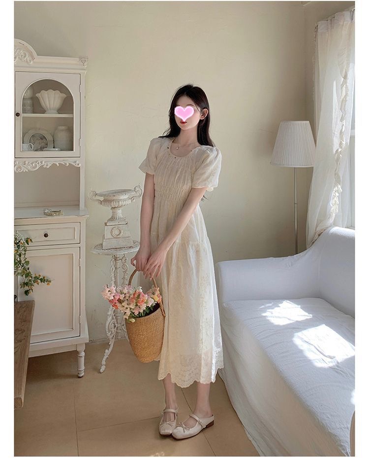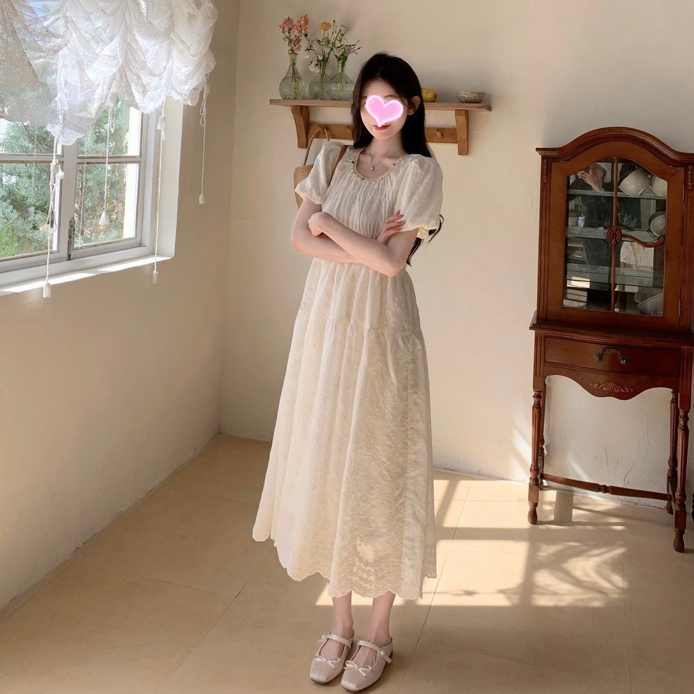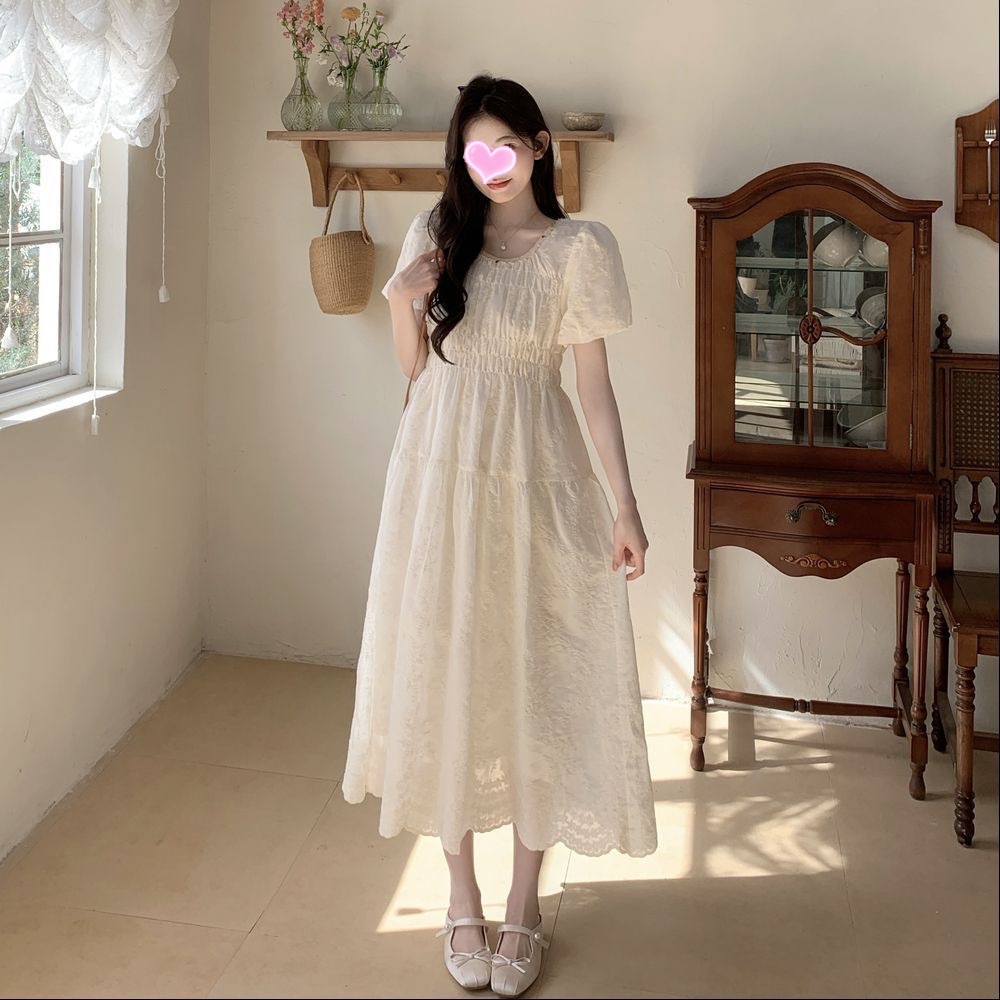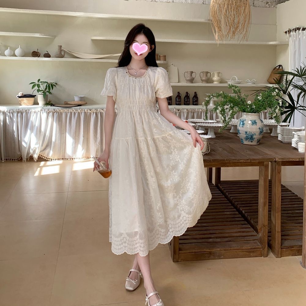 2025 новое летнее свободное платье с короткими рукавами для женщин, свежая юбка средней длины с инкрустацией бриллиантами, юбка для похудения, милая