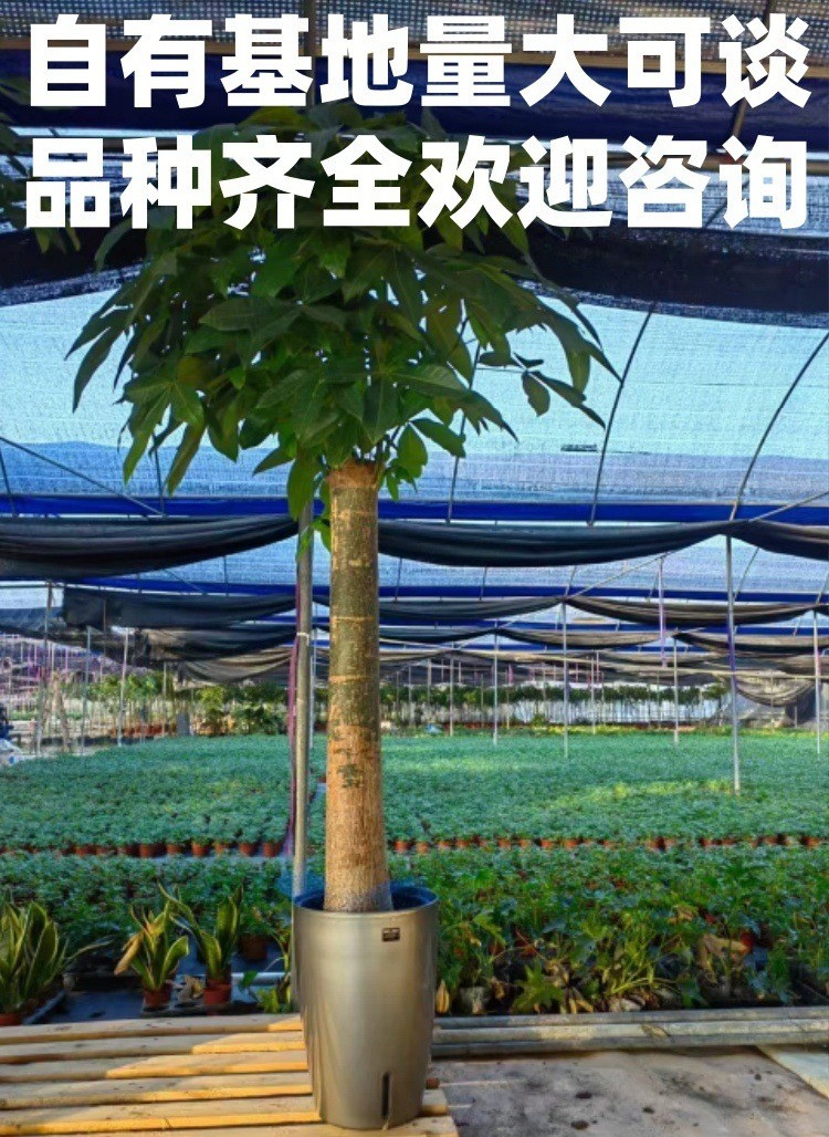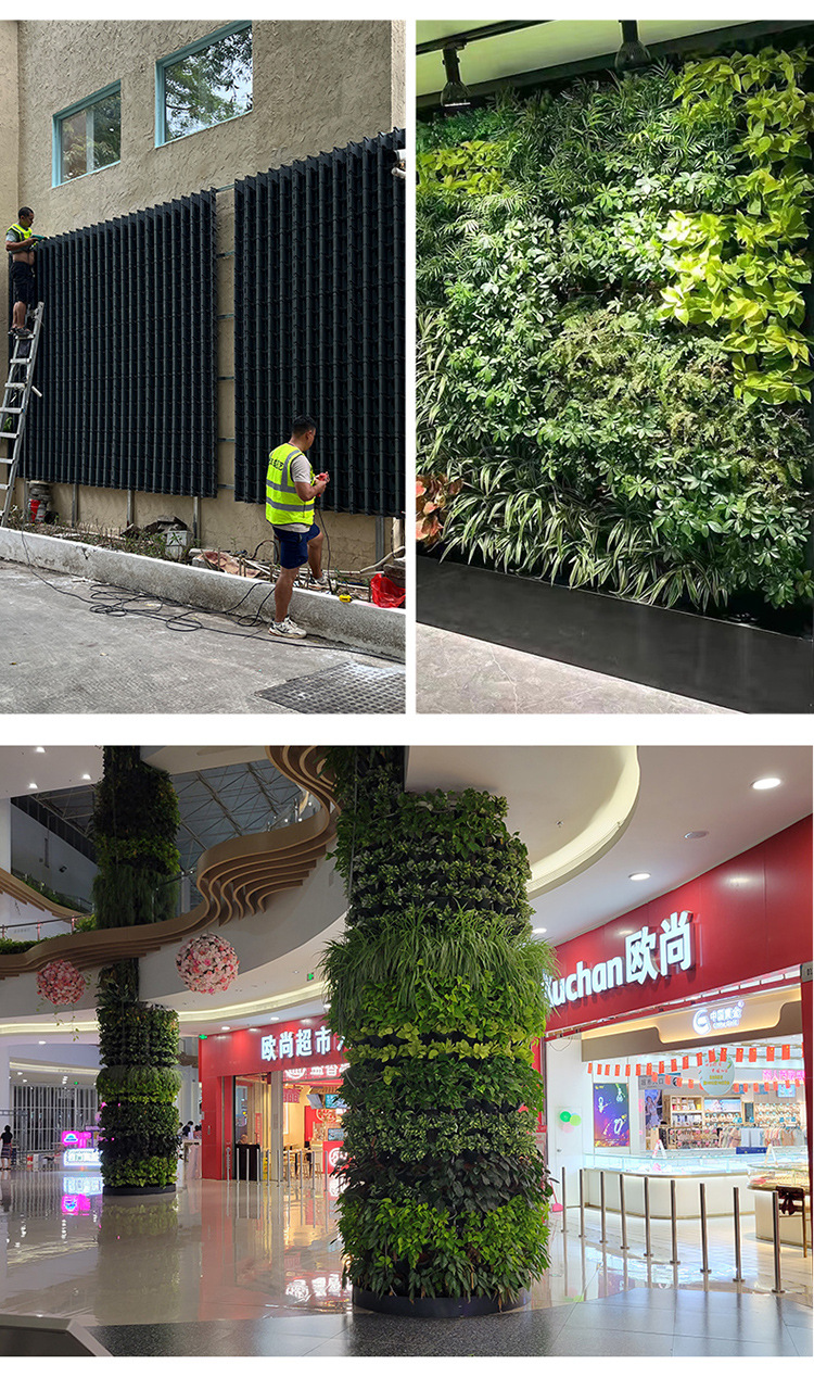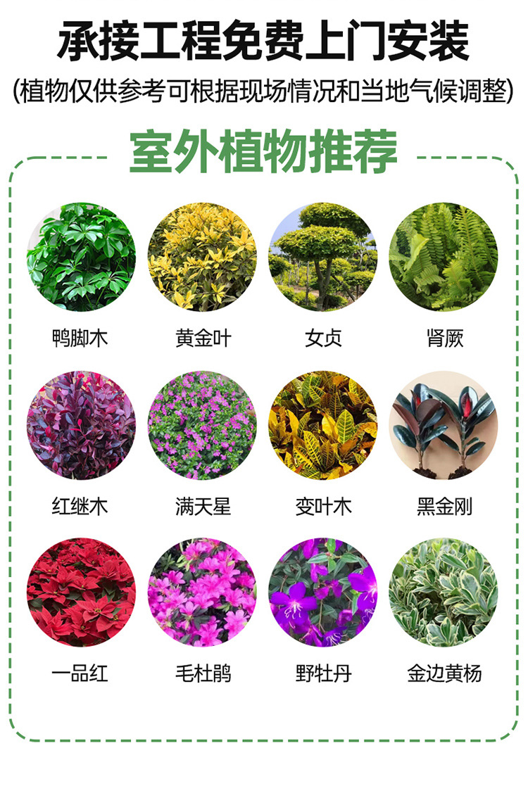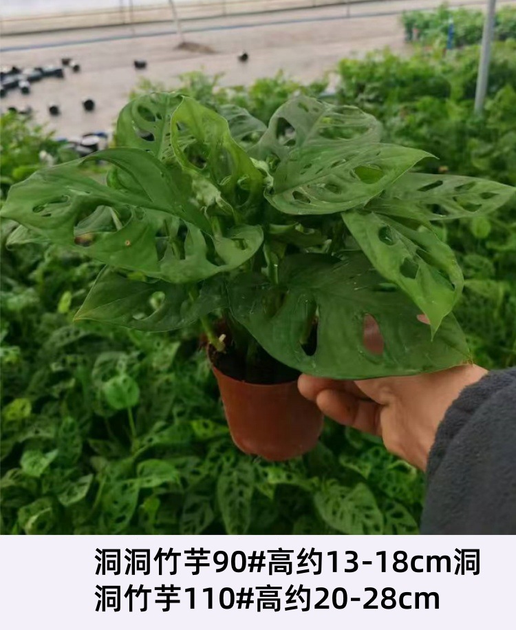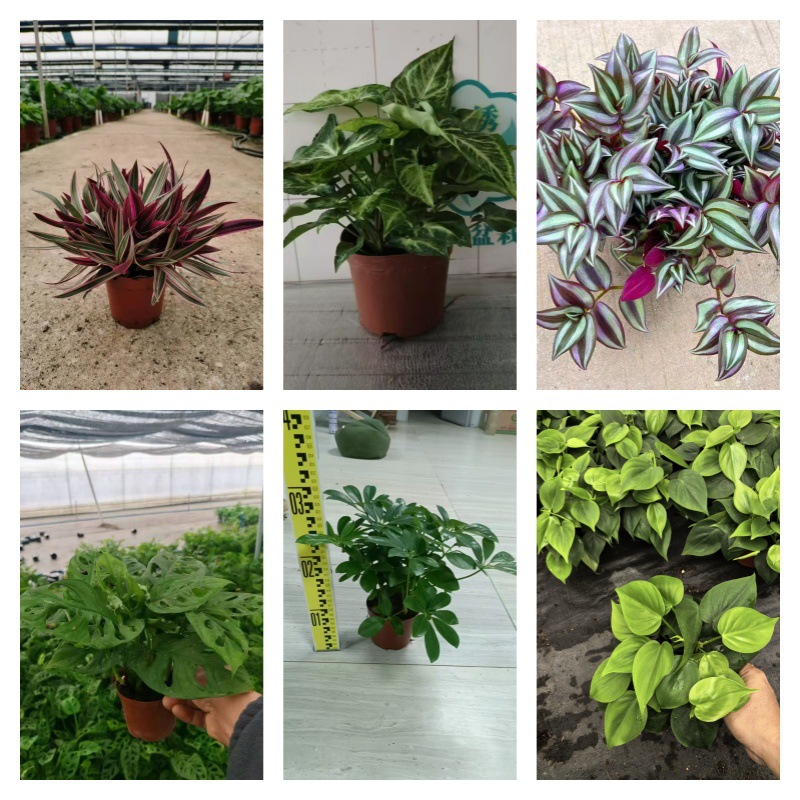 Растения в горшках: дерево «утиный лап» (бамбук), таро, зеленая редька, листовая лиана «абрикос», золотая лиана, фиолетовая орхидея, монстера, рассада для стены из растений.