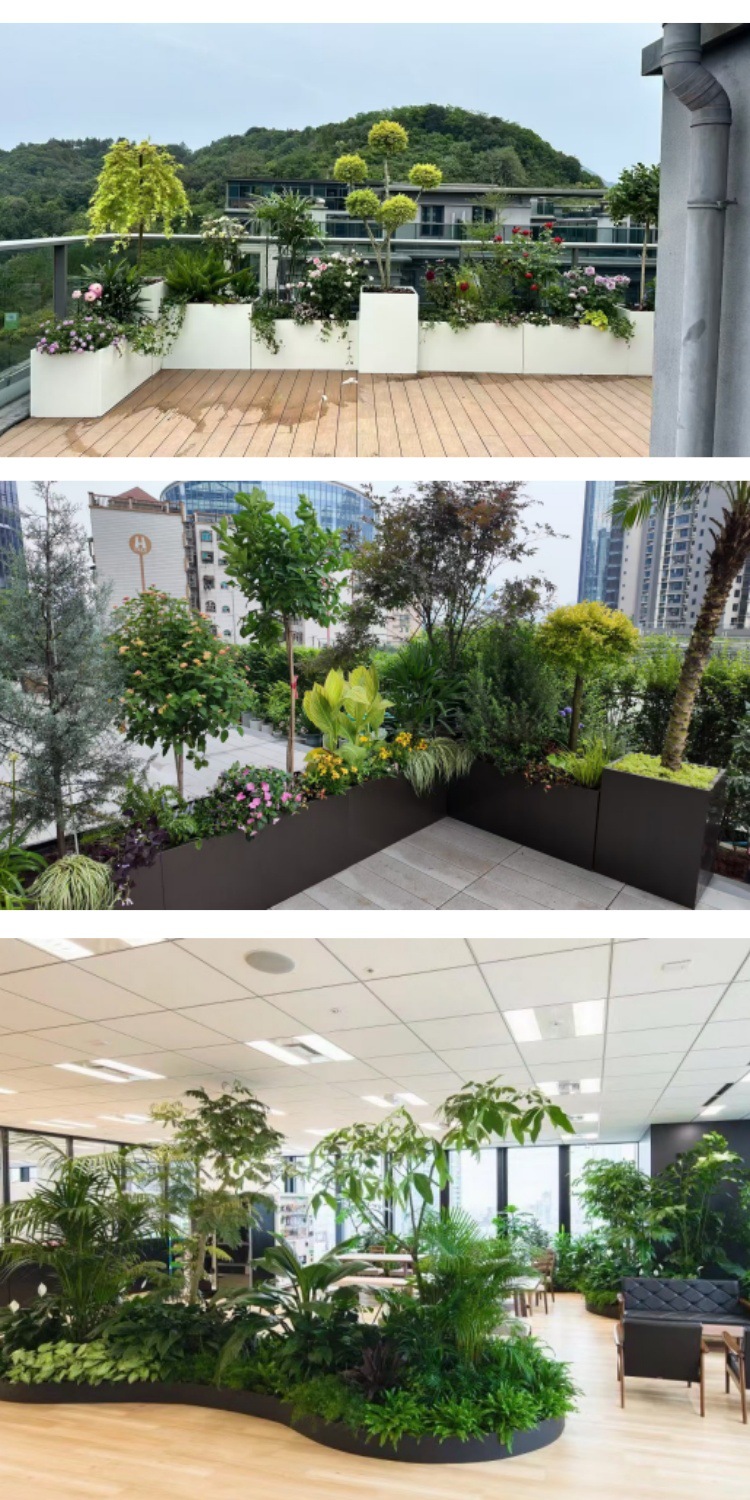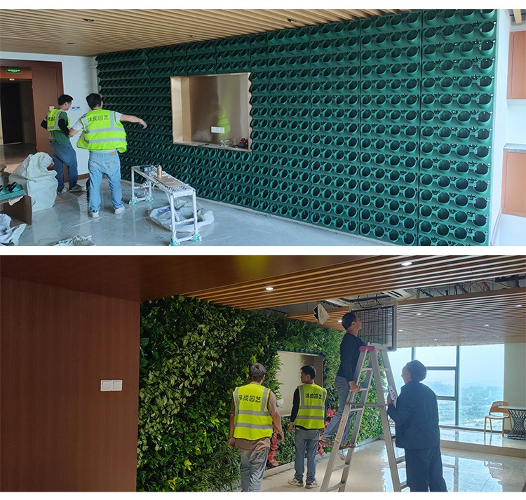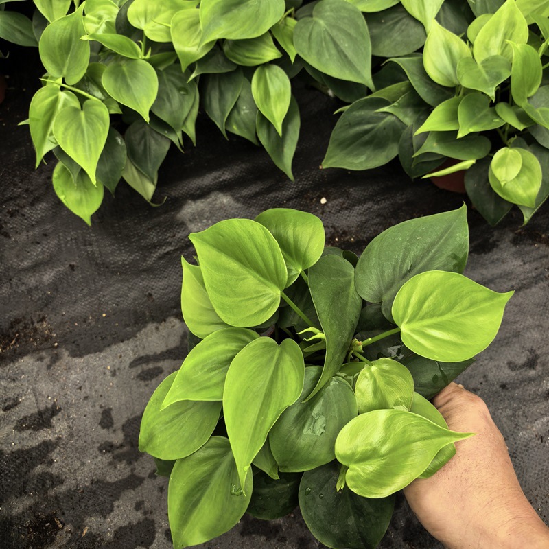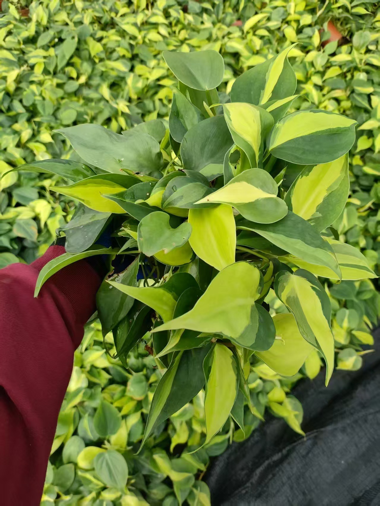Растения в горшках: дерево «утиный лап» (бамбук), таро, зеленая редька, листовая лиана «абрикос», золотая лиана, фиолетовая орхидея, монстера, рассада для стены из растений.