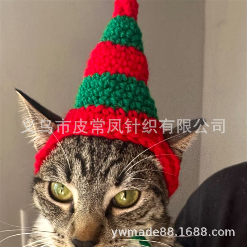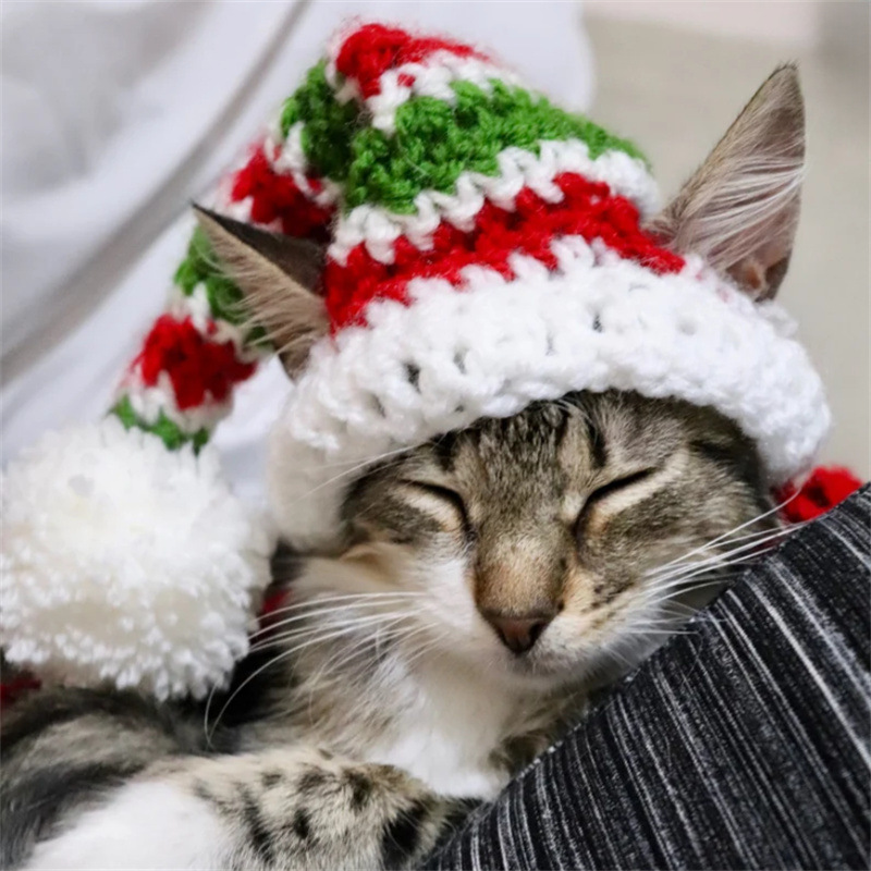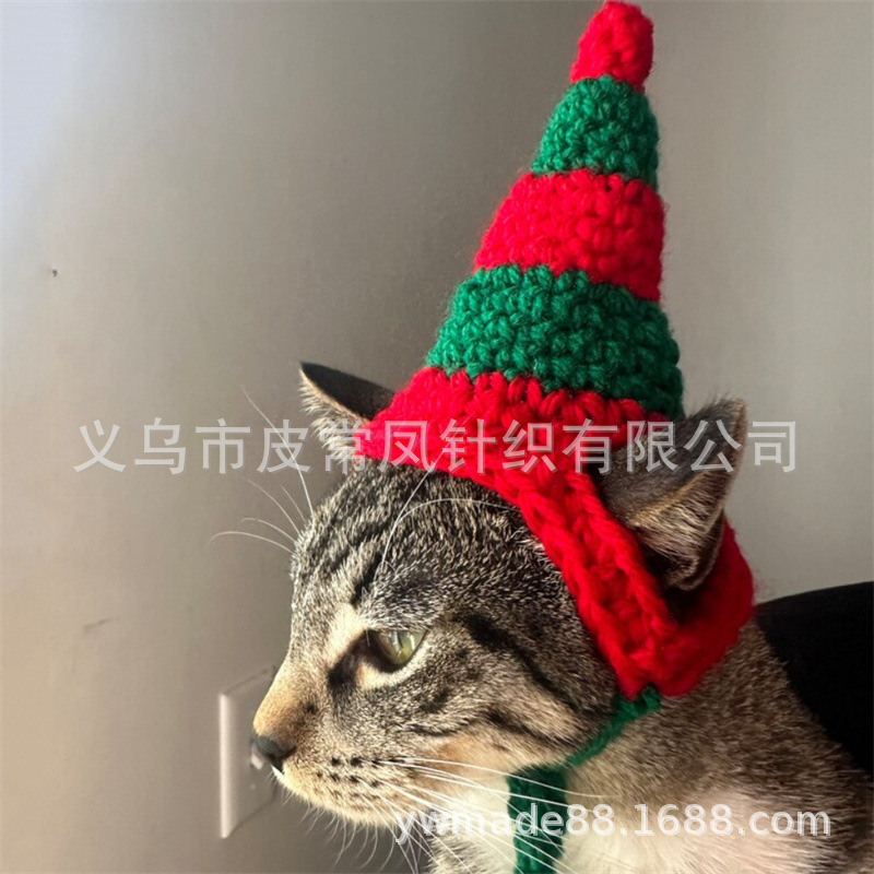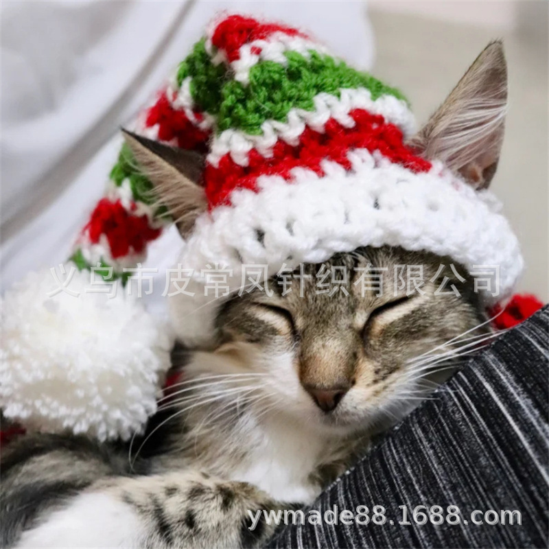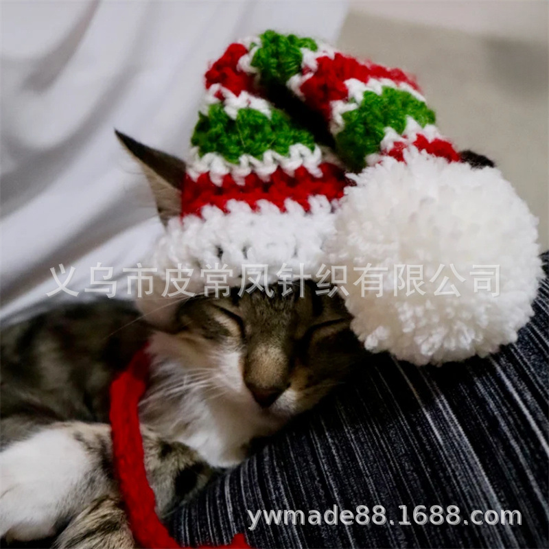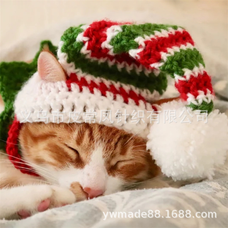 Вязаная крючком рождественская шапочка для животных, новый стиль, ручная работа, для зарубежной торговли, праздничная атмосфера, декоративная, милая.