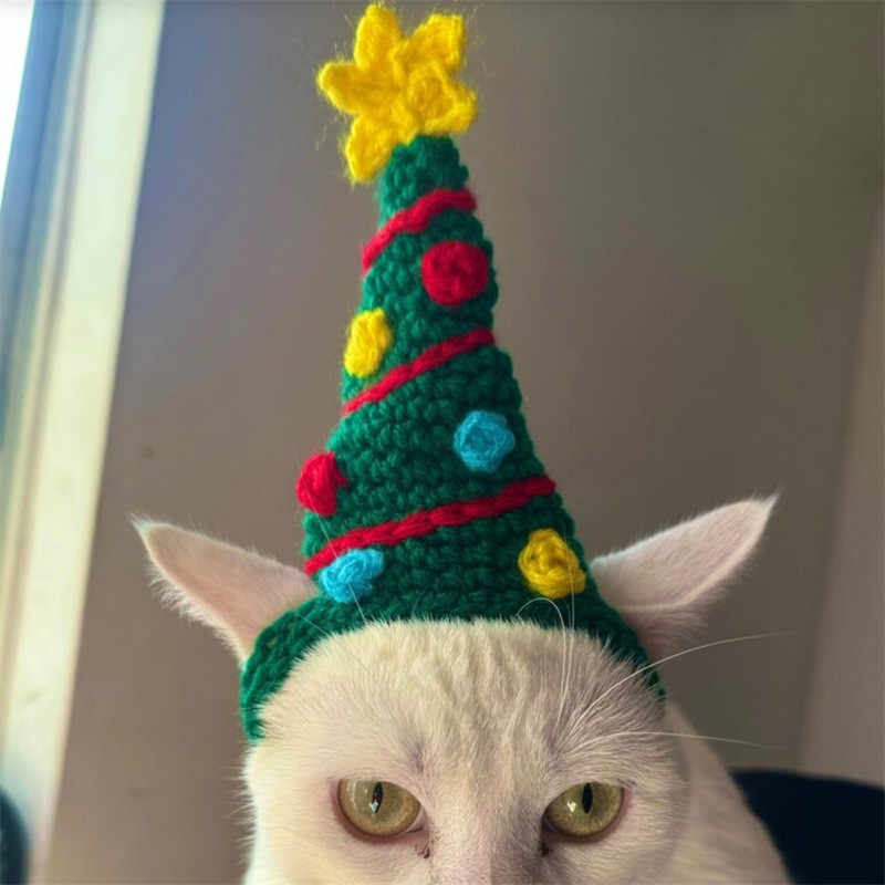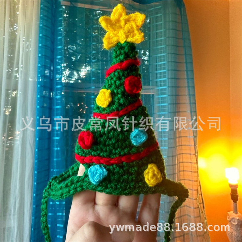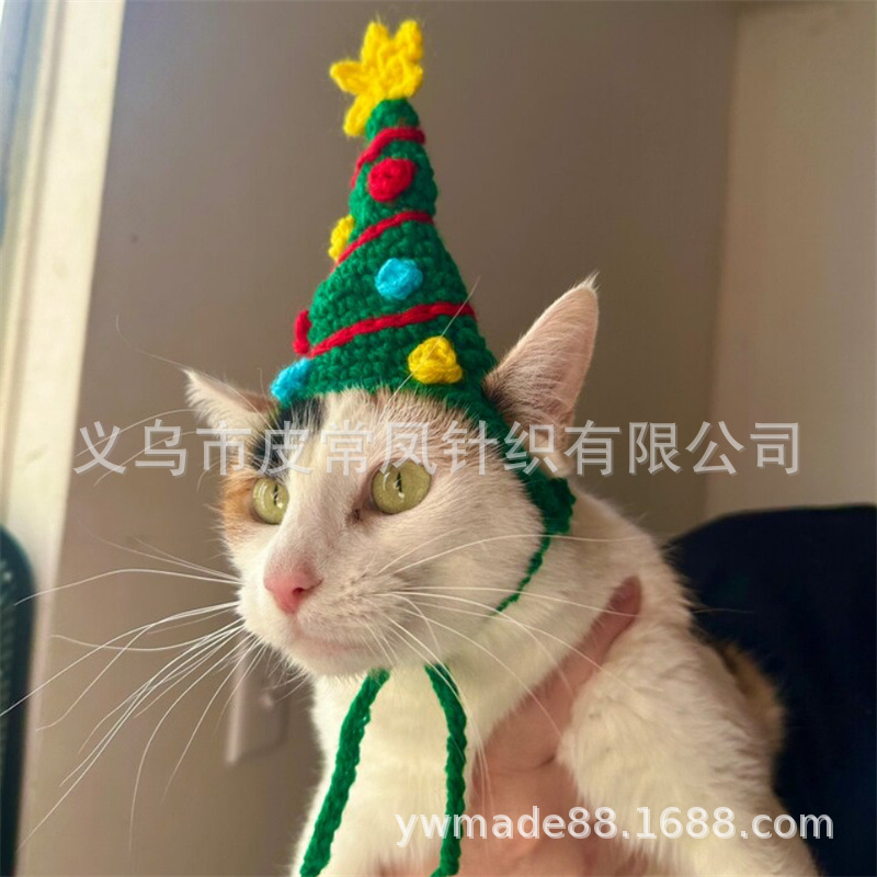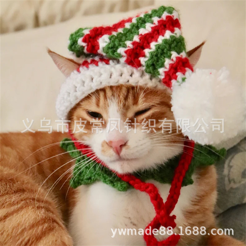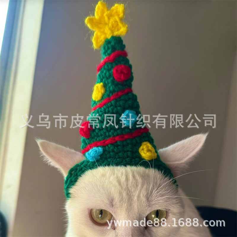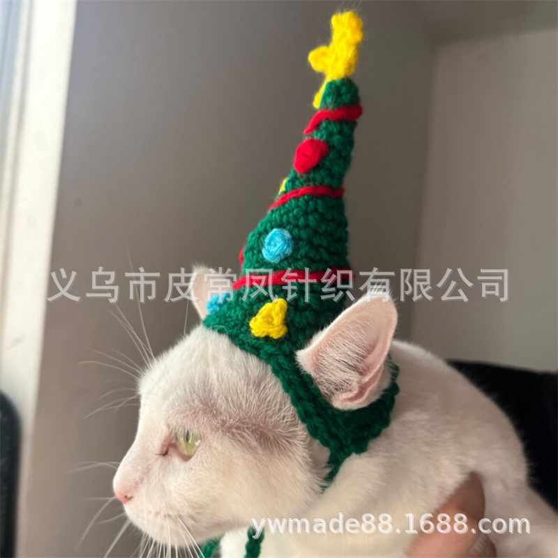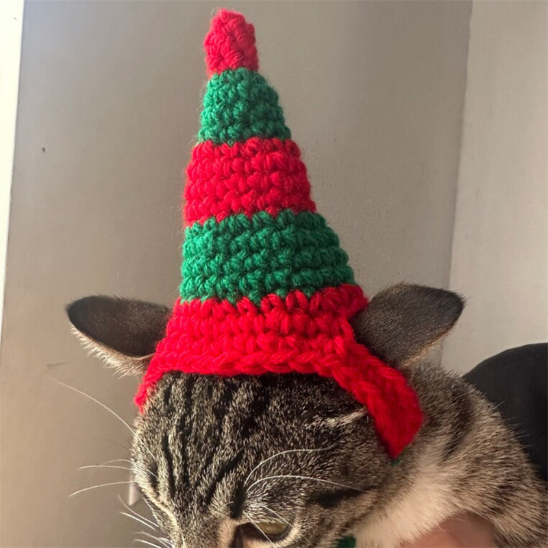 Вязаная крючком рождественская шапочка для животных, новый стиль, ручная работа, для зарубежной торговли, праздничная атмосфера, декоративная, милая.