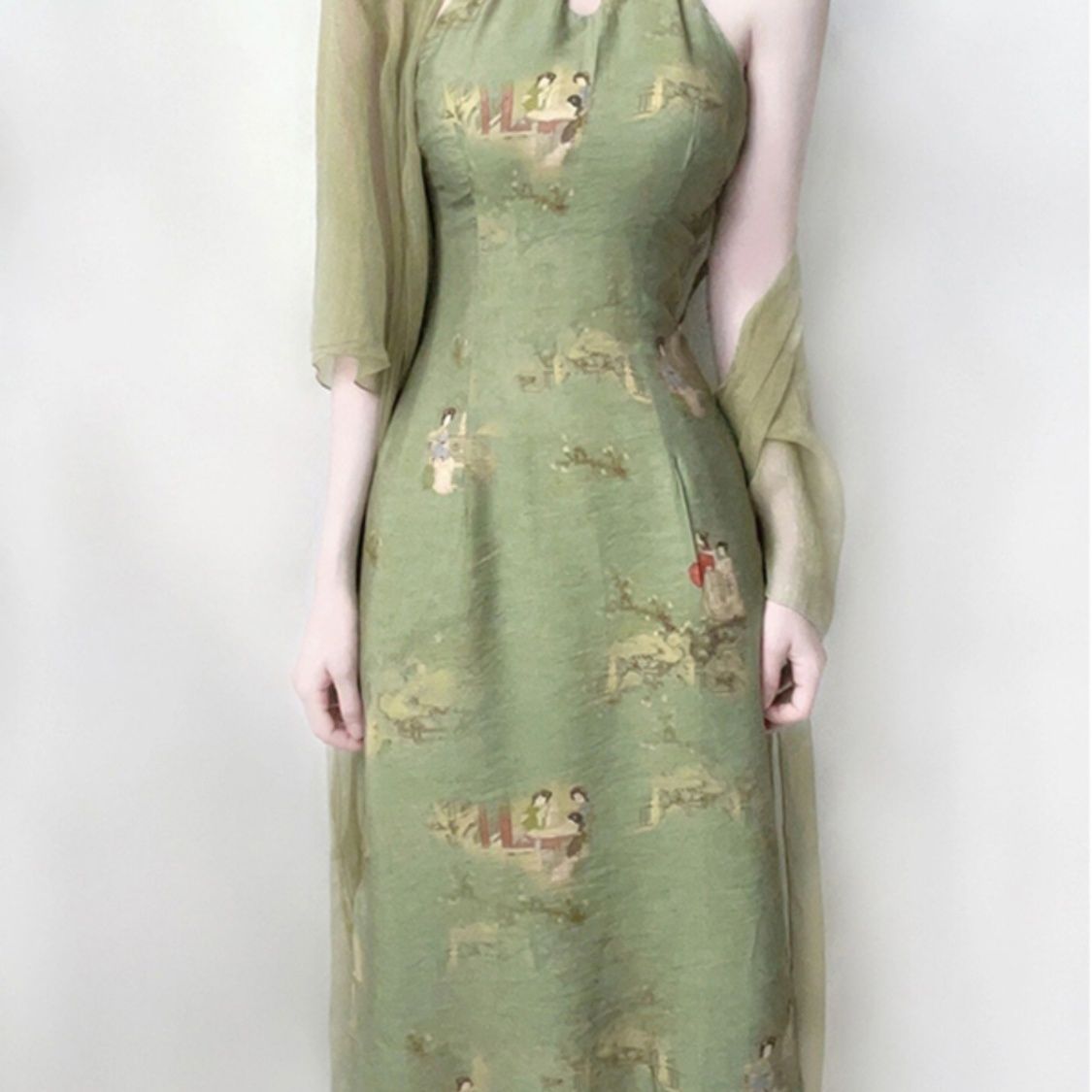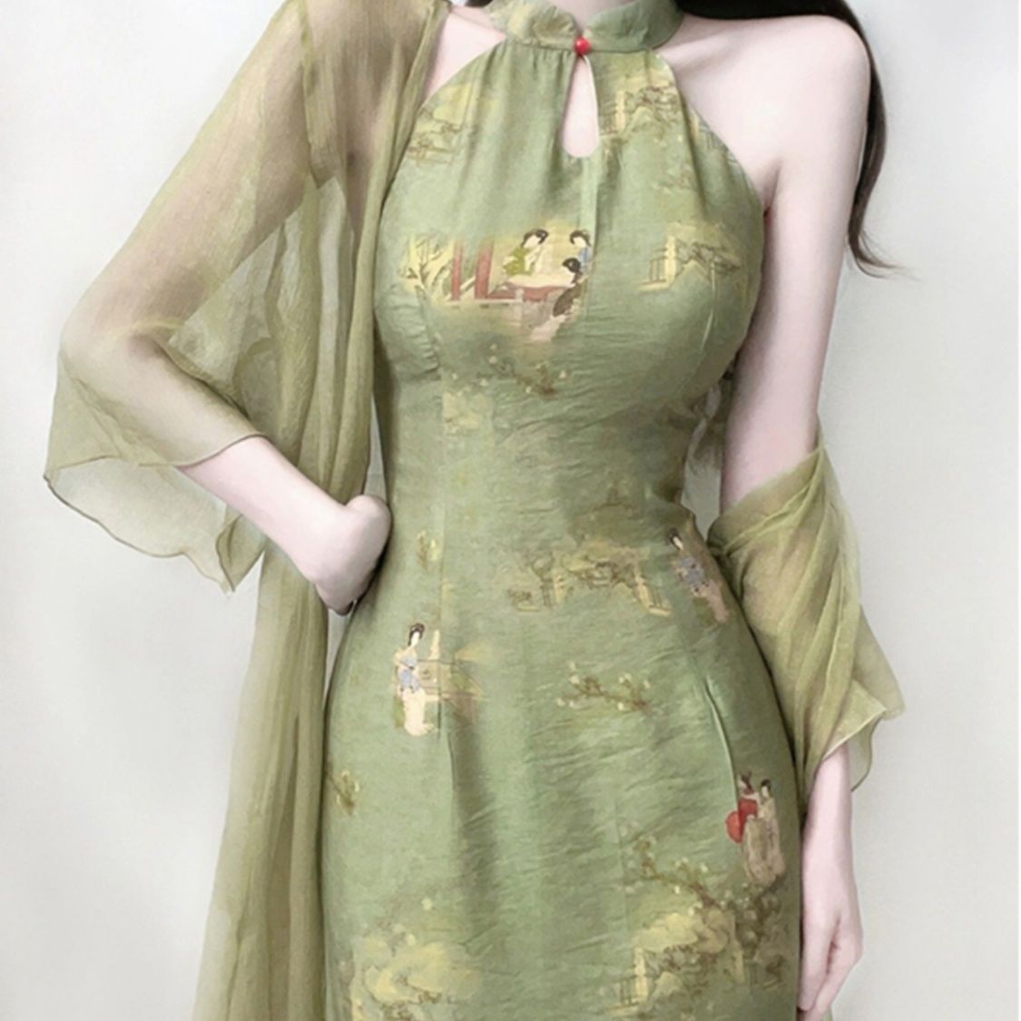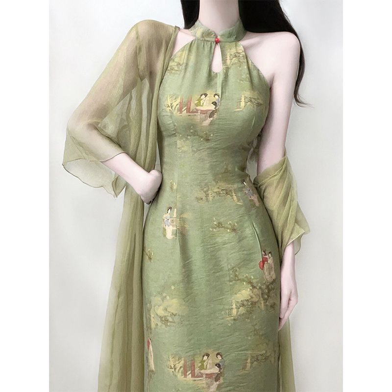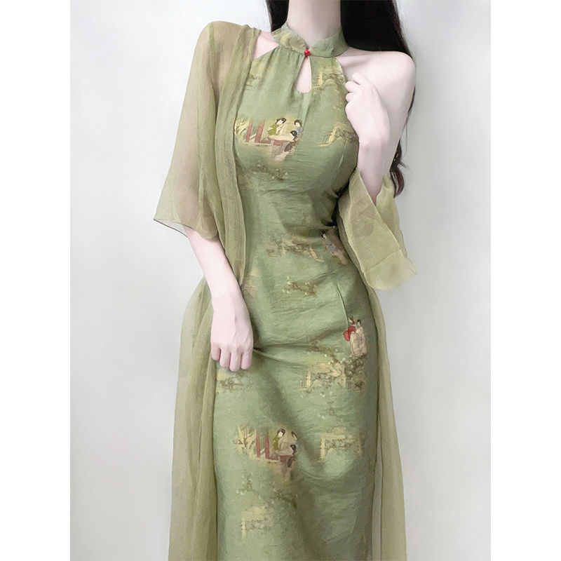 Лето 2025, новая женская одежда в китайском стиле, костюм из двух предметов в национальном стиле, улучшенное платье Cheongsam для девочек, молодежное платье с бретелькой на шее