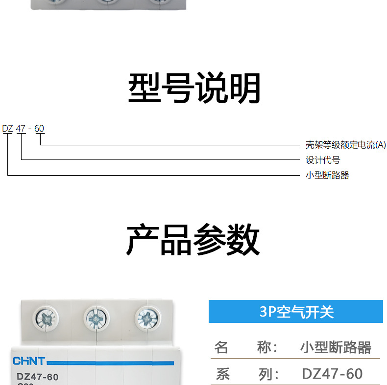 正泰DZ47-60小型断路器2p3p4p空开10A16A20A25A32A60A空气开关