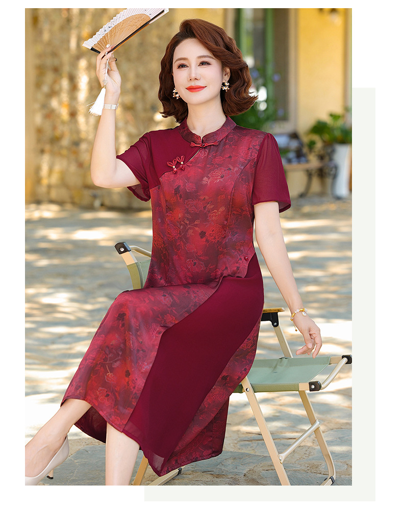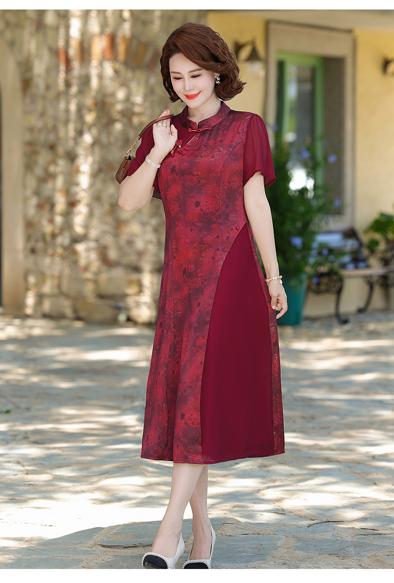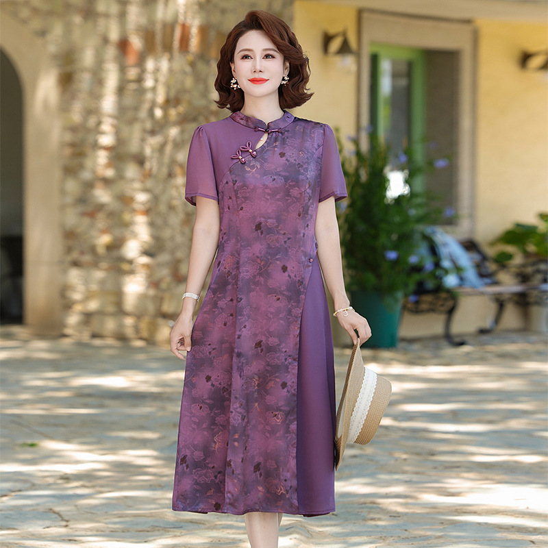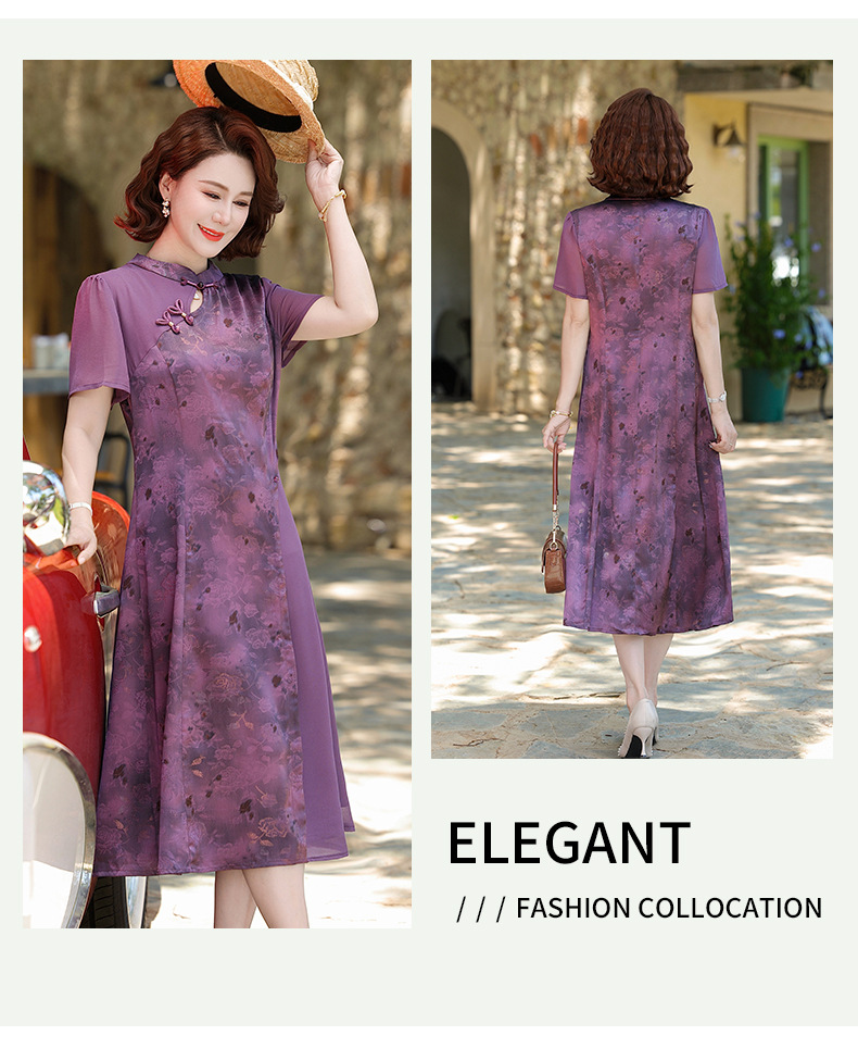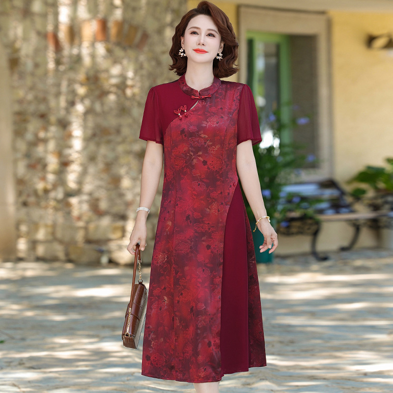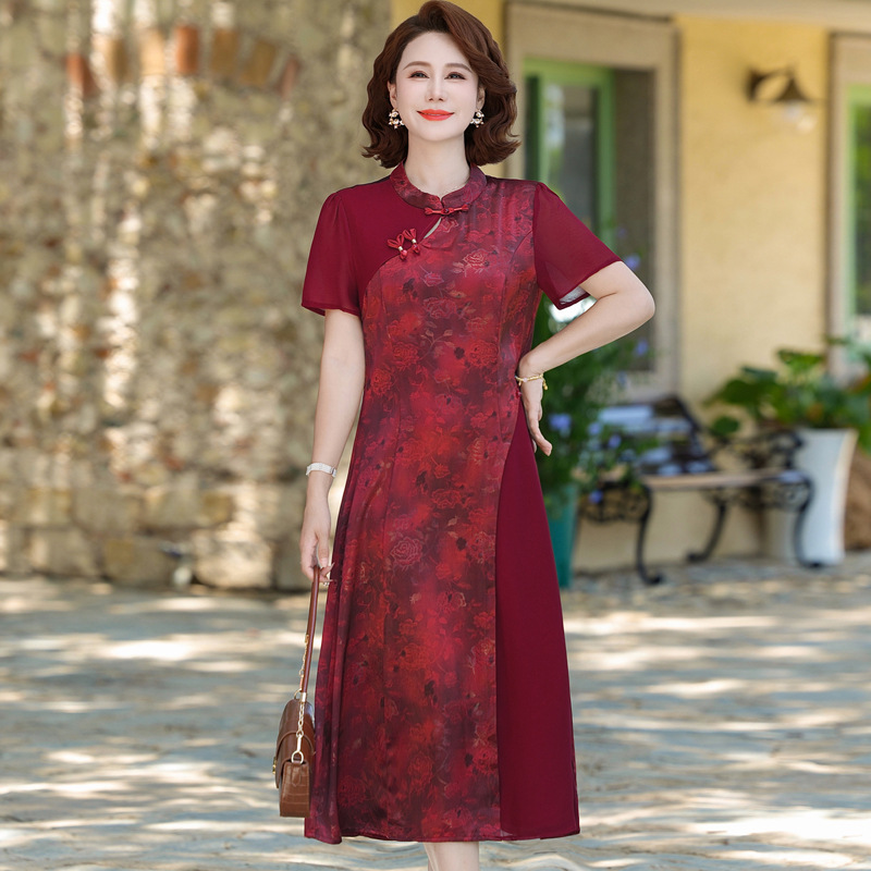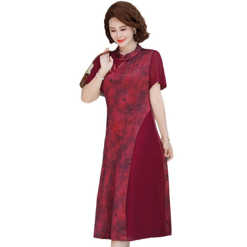 Летнее платье для мамы, модная новинка лета 2025 года, улучшенный чонсам, шифоновая юбка для женщин среднего и пожилого возраста