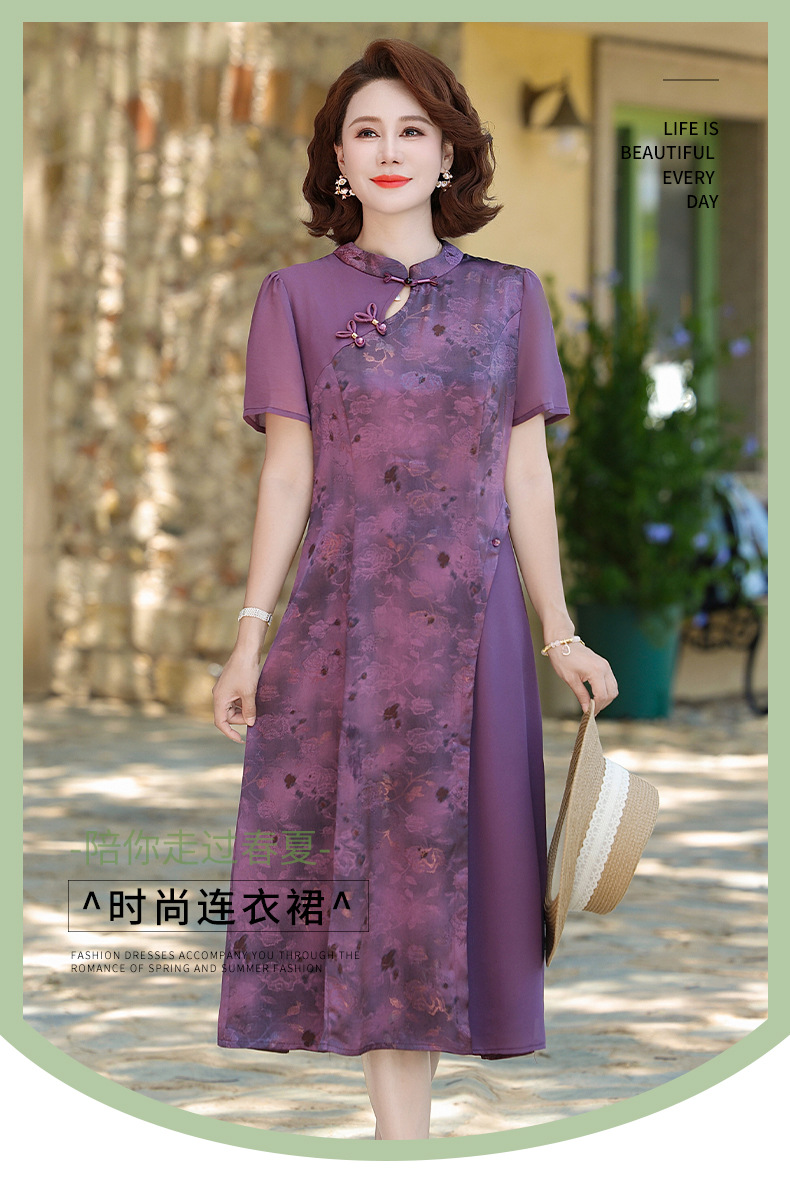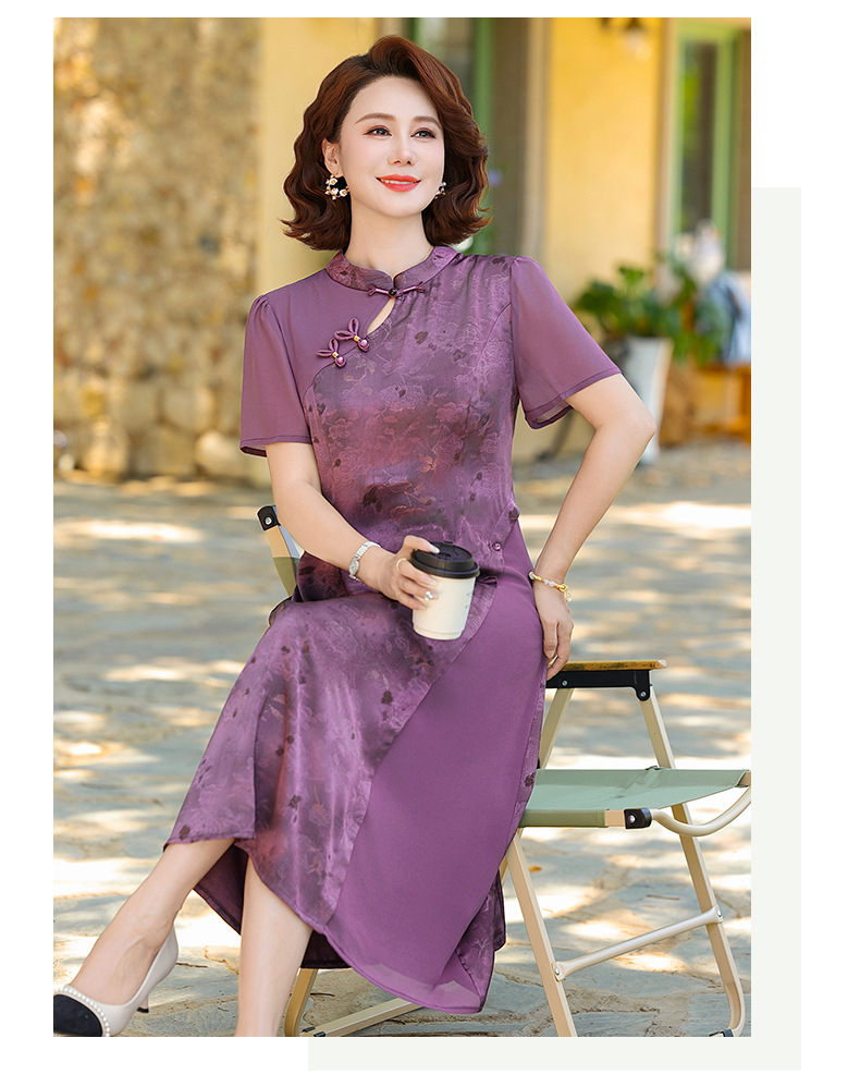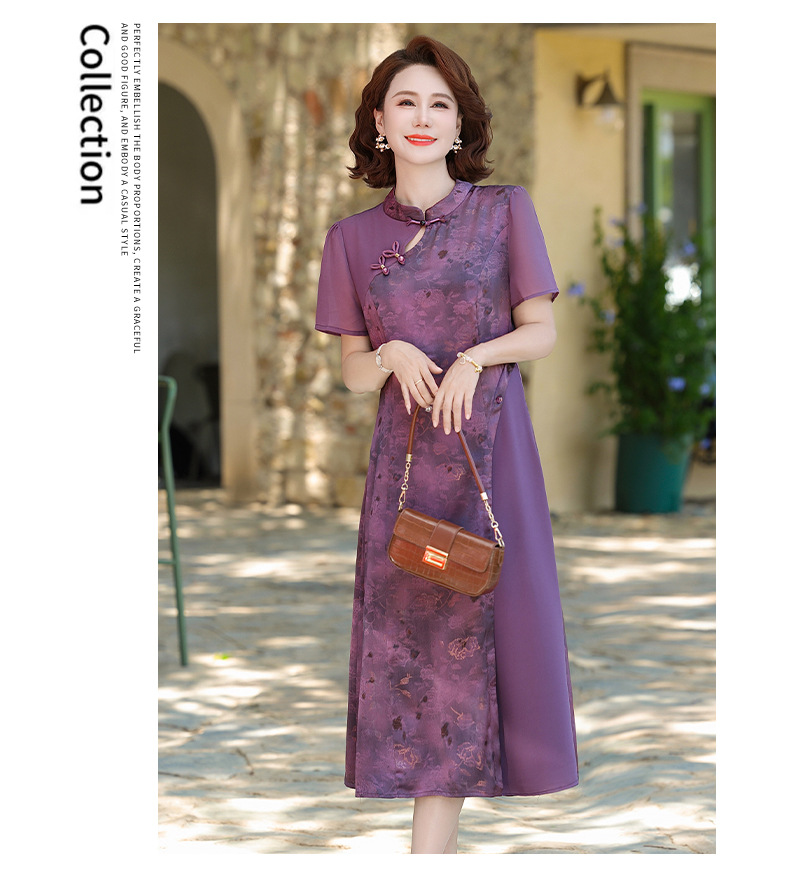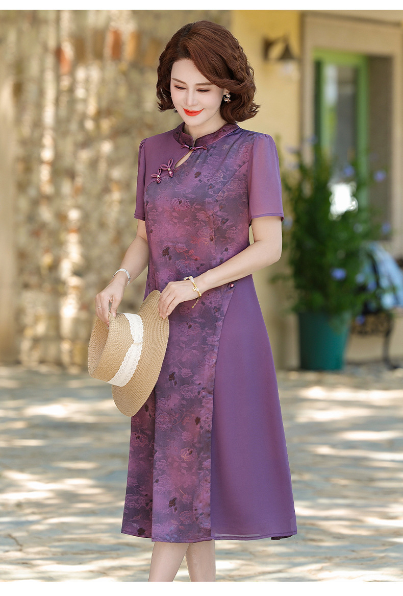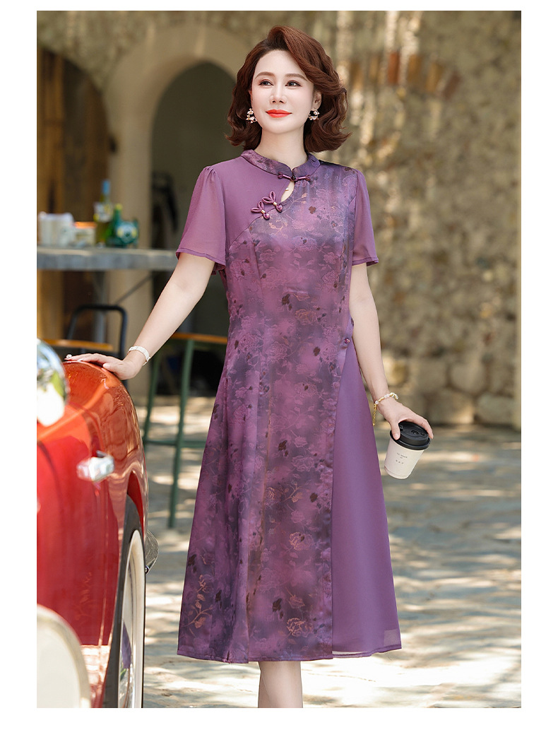 Летнее платье для мамы, модная новинка лета 2025 года, улучшенный чонсам, шифоновая юбка для женщин среднего и пожилого возраста