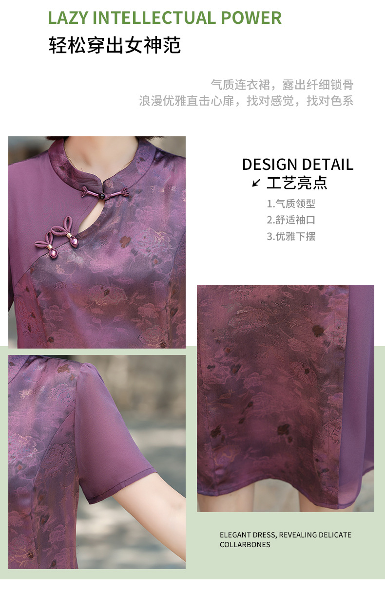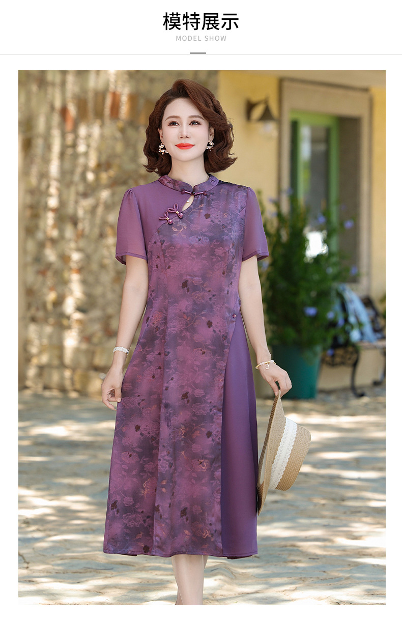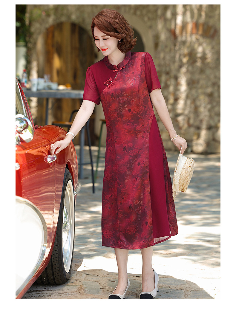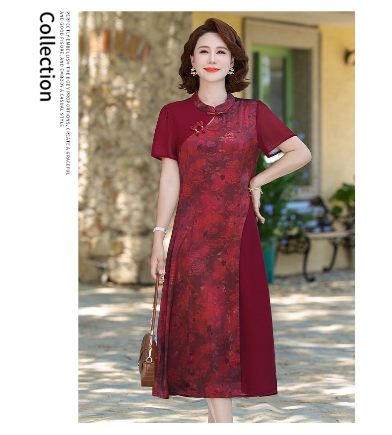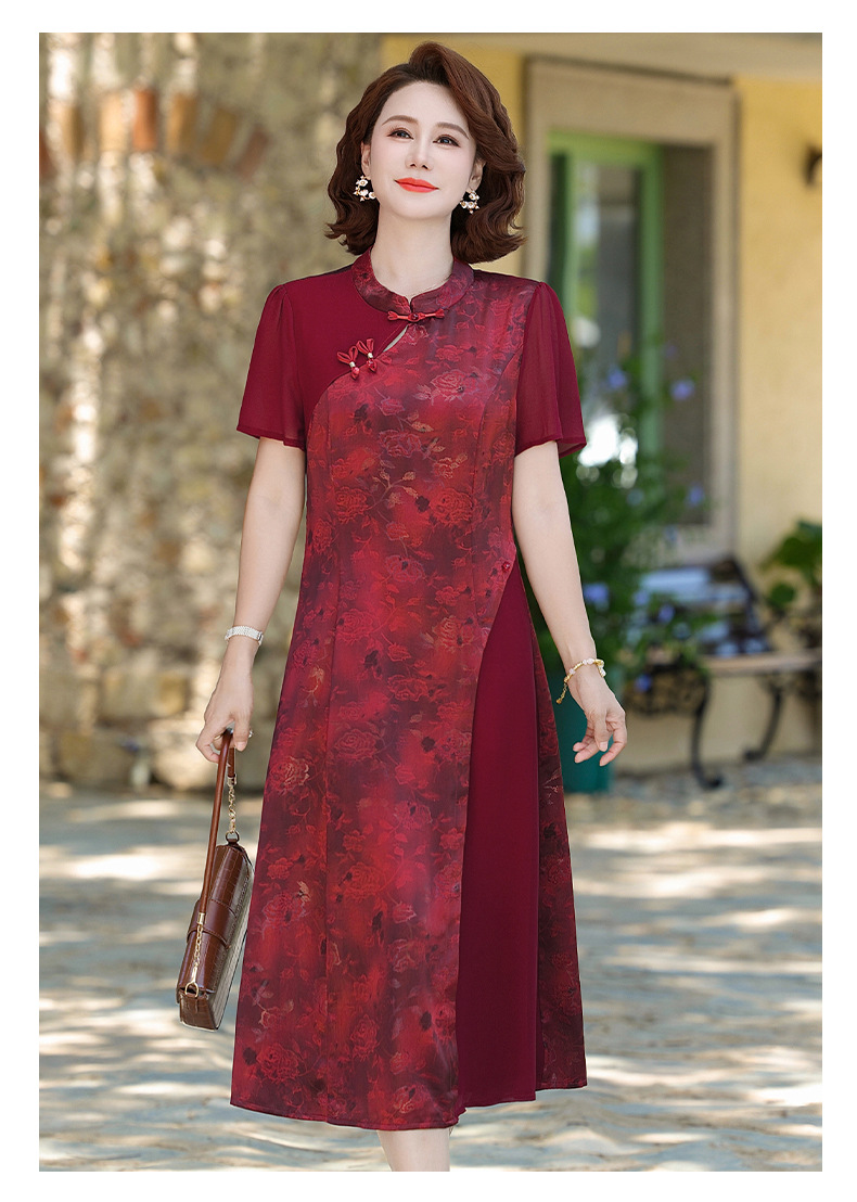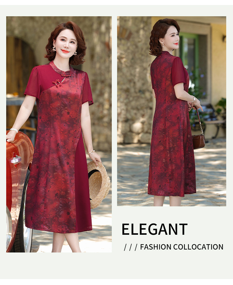 Летнее платье для мамы, модная новинка лета 2025 года, улучшенный чонсам, шифоновая юбка для женщин среднего и пожилого возраста