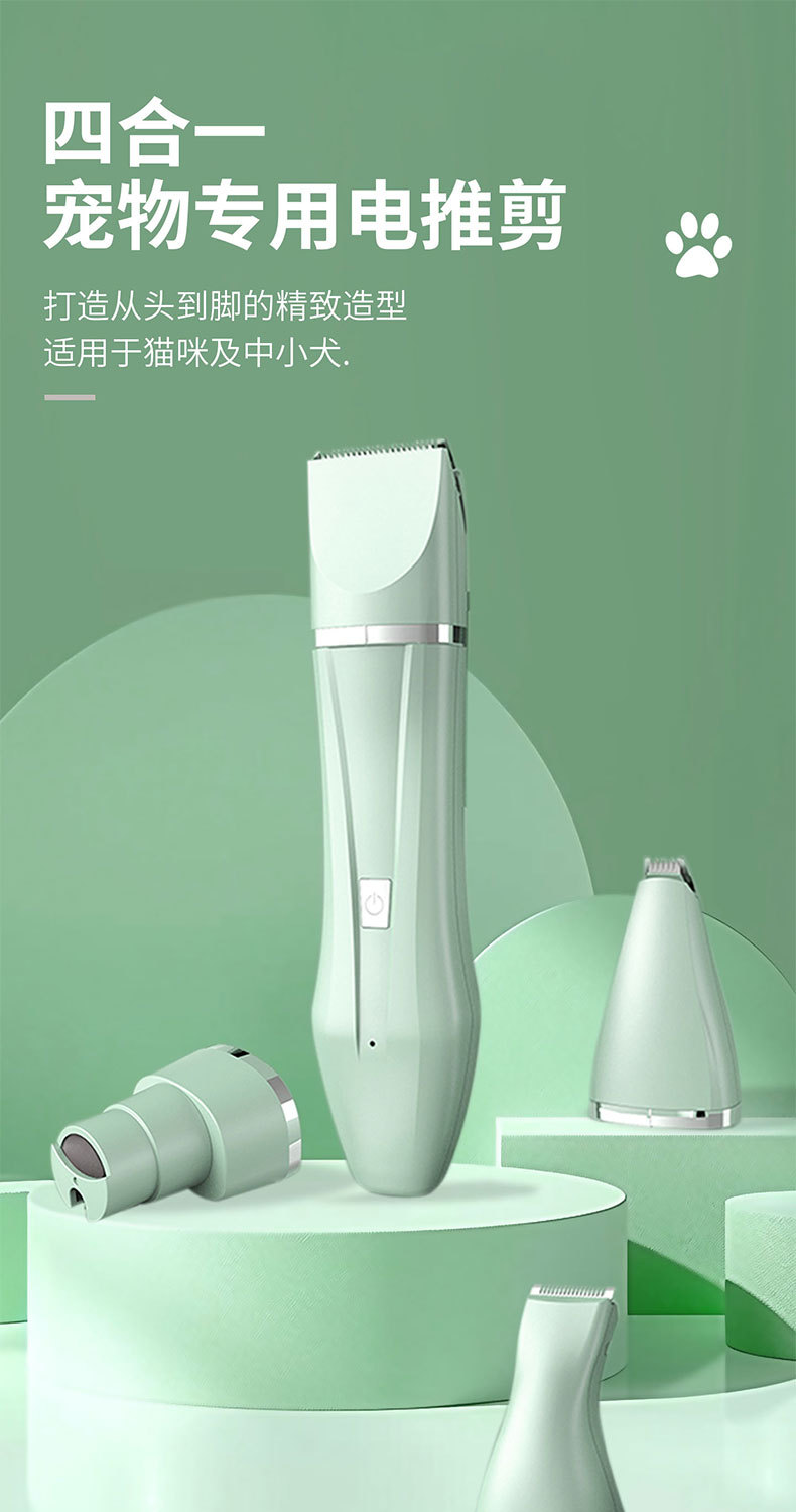 Электрическая машинка для стрижки животных 4-в-1, бесшумный триммер для шерсти кошек и собак, специальный инструмент для стрижки шерсти лап.
