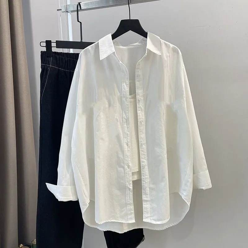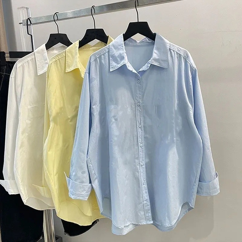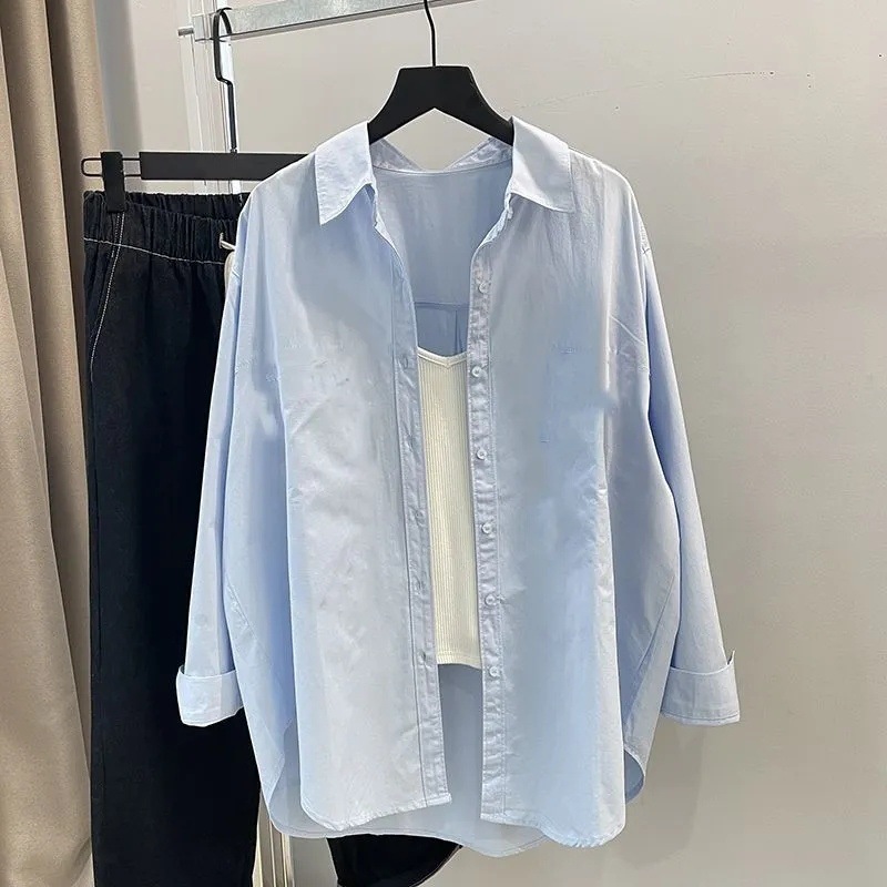 Женская рубашка-жакет в корейском стиле, свободного кроя, с длинными рукавами, укороченная спереди и удлиненная сзади, средней длины, модная новинка 2025 года.