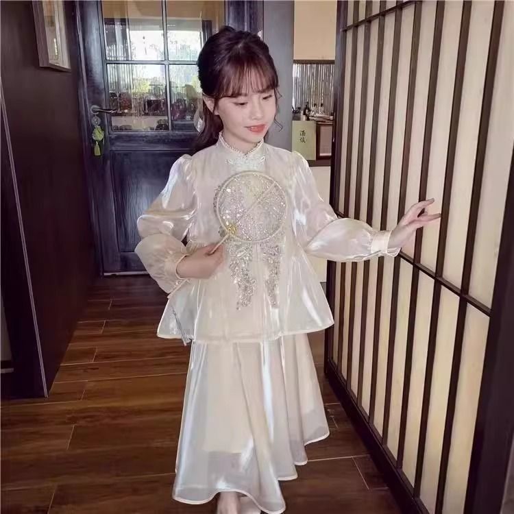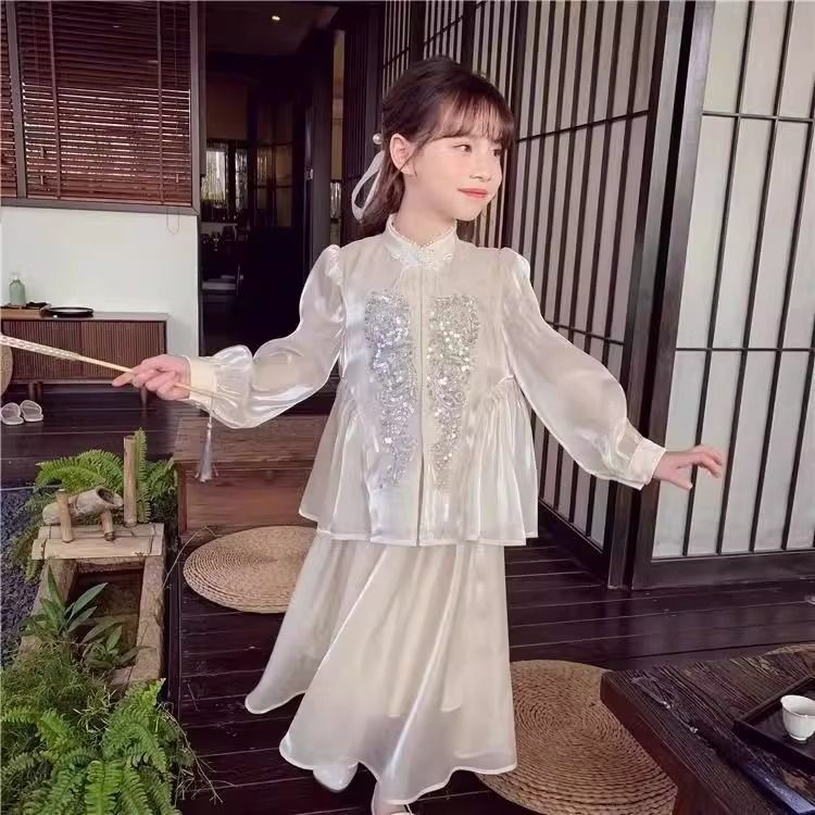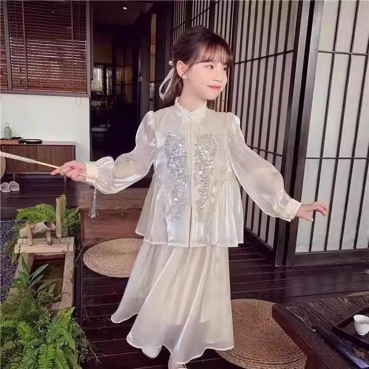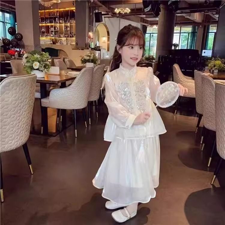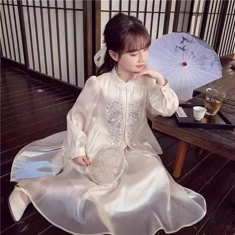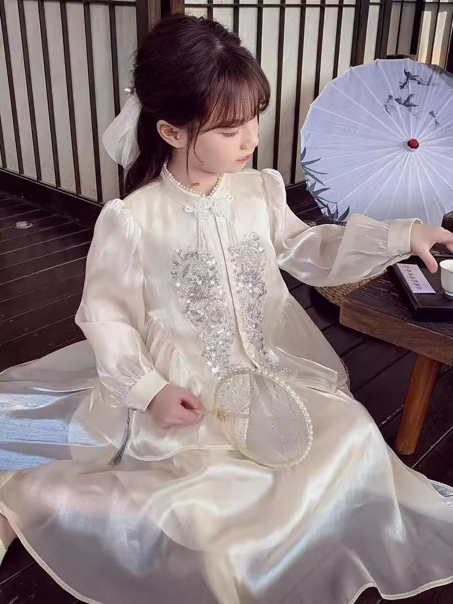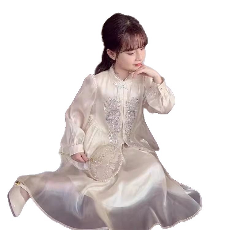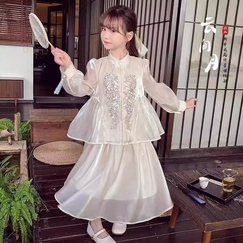 Детская весенняя одежда, новые платья для девочек в китайском стиле, весна-осень 2024, стильные новые юбки, китайский стиль для девочек Hanfu
