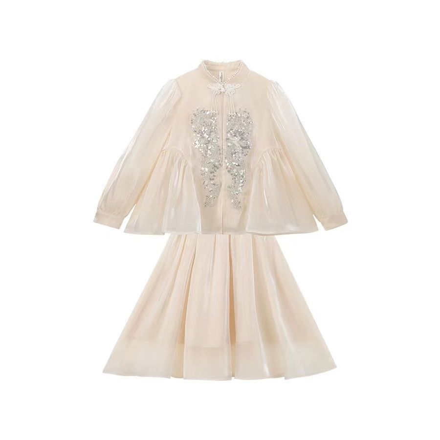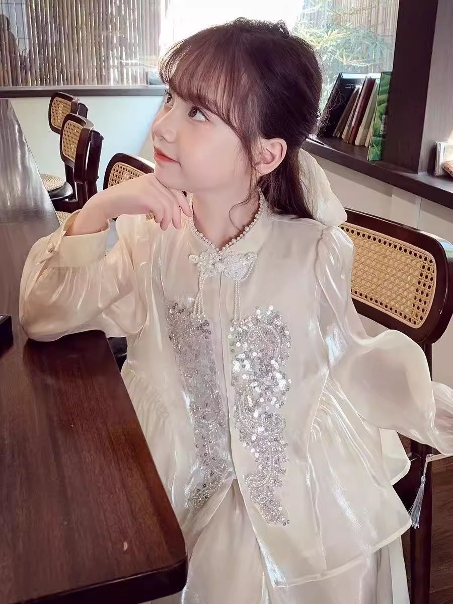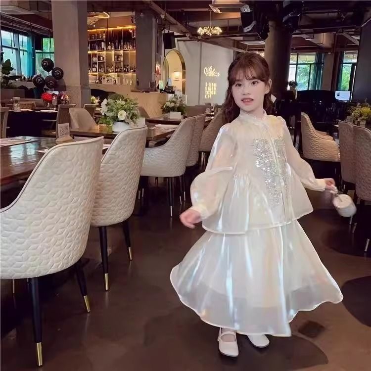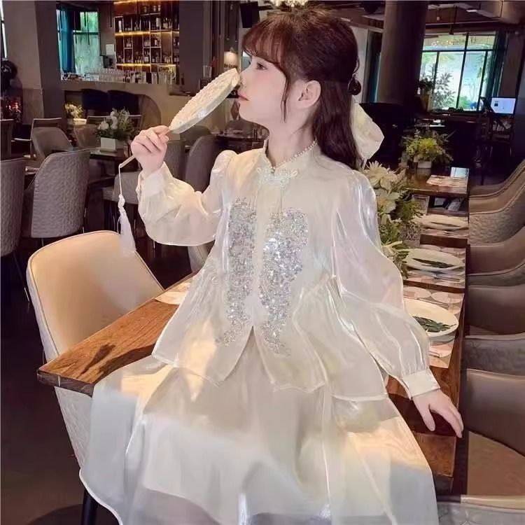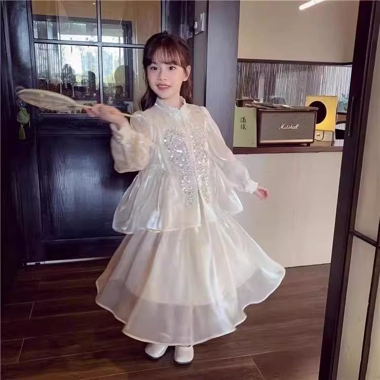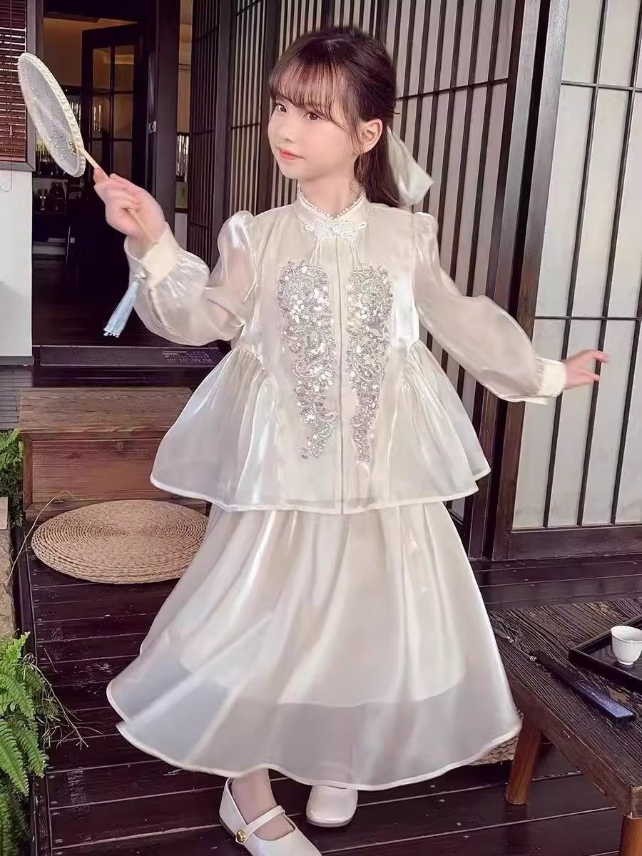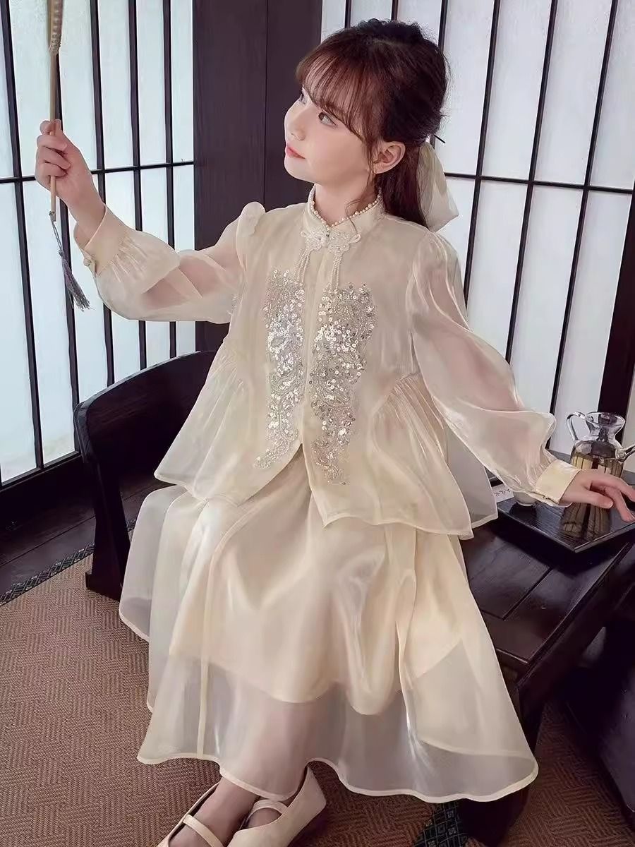 Детская весенняя одежда, новые платья для девочек в китайском стиле, весна-осень 2024, стильные новые юбки, китайский стиль для девочек Hanfu