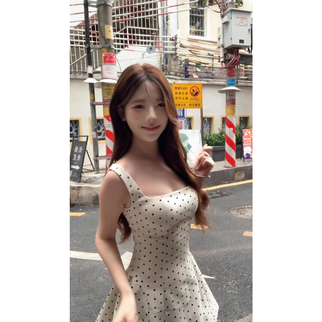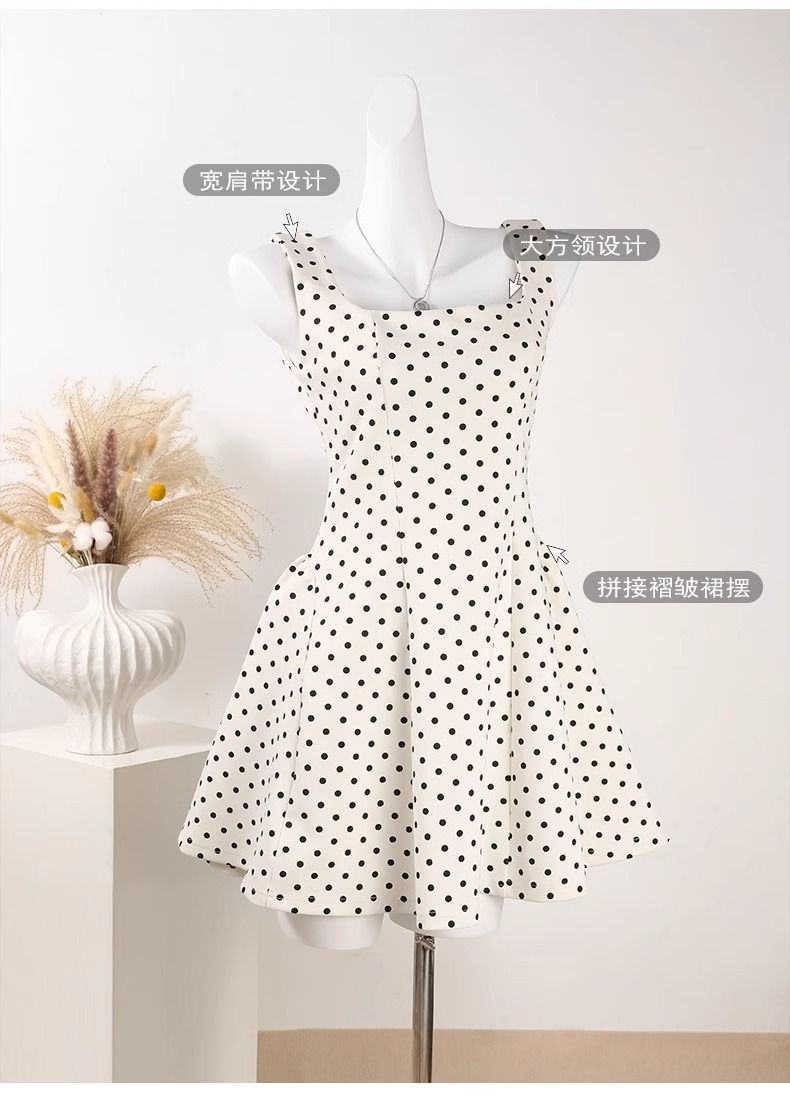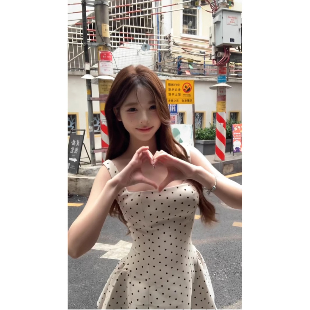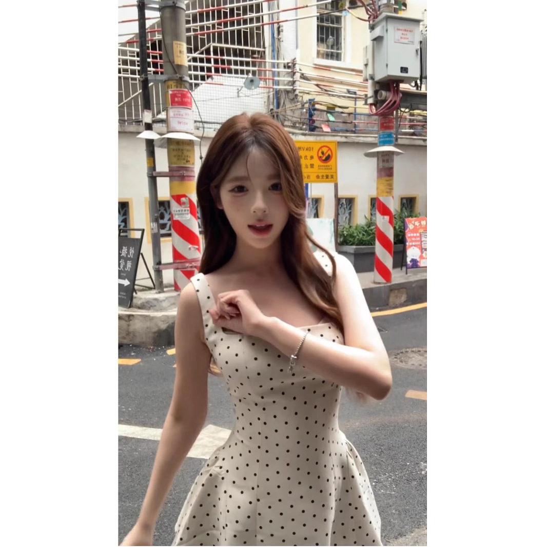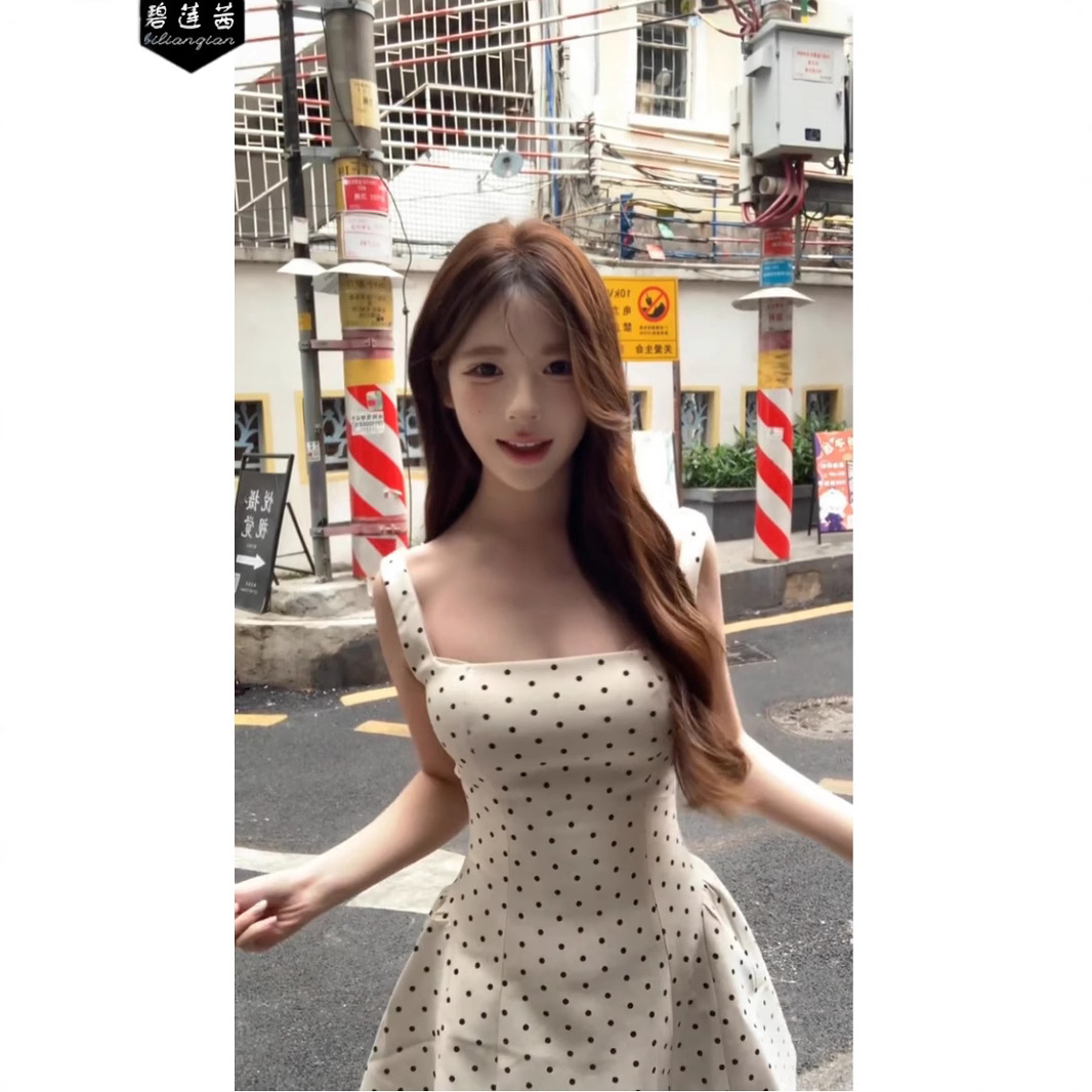 Белое платье в горошек в том же стиле Bilian Qianyu Shuxin, трапециевидное платье на подтяжках в стиле Miu, весенний наряд для девочек